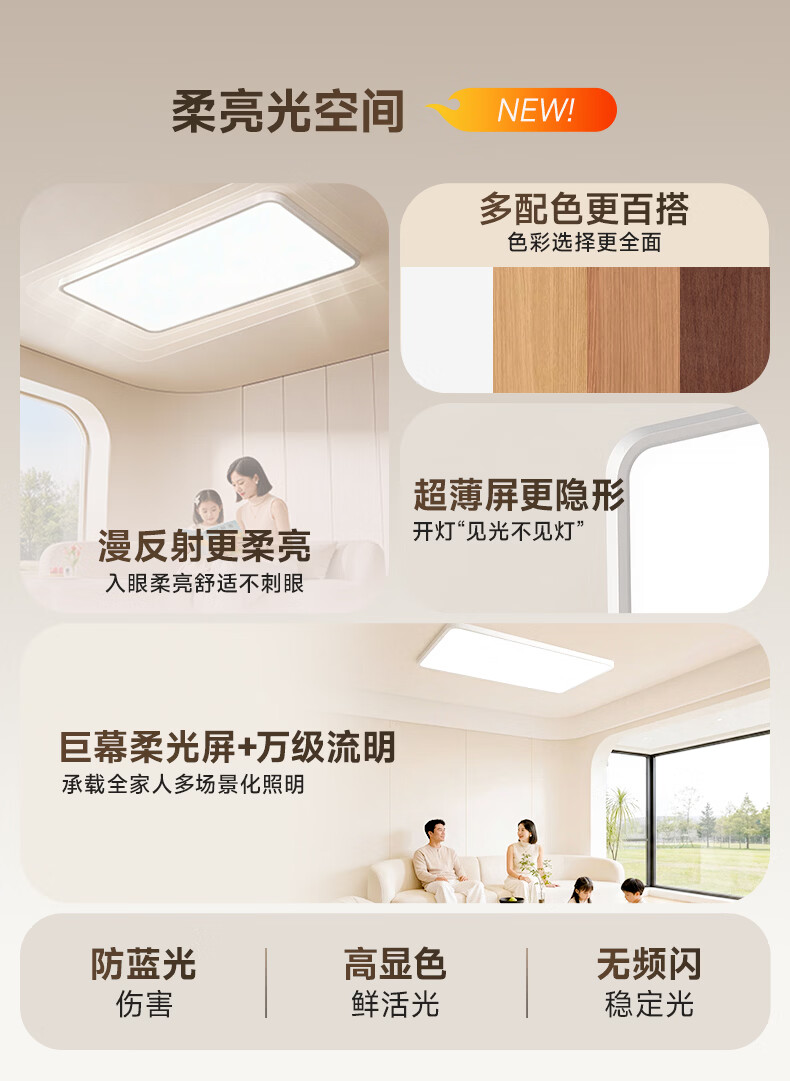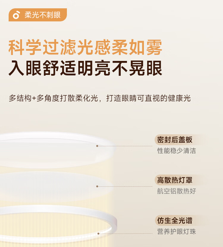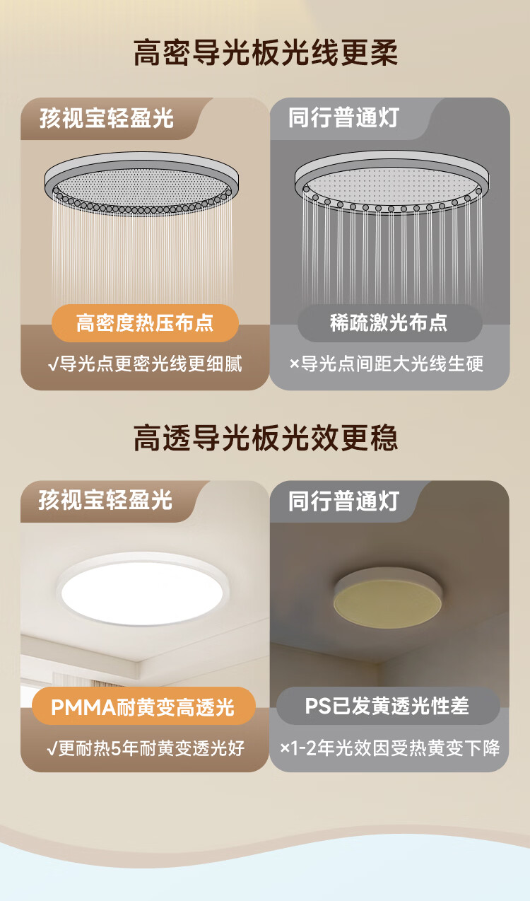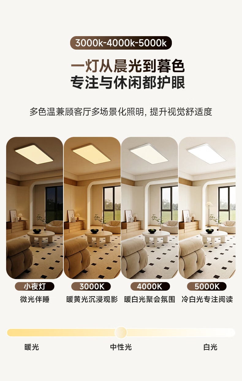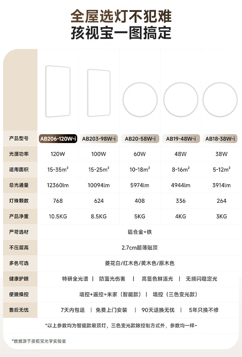 孩视宝轻盈光·全光谱护眼吸顶灯智能2.7cm超薄无缝客厅卧室书房led灯具 120W 35㎡内适用 12360lm 【轻盈光客厅】暖白-三色温款