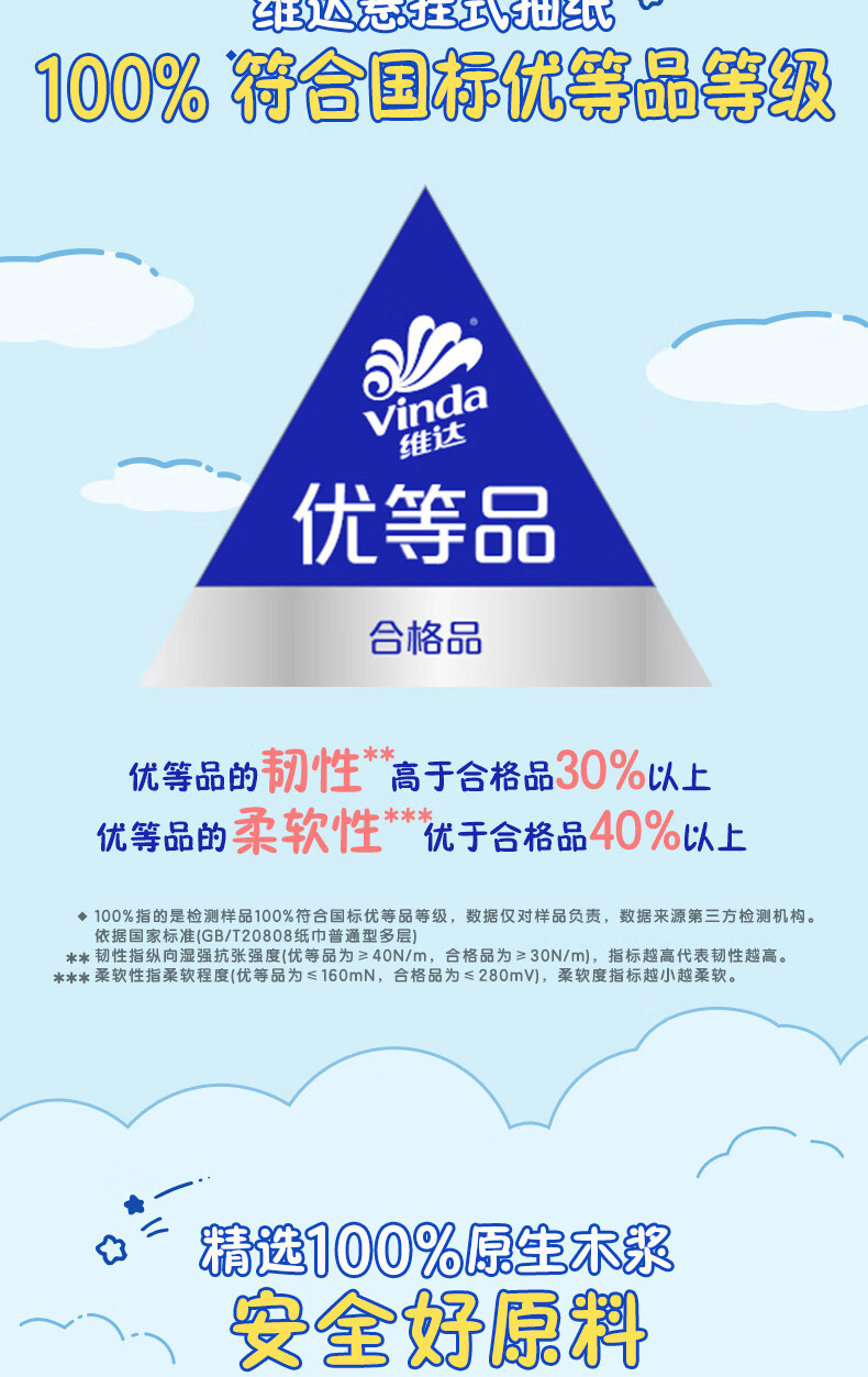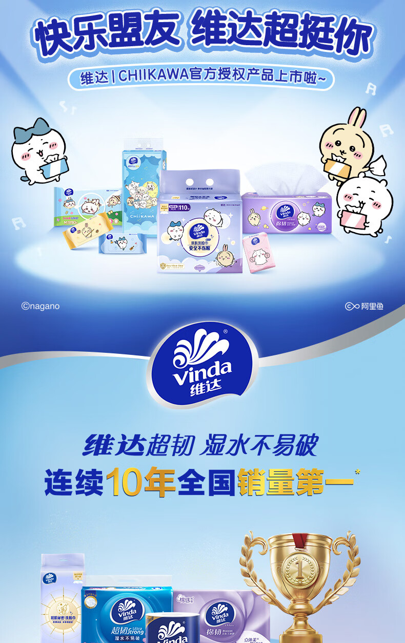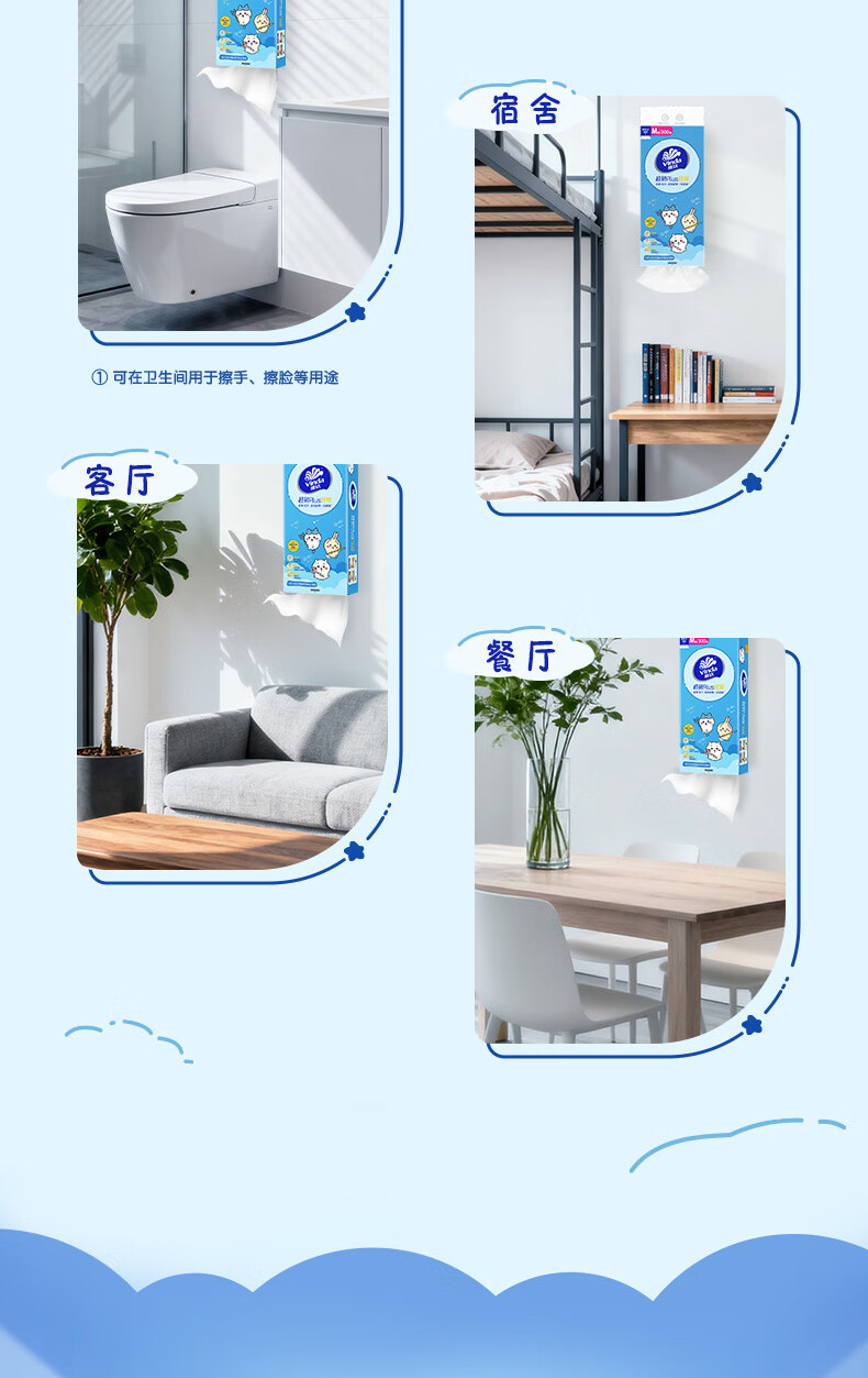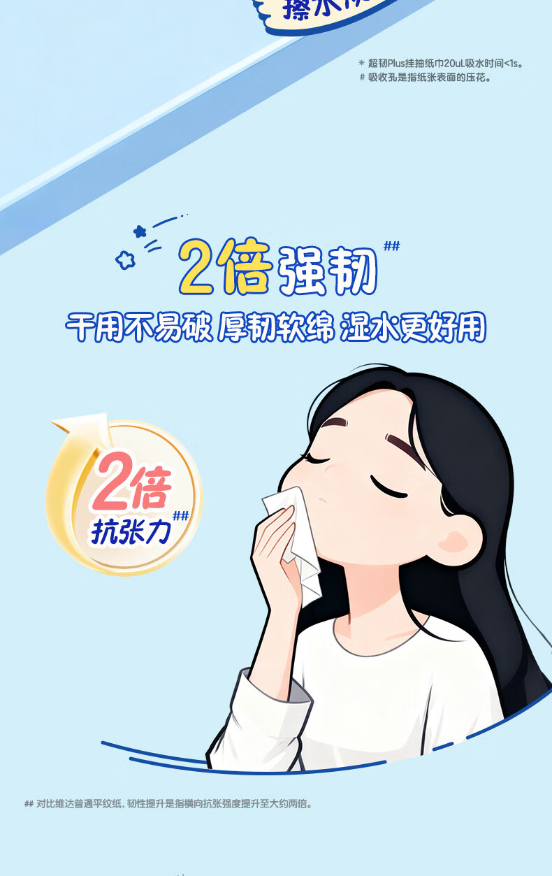 维达(Vinda)|CHIIKAWA 抽纸 超韧Plus挂抽3层300抽*4提M码 悬挂式纸巾 整箱