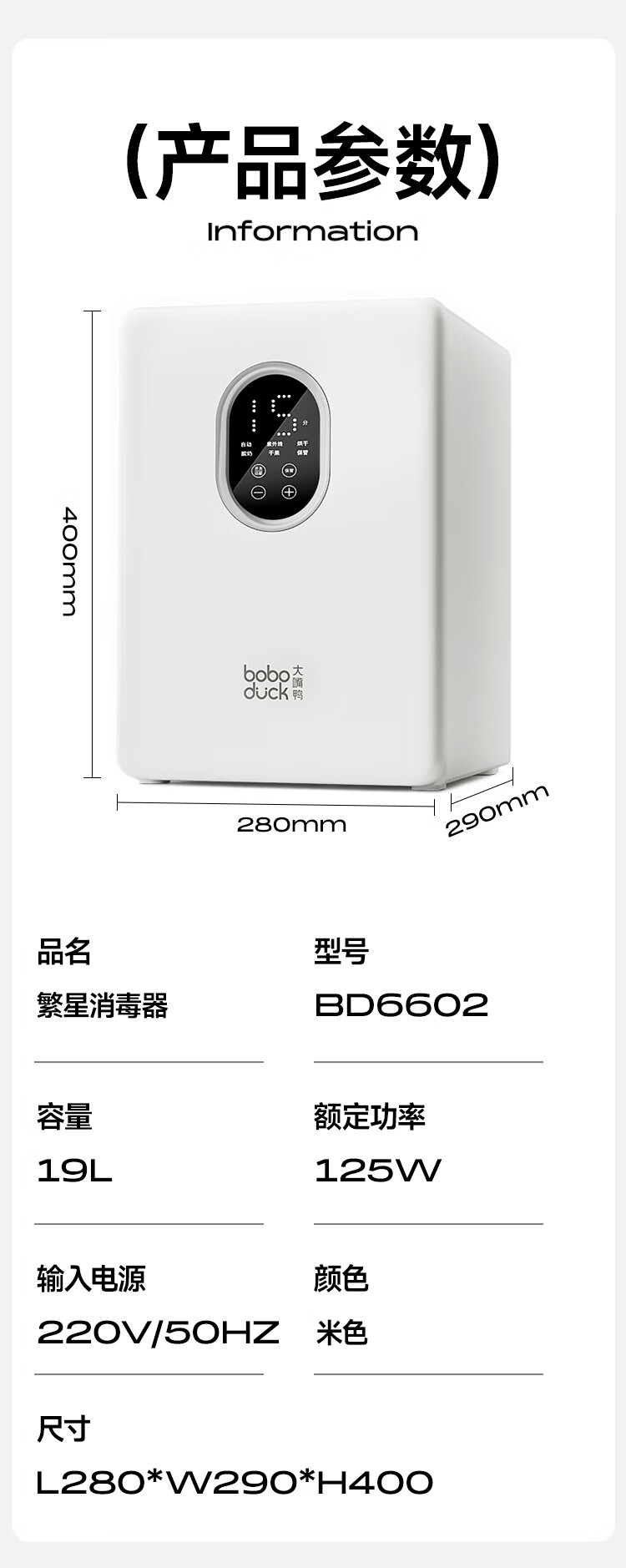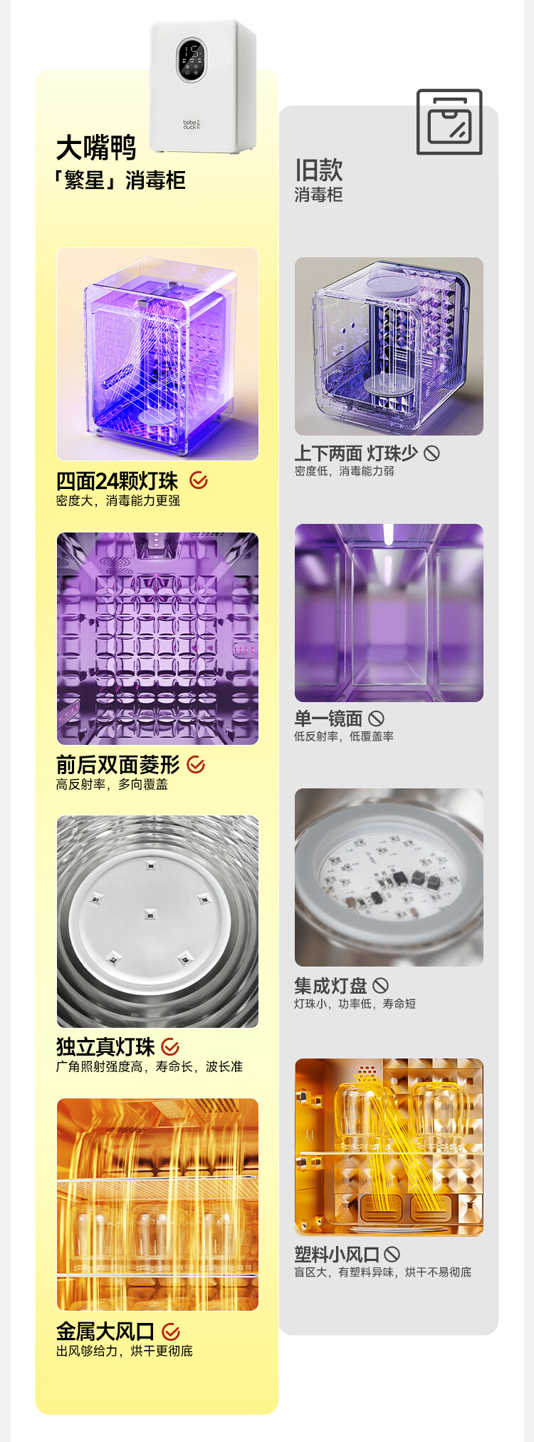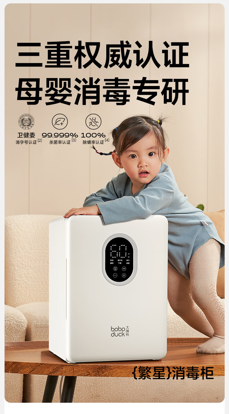 boboduck大嘴鸭消毒柜婴儿 奶瓶消毒器带烘干一体机紫外线消毒柜 24灯珠 6602