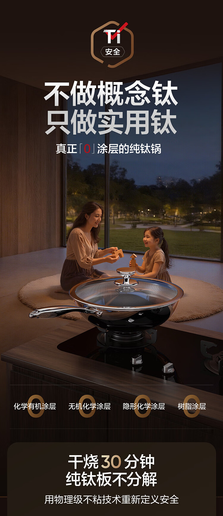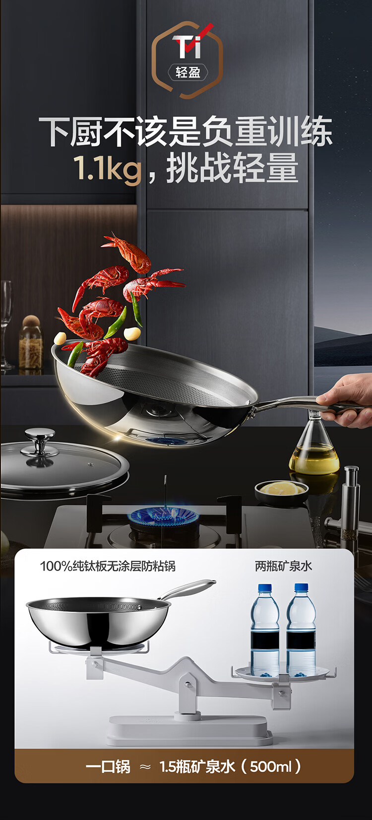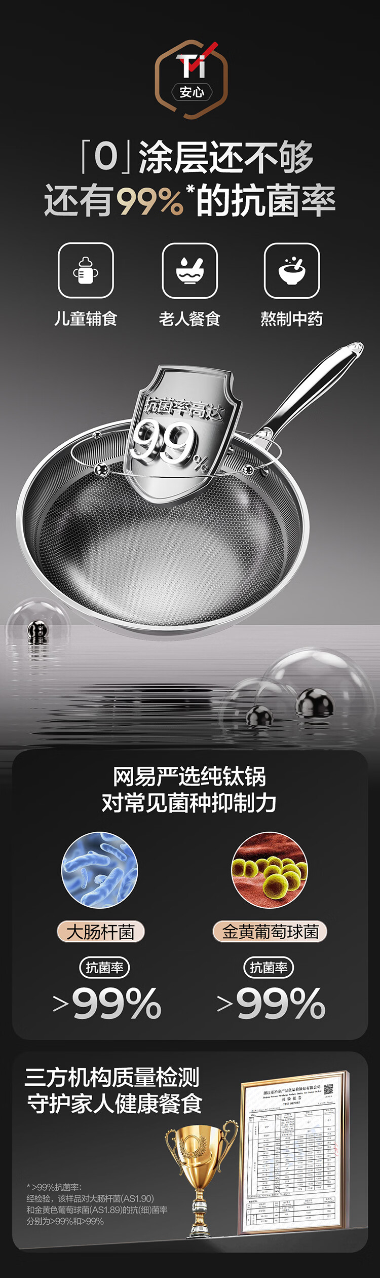 网易严选炒锅纯钛锅不粘锅炒菜锅0涂层炒锅无涂层不粘锅电磁炉燃气灶32cm 【100%纯钛丨0涂层】30cm 带盖 30cm