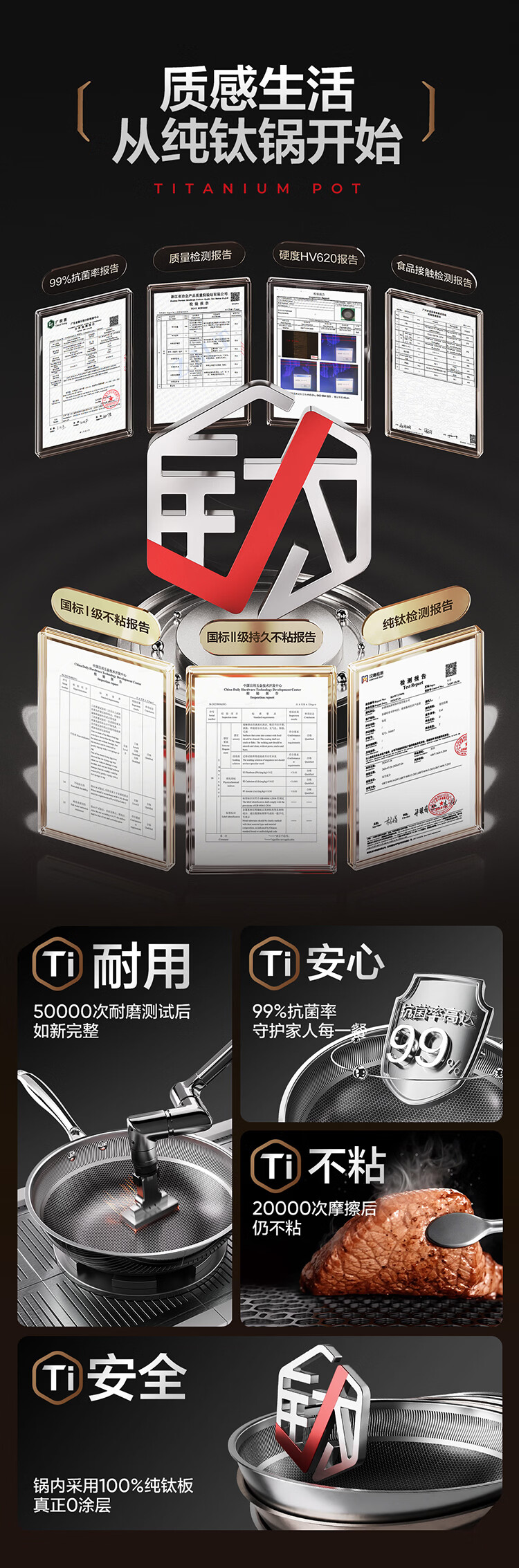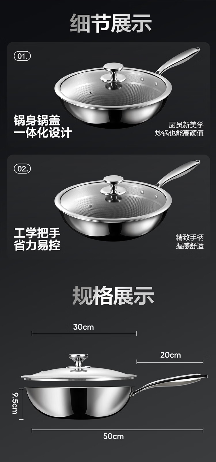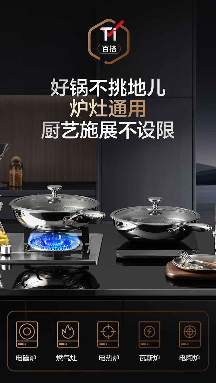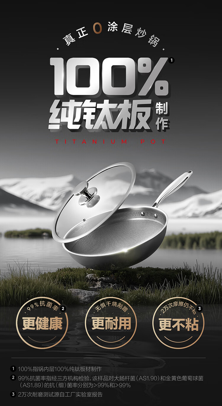 网易严选炒锅纯钛锅不粘锅炒菜锅0涂层炒锅无涂层不粘锅电磁炉燃气灶32cm 【100%纯钛丨0涂层】30cm 带盖 30cm