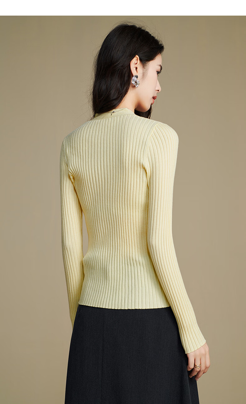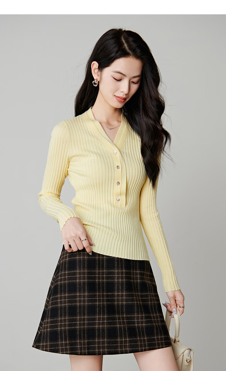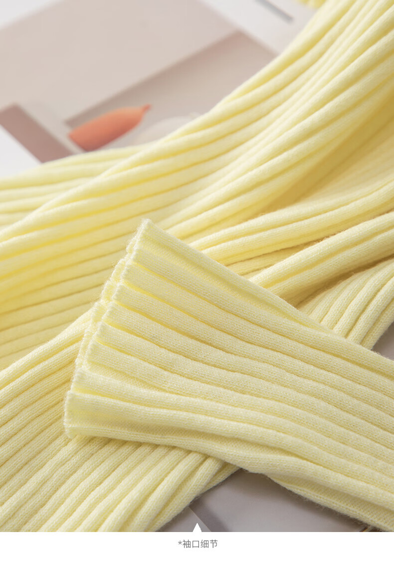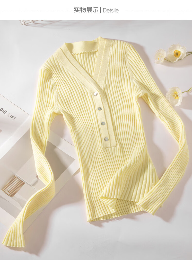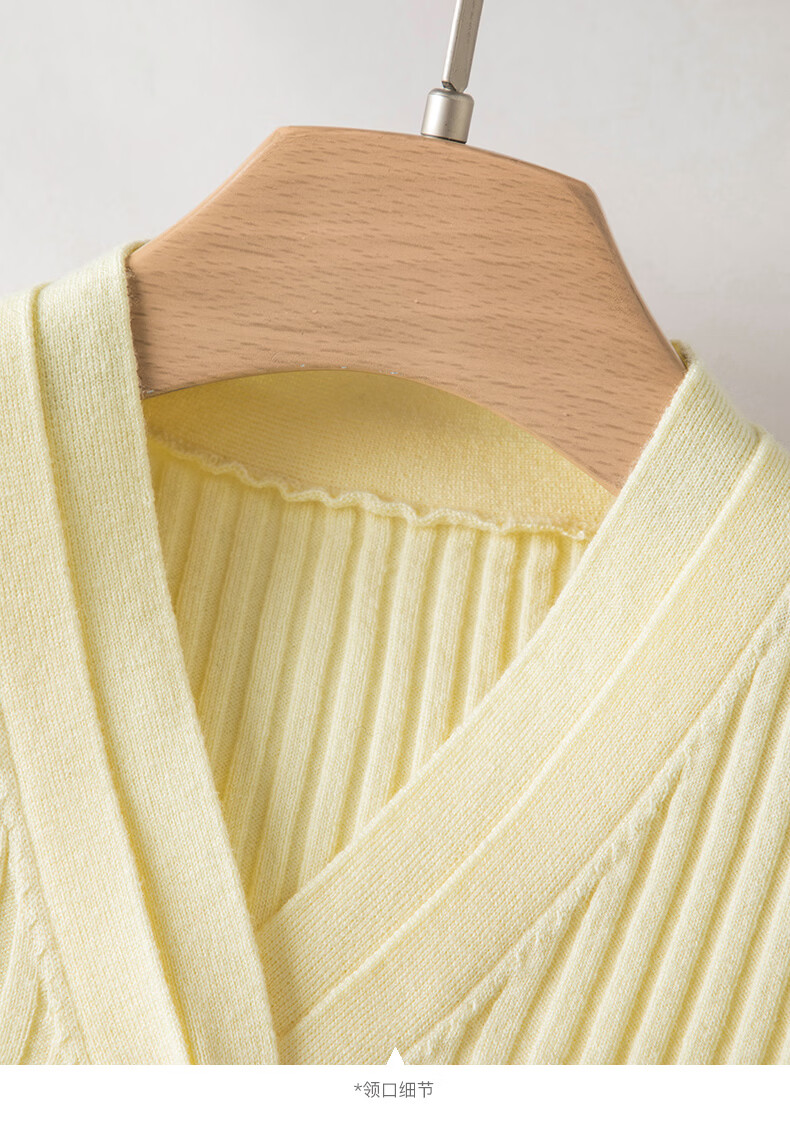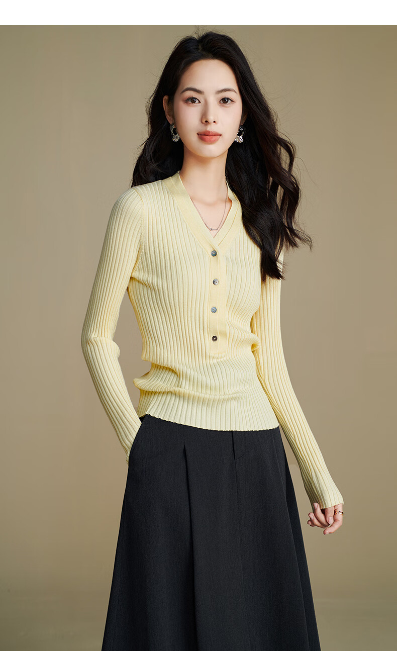 晚白【新品】2026年春款时尚V领毛衣含羊毛高弹修身亲肤百搭针织衫女 黄色 M