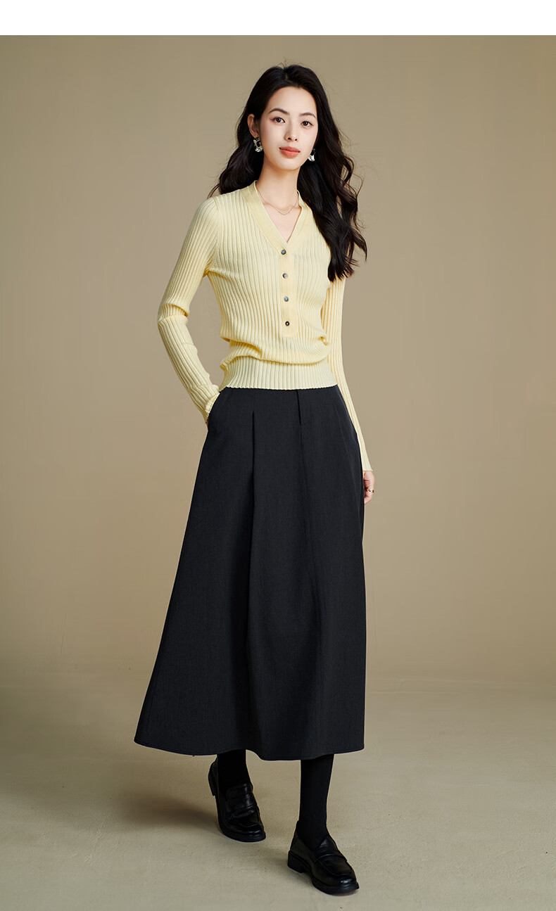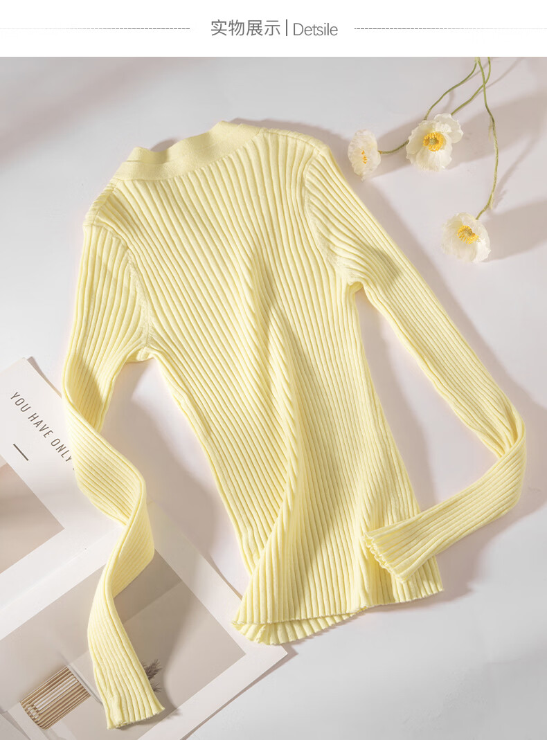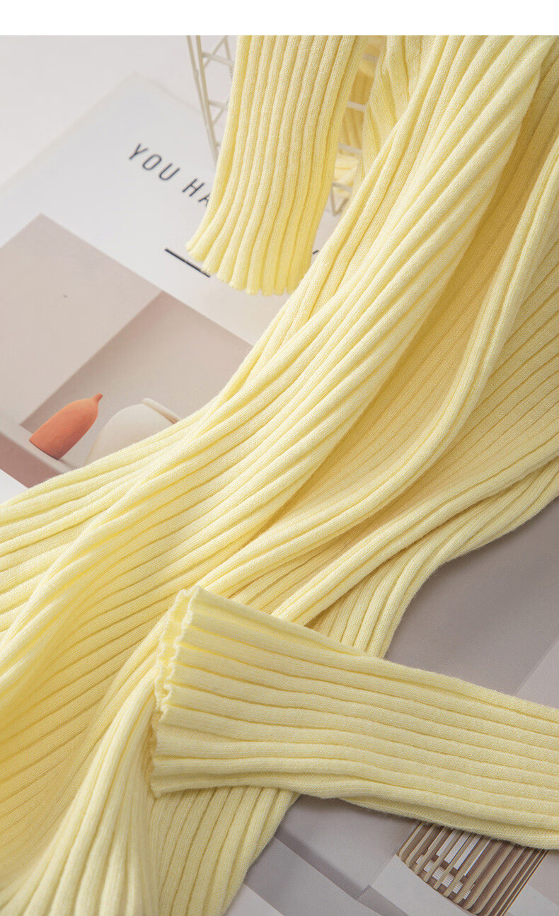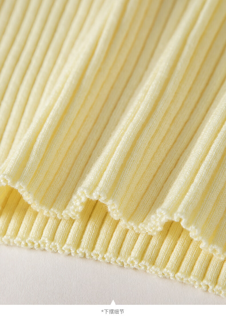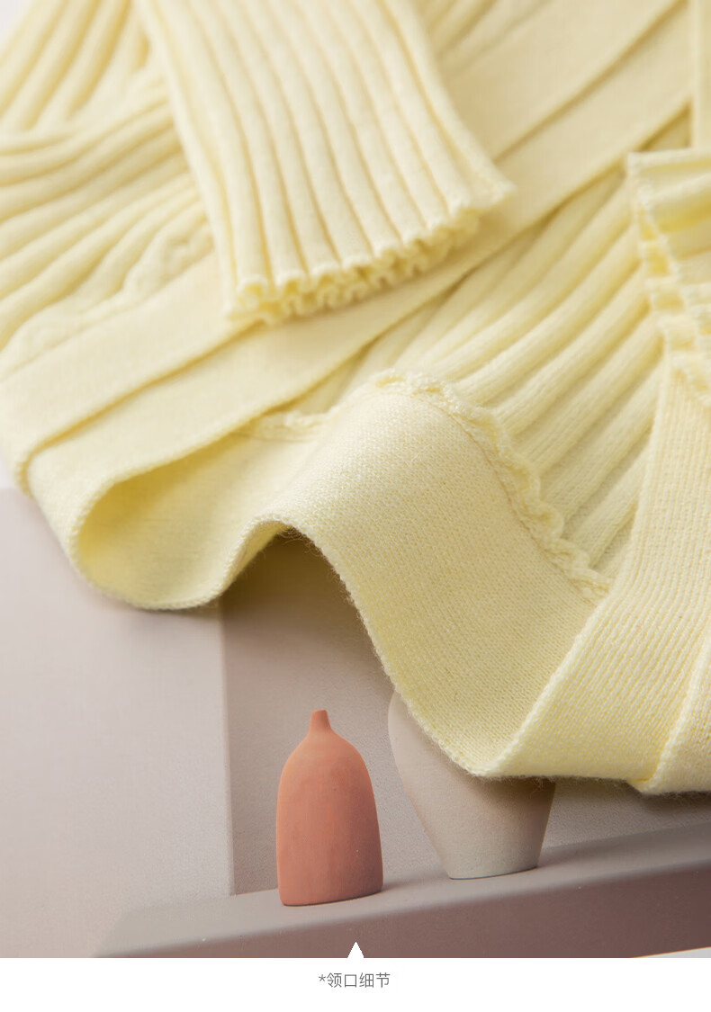 晚白【新品】2026年春款时尚V领毛衣含羊毛高弹修身亲肤百搭针织衫女 黄色 M