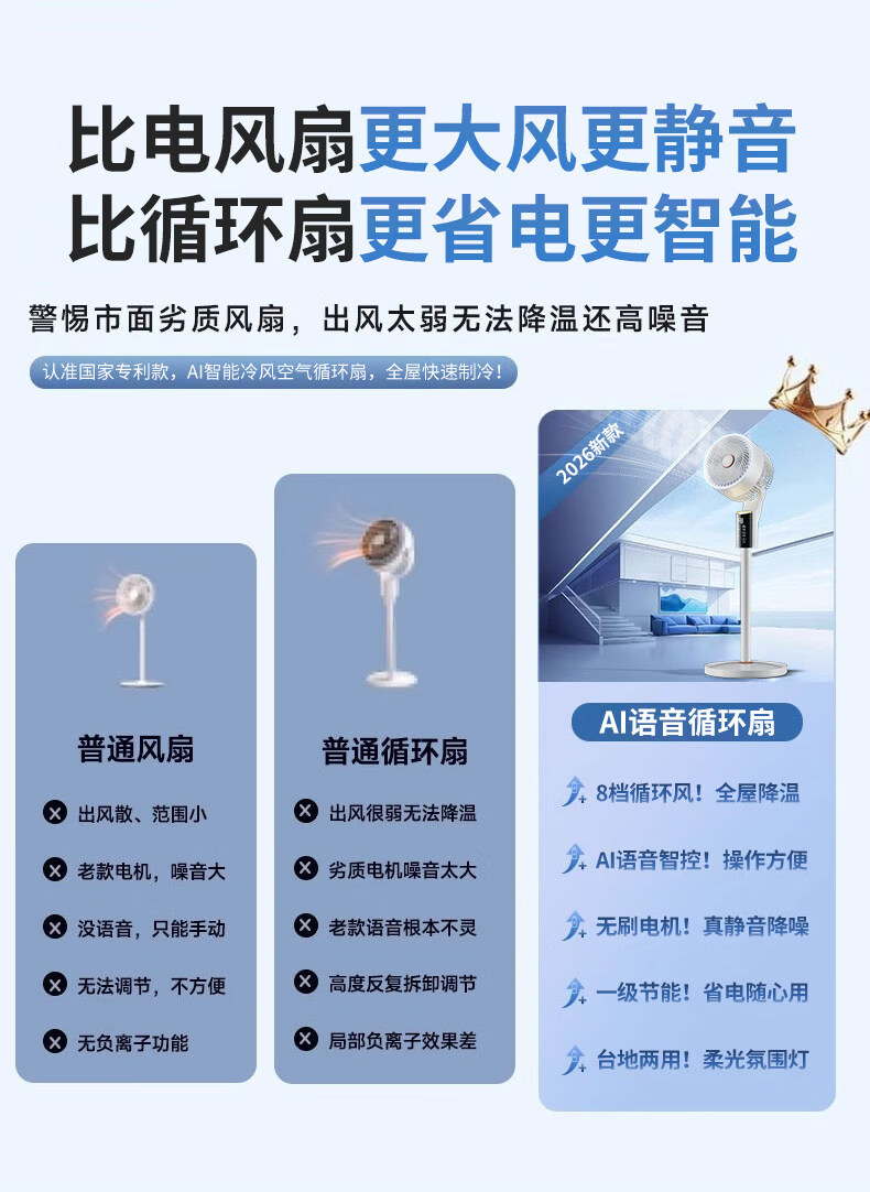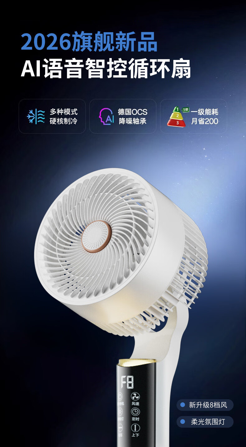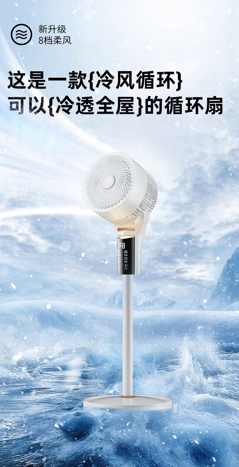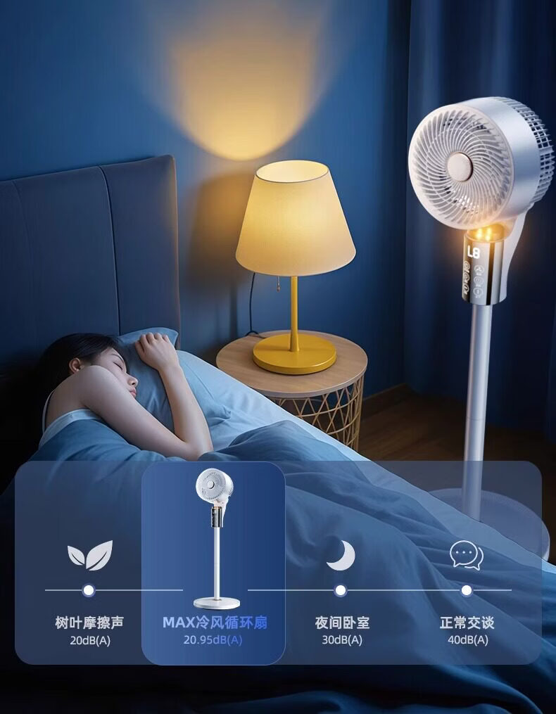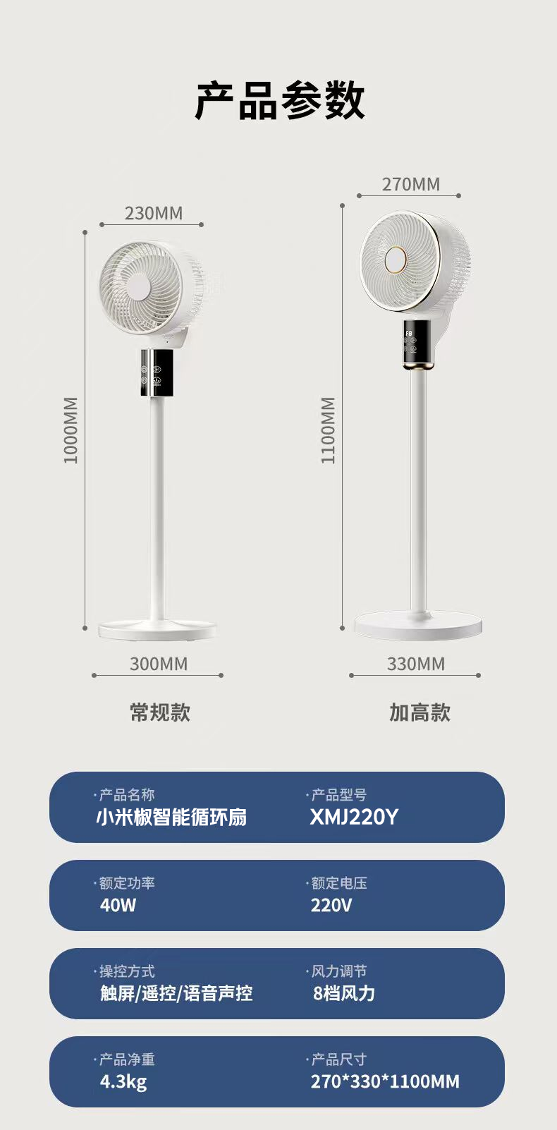 小米椒智能语音空气循环扇家用落地式轻音节能电风扇台式桌面小风扇节能省电扇两用大风量风扇空调扇 【加高机械款】|3档调节|左右摇头