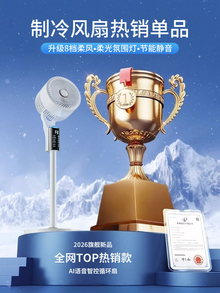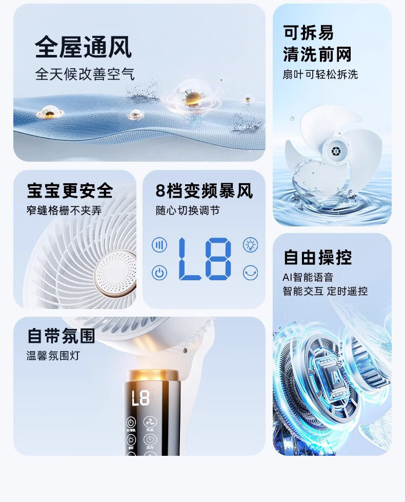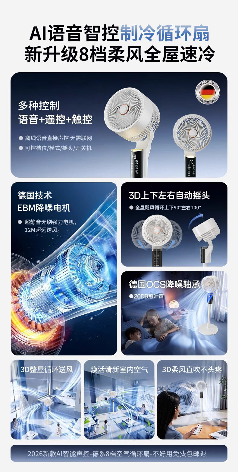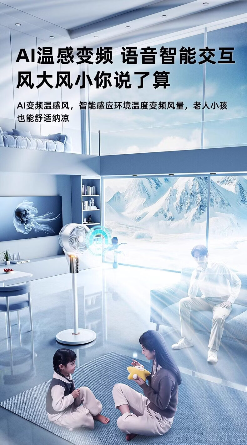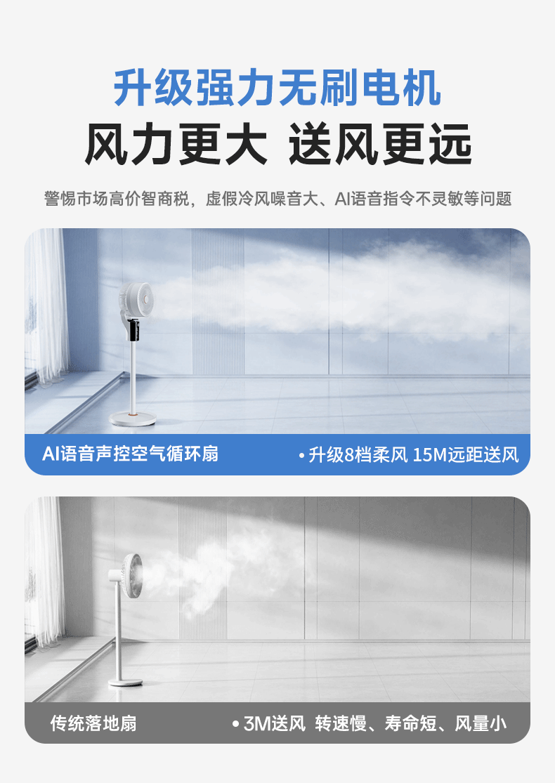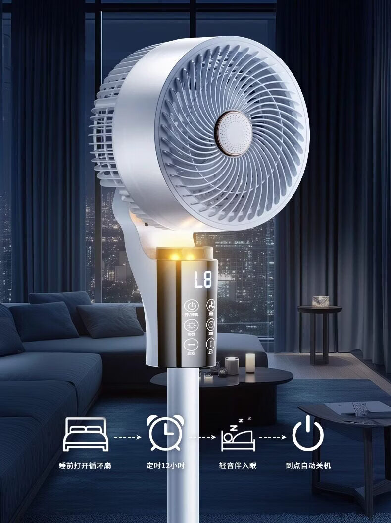 小米椒智能语音空气循环扇家用落地式轻音节能电风扇台式桌面小风扇节能省电扇两用大风量风扇空调扇 【加高机械款】|3档调节|左右摇头