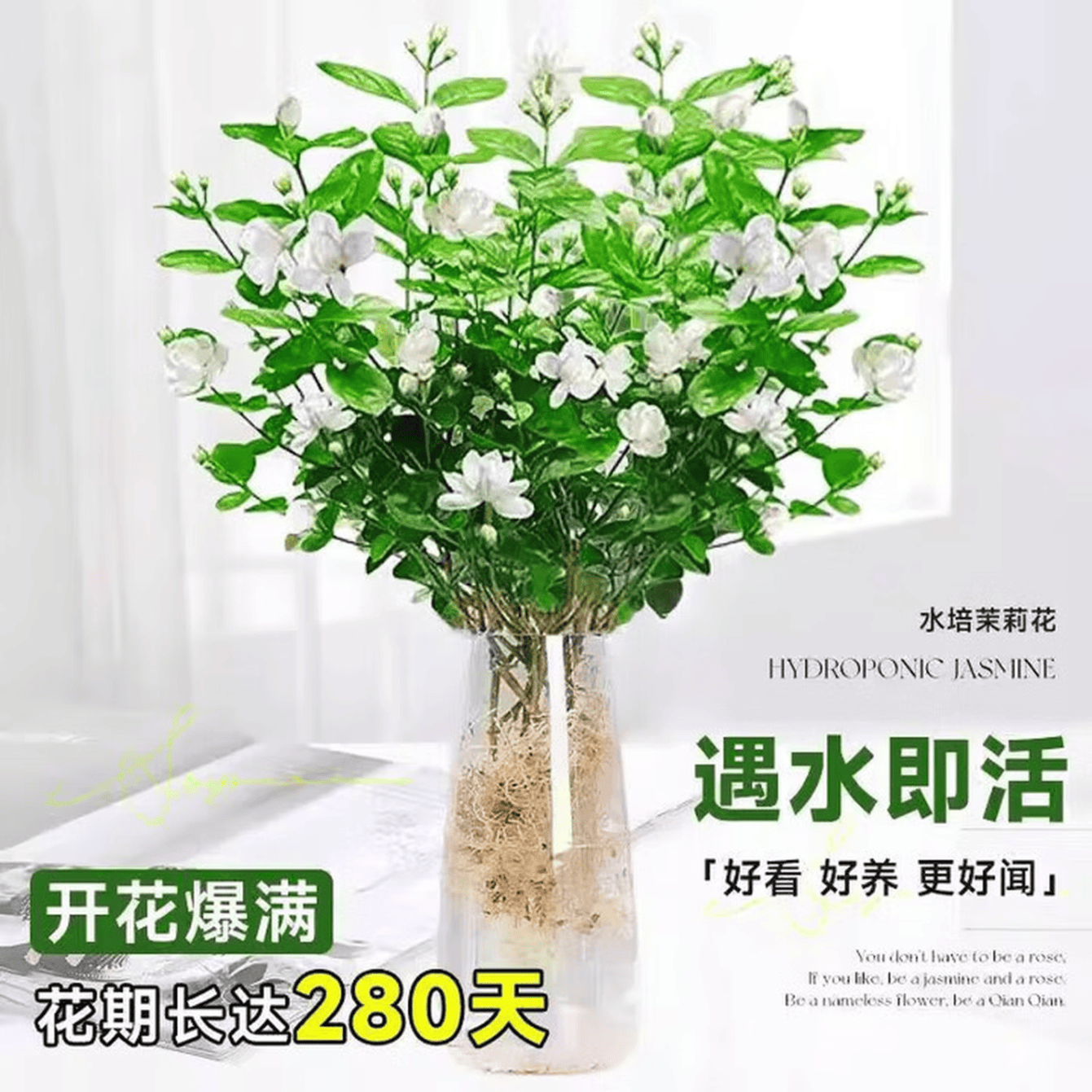 水培茉莉花盆栽好养驱蚊绿植浓香室内水培驱蚊四季植物水培茉莉 三颗