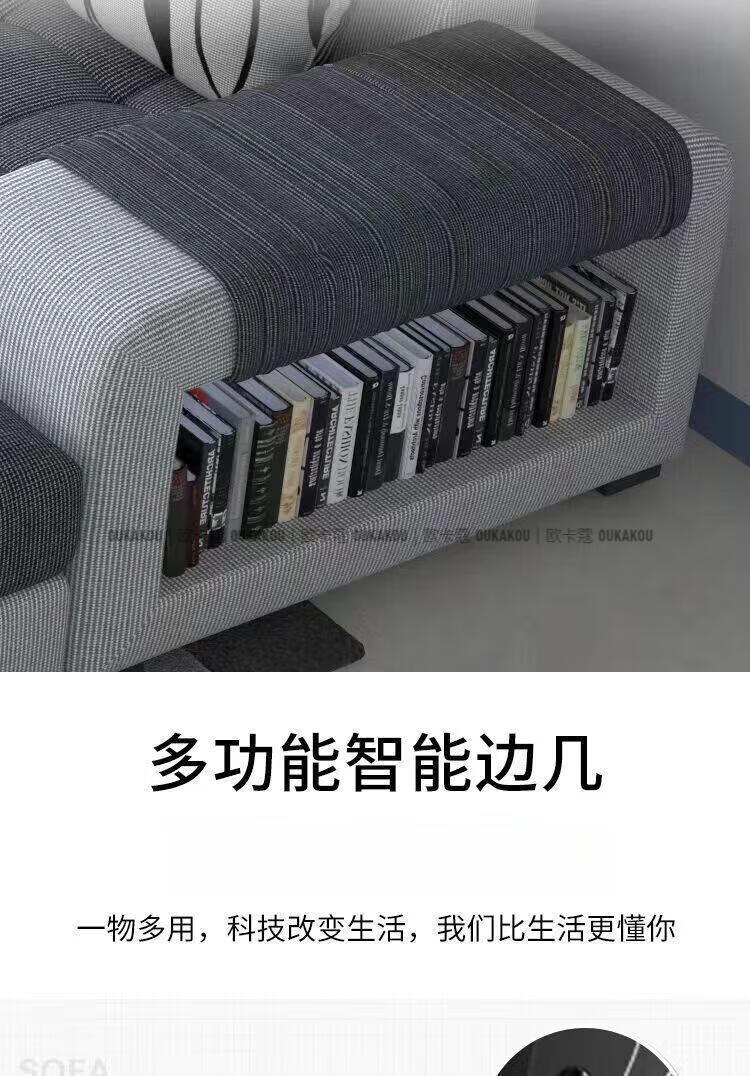 欧卡蔻2026新款沙发客厅整装大小户型简约现代轻奢科技布布艺沙发组合 浅蓝色-拆洗麻布 海绵版四位+踏+茶几+电柜