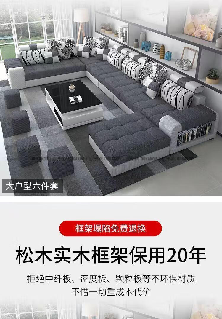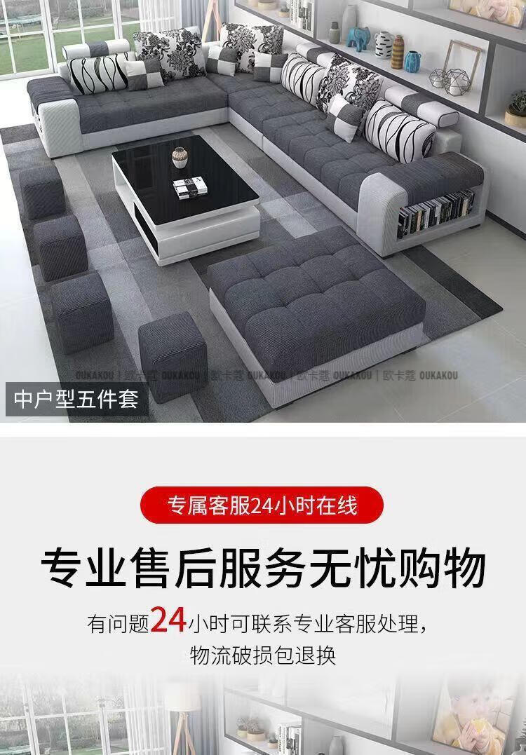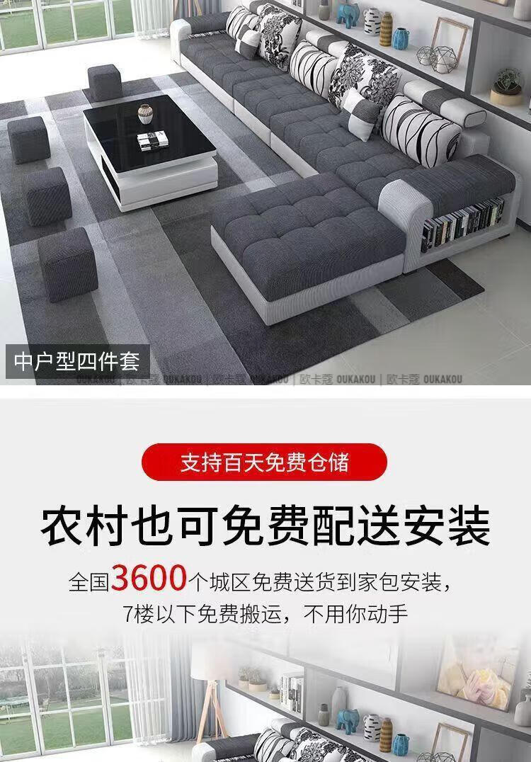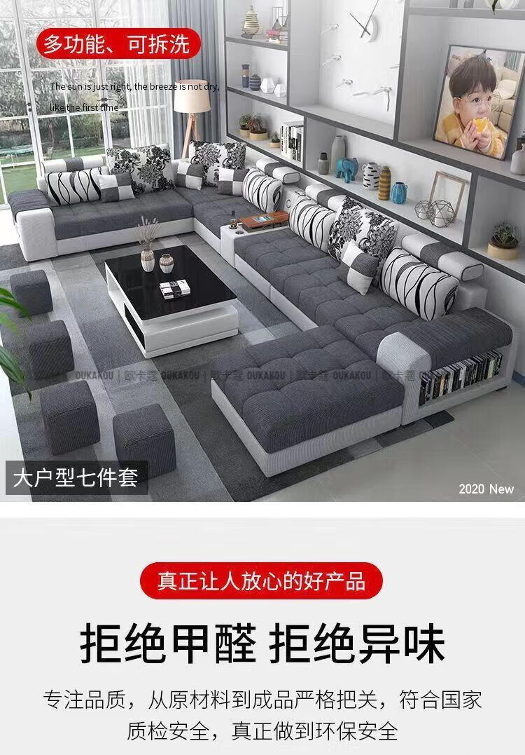 欧卡蔻2026新款沙发客厅简约现代大小户型乳胶整装布艺科技布沙发组合 七件套 棉麻布/海绵版(5年)