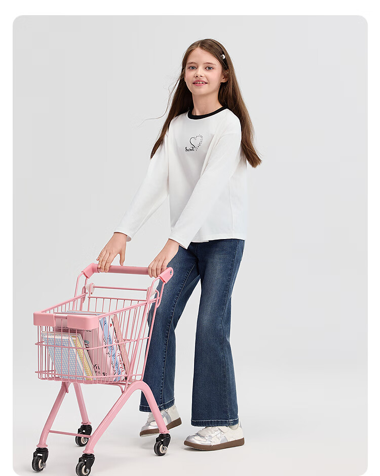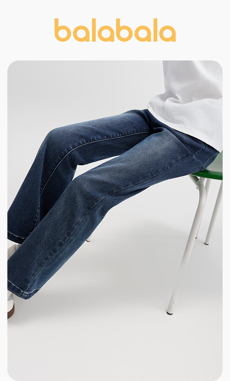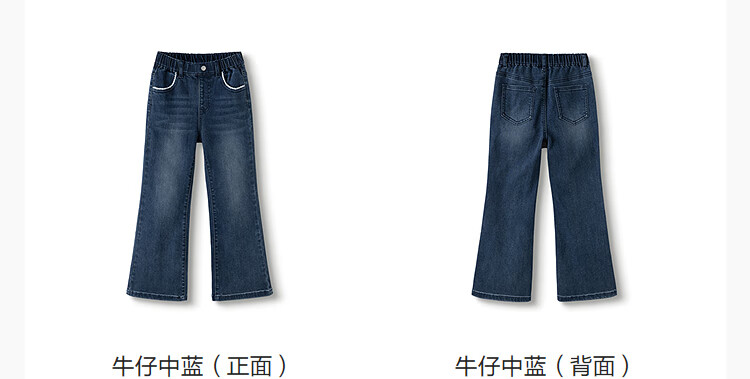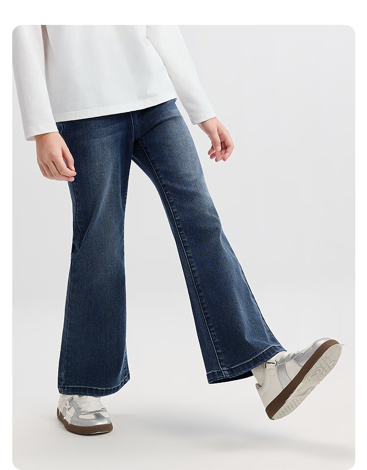 巴拉巴拉balaone儿童牛仔裤女童喇叭裤2025秋新款大童甜美长裤子 牛仔浅蓝88101 165