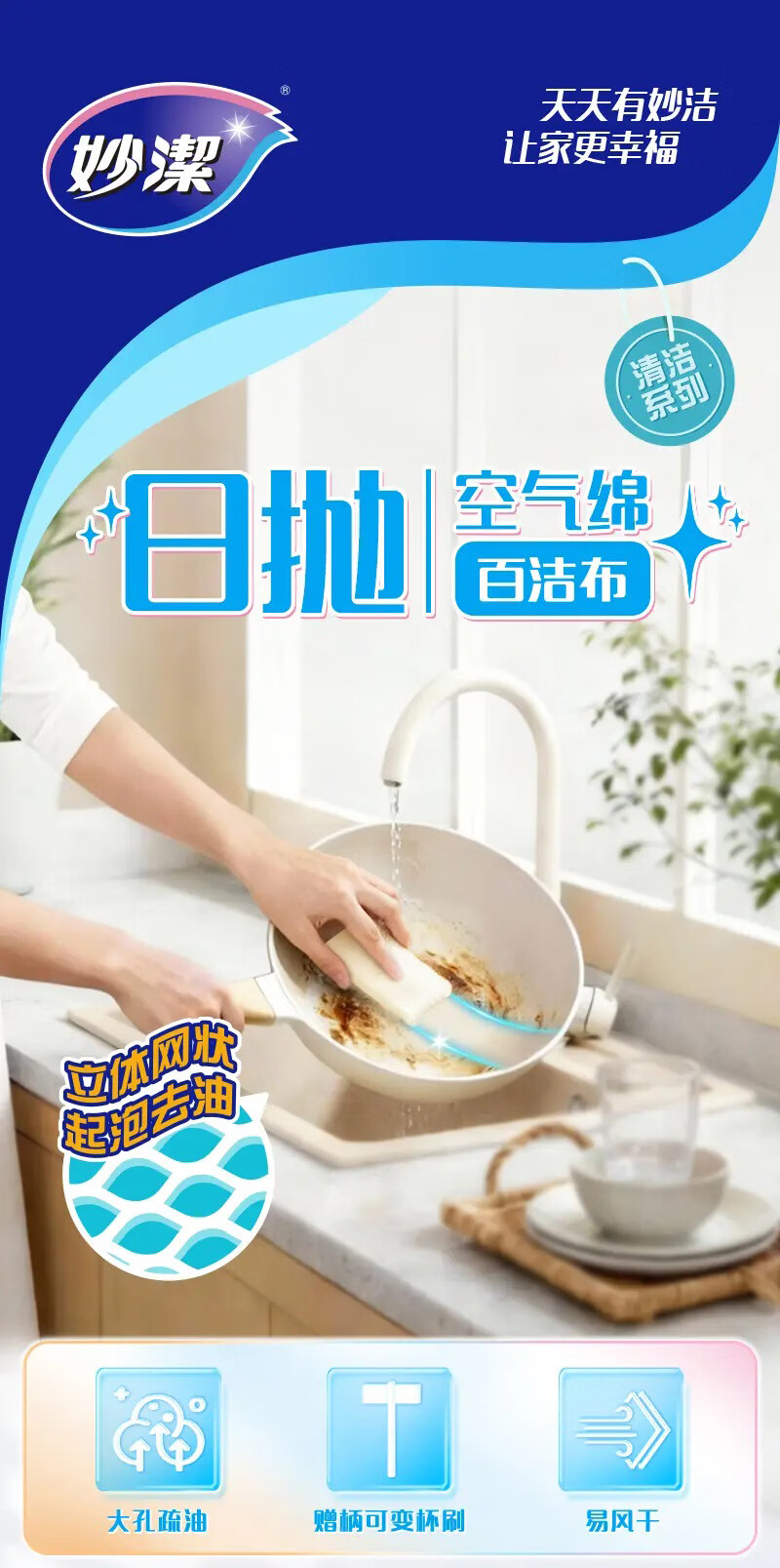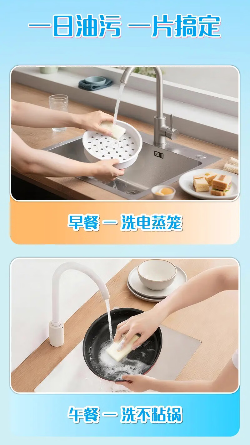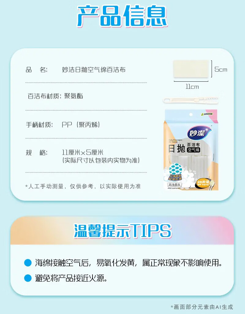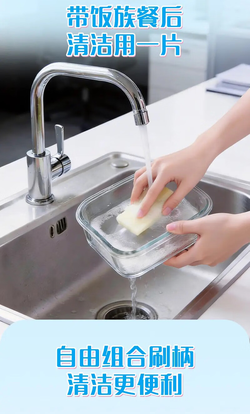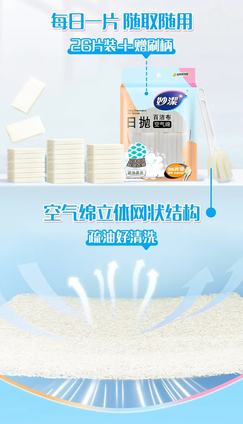 妙洁日抛空气绵百洁布 带手柄一次性洗碗洗杯子懒人清洁神器 【赠手柄】1包共26片