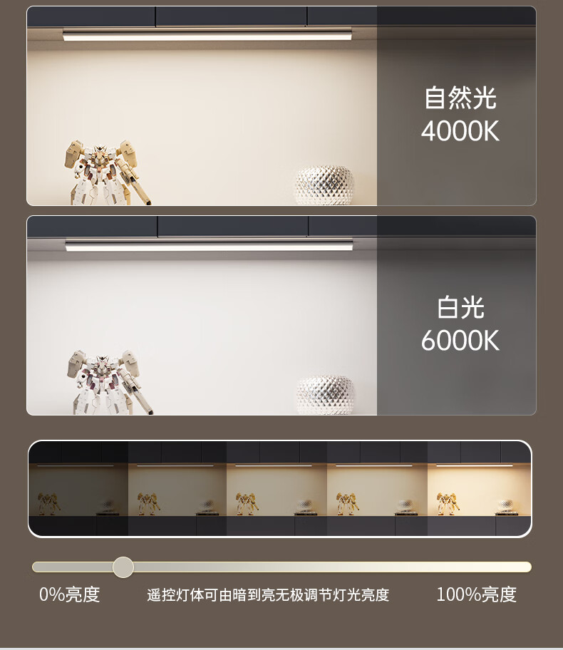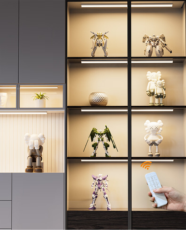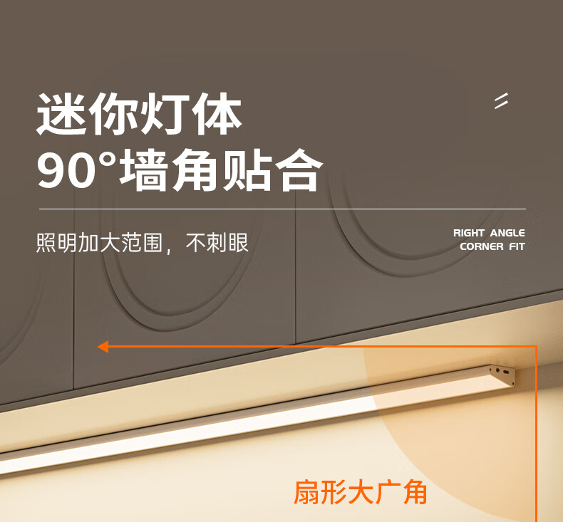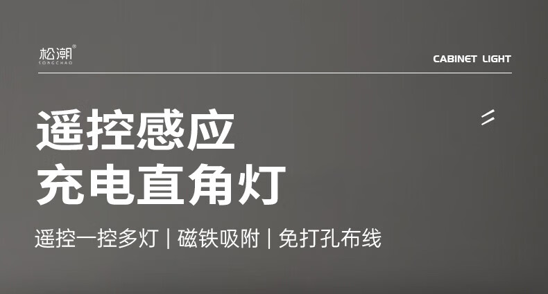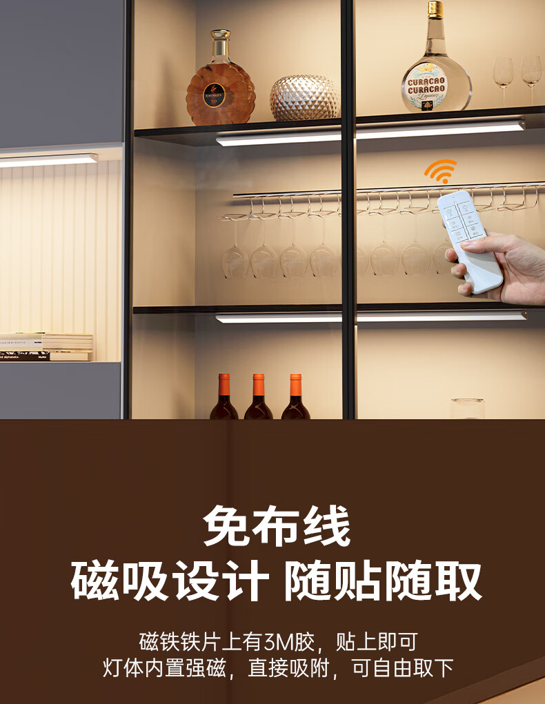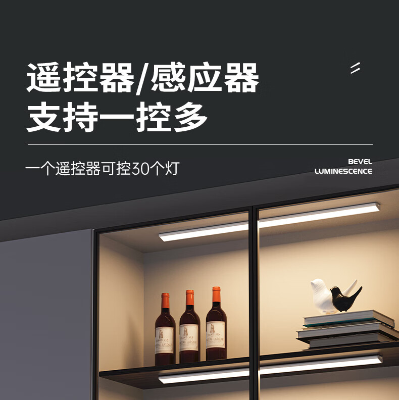 松潮遥控人体感应灯带橱柜灯磁吸玄关灯餐边柜酒柜灯小夜灯氛围灯条 暗夜黑色 遥控器-必购(手动亮灭/可一对多)