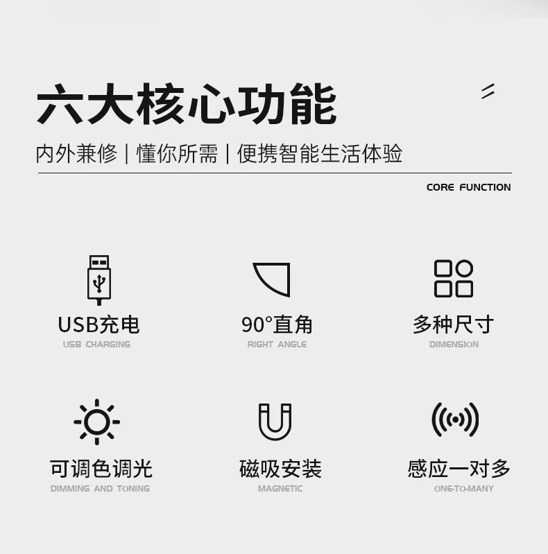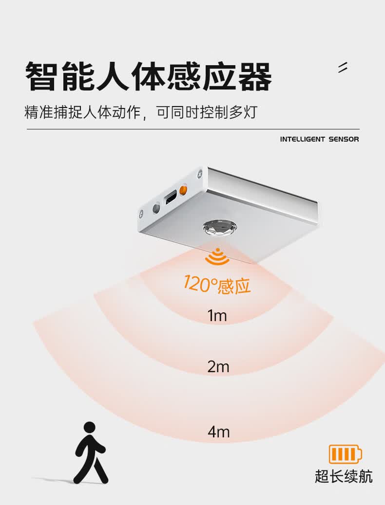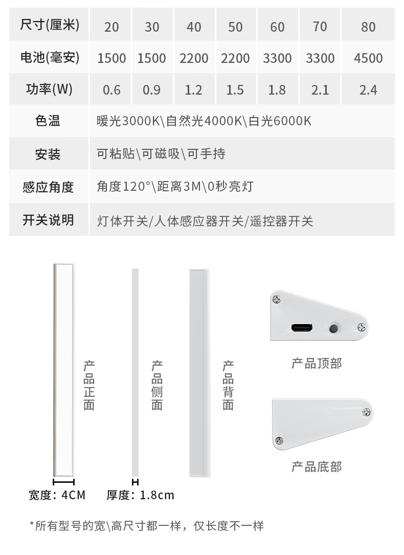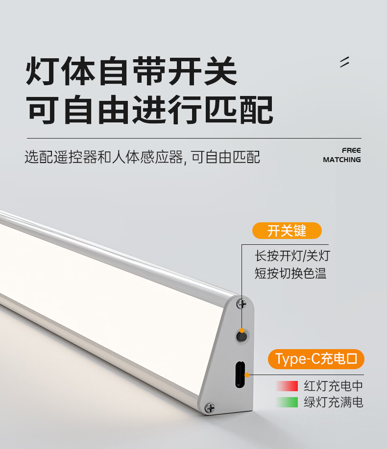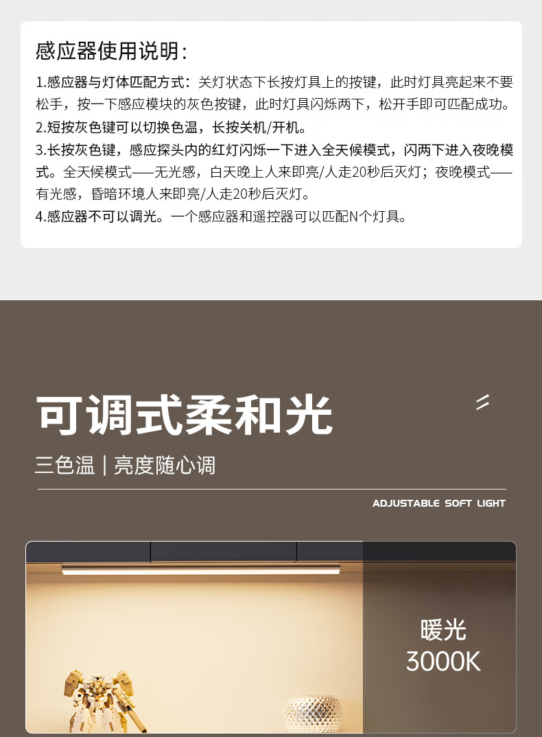松潮遥控人体感应灯带橱柜灯磁吸玄关灯餐边柜酒柜灯小夜灯氛围灯条 暗夜黑色 遥控器-必购(手动亮灭/可一对多)