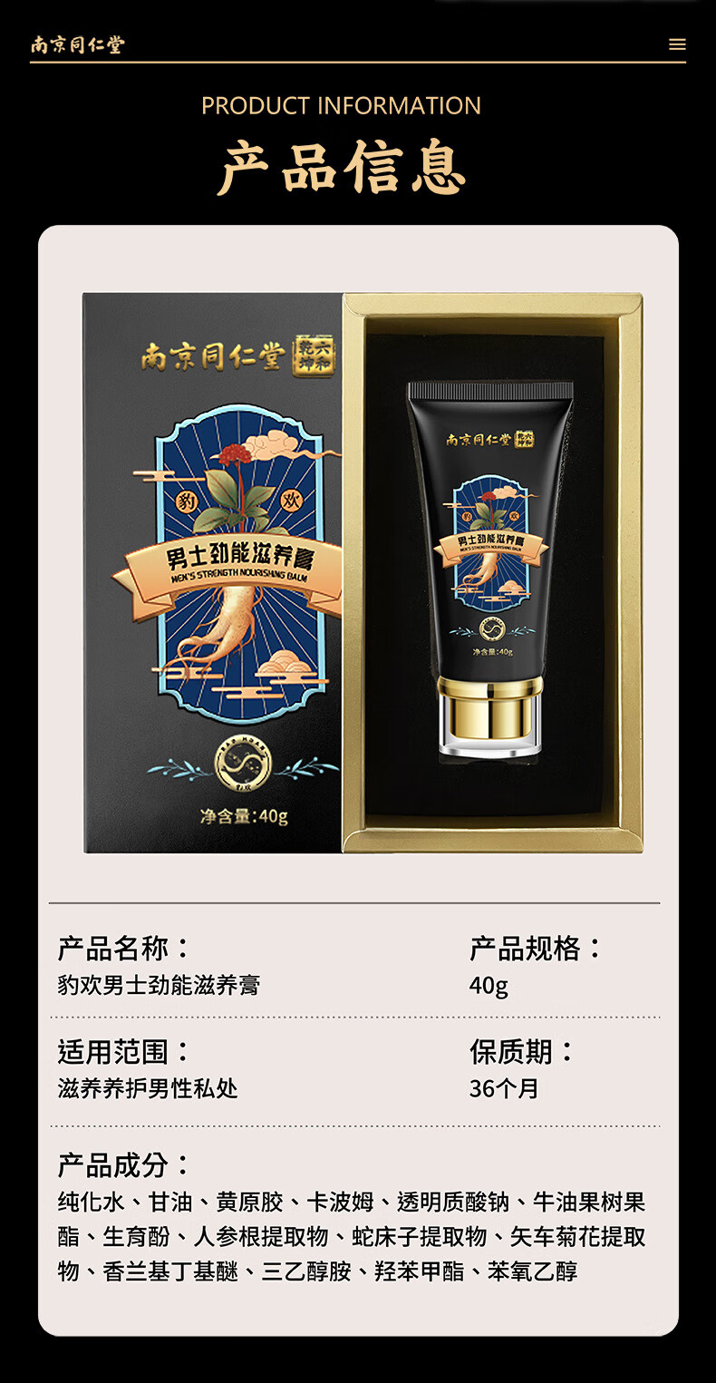 南京同仁堂男士滋养劲能膏40g 男性成人按摩修复粗大膏二次发育 6盒【巩固装】做自信男人