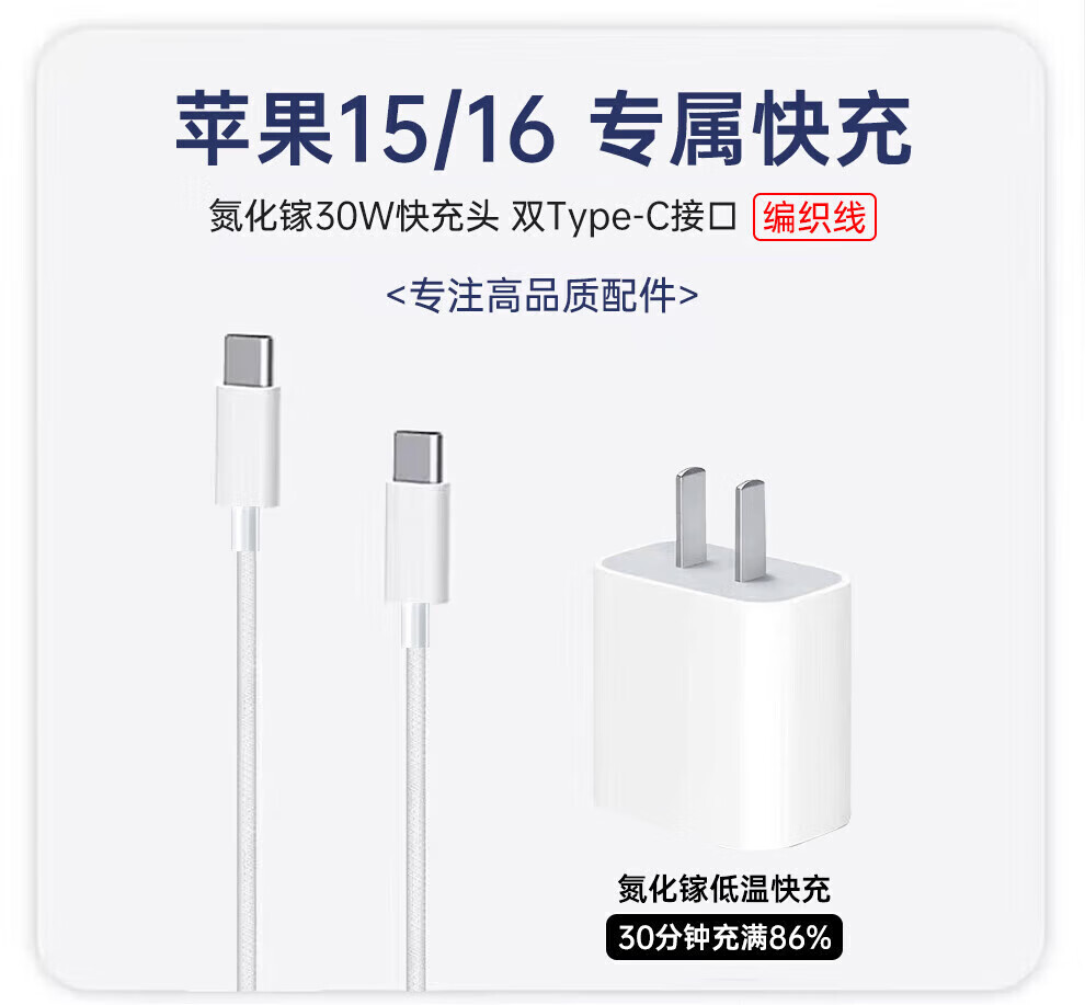萨勒芬妮【3C认证丨安全快充】苹果17/16/15充电器数据线苹果PD快充头套装iPhone17Promax手机数据线 【苹果15-17】30W快充头+1米快充线套装 【新国标3C认证丨安全不伤机】