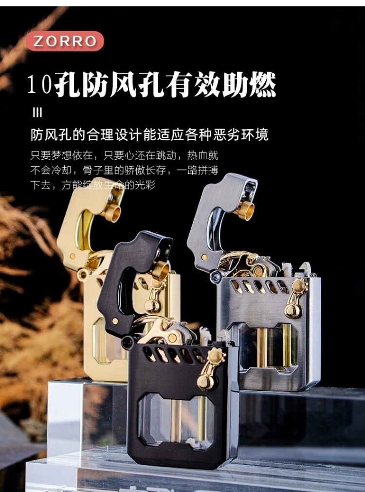 ZORRO佐罗煤油打火机赛博机甲托伦斯透明油仓防风创意送男友生日礼物潮 机甲鲲银拉丝(送礼版)
