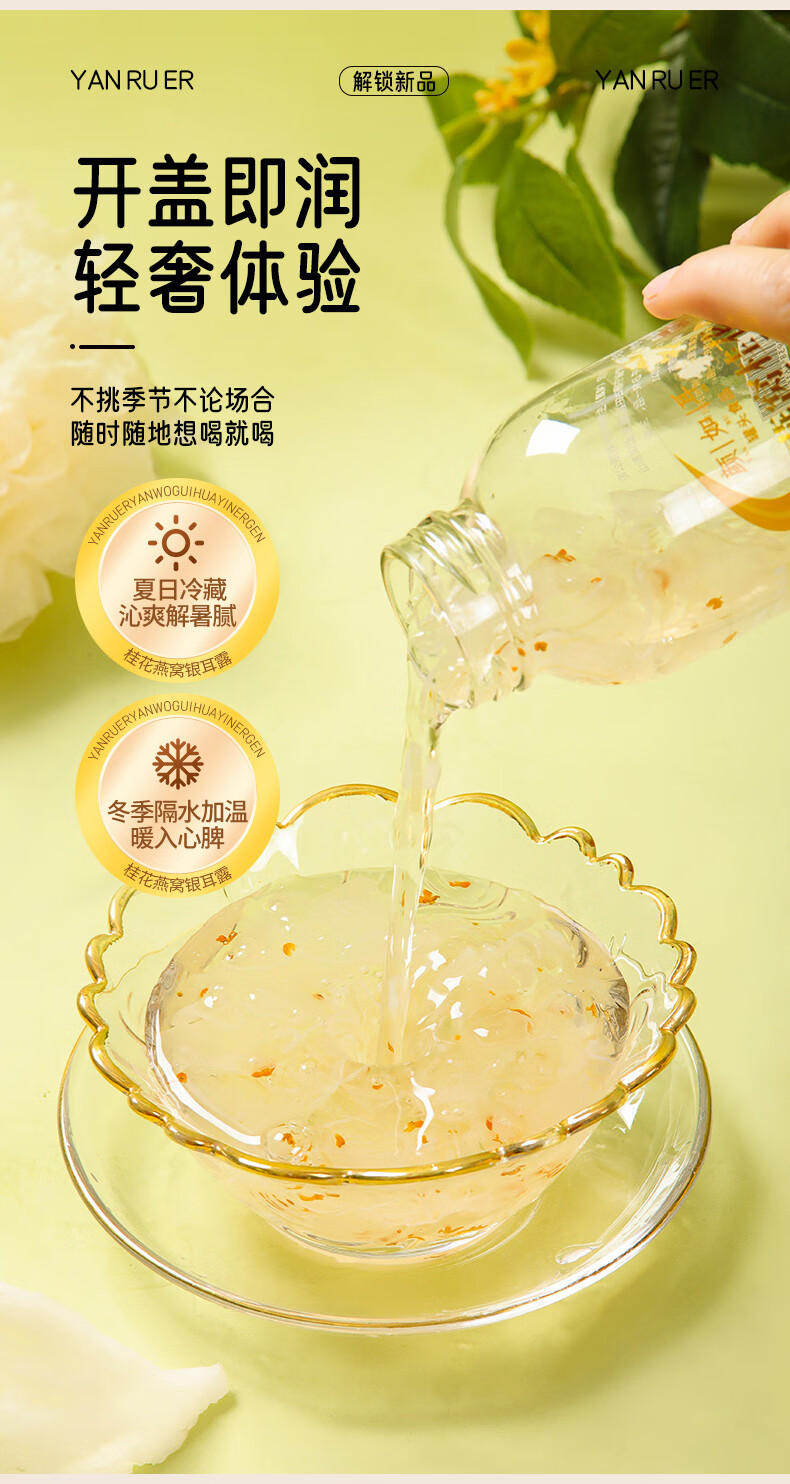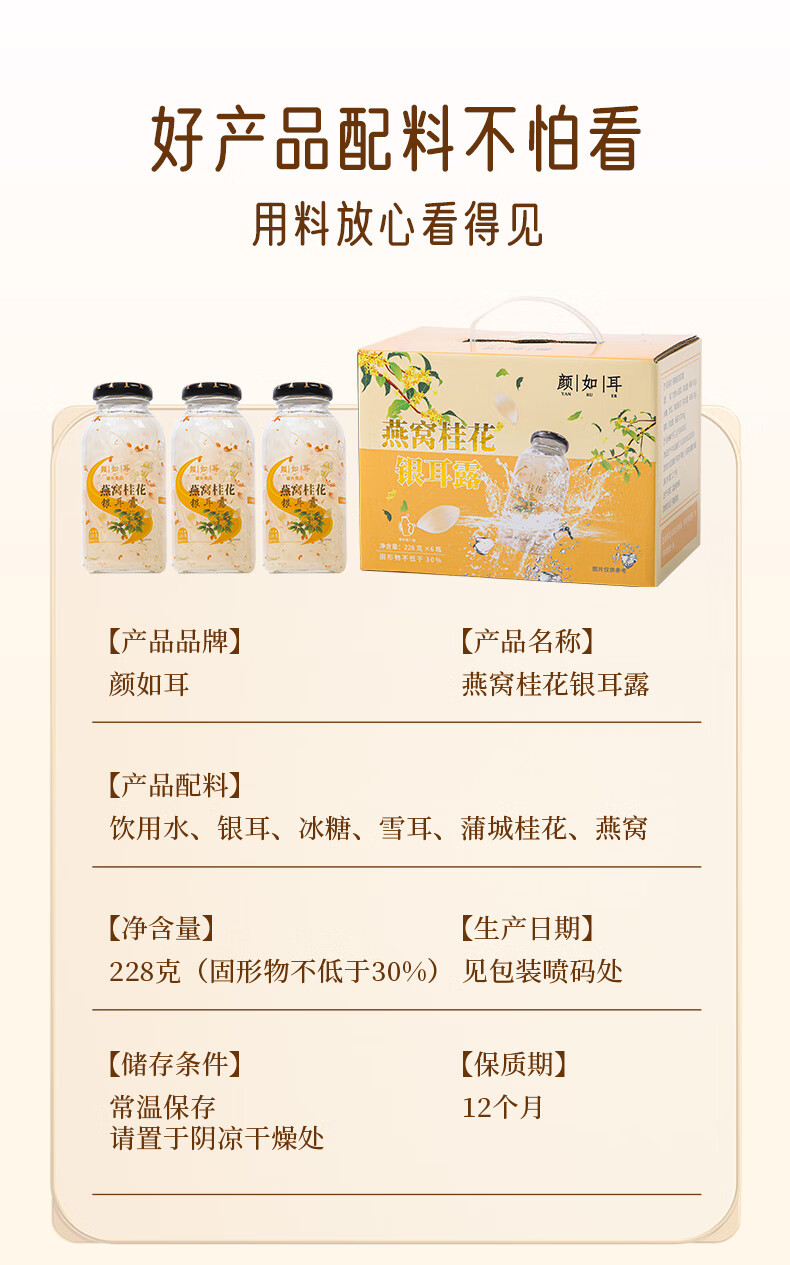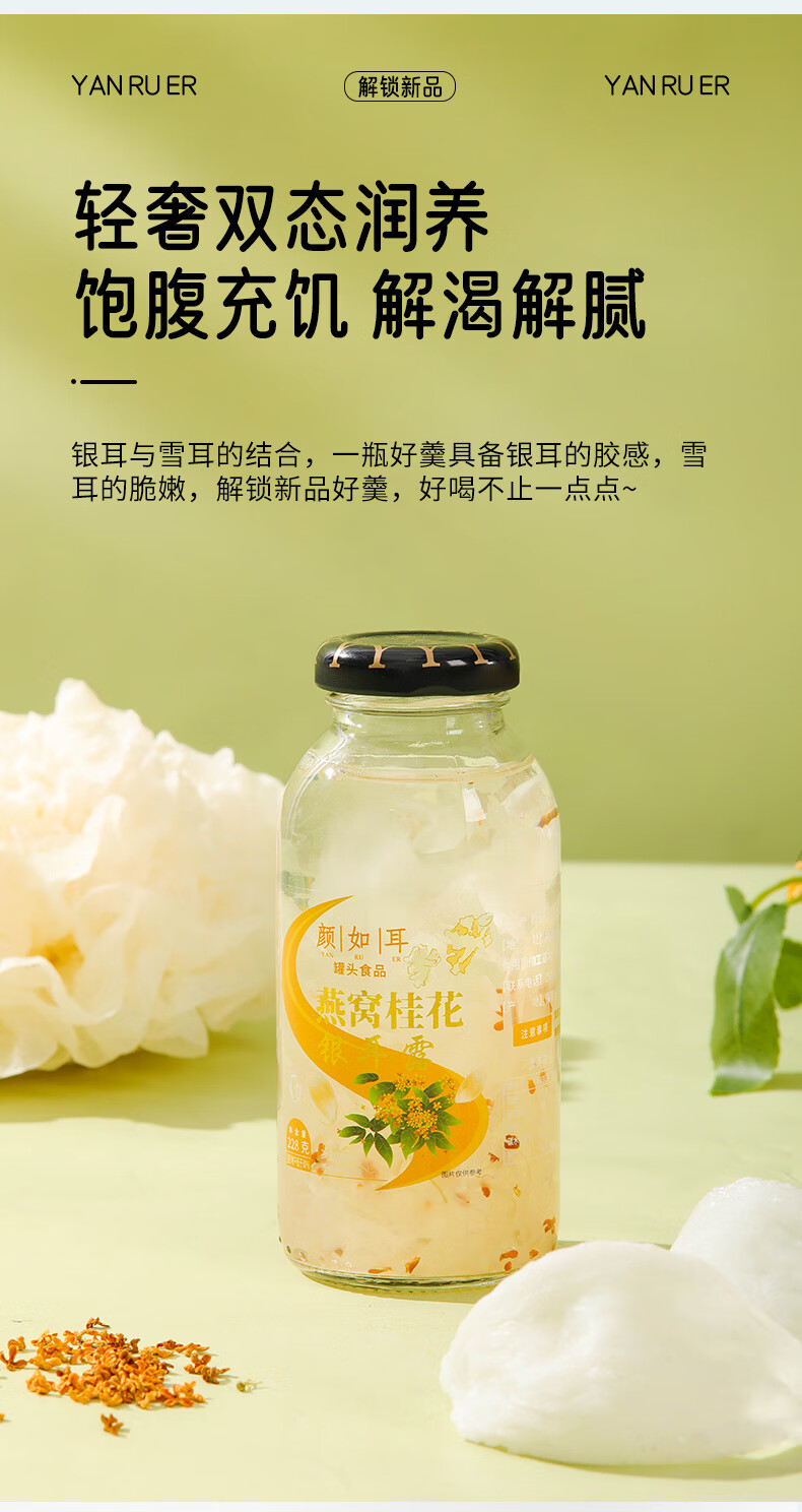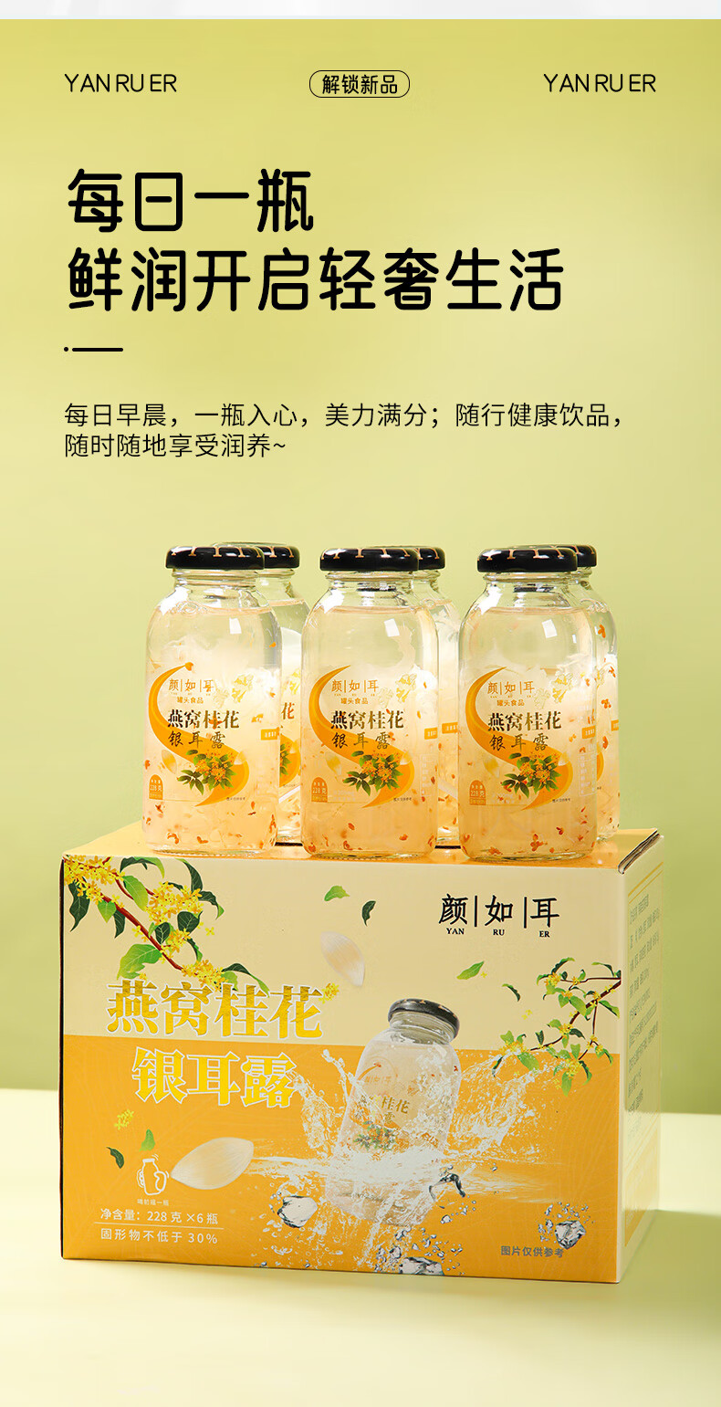 颜如耳燕窝桂花银耳露 夏日饮品 代餐即食 鲜炖即食228g*6瓶 低糖低卡 燕窝桂花银耳露 228g*6瓶2箱【店长强荐】