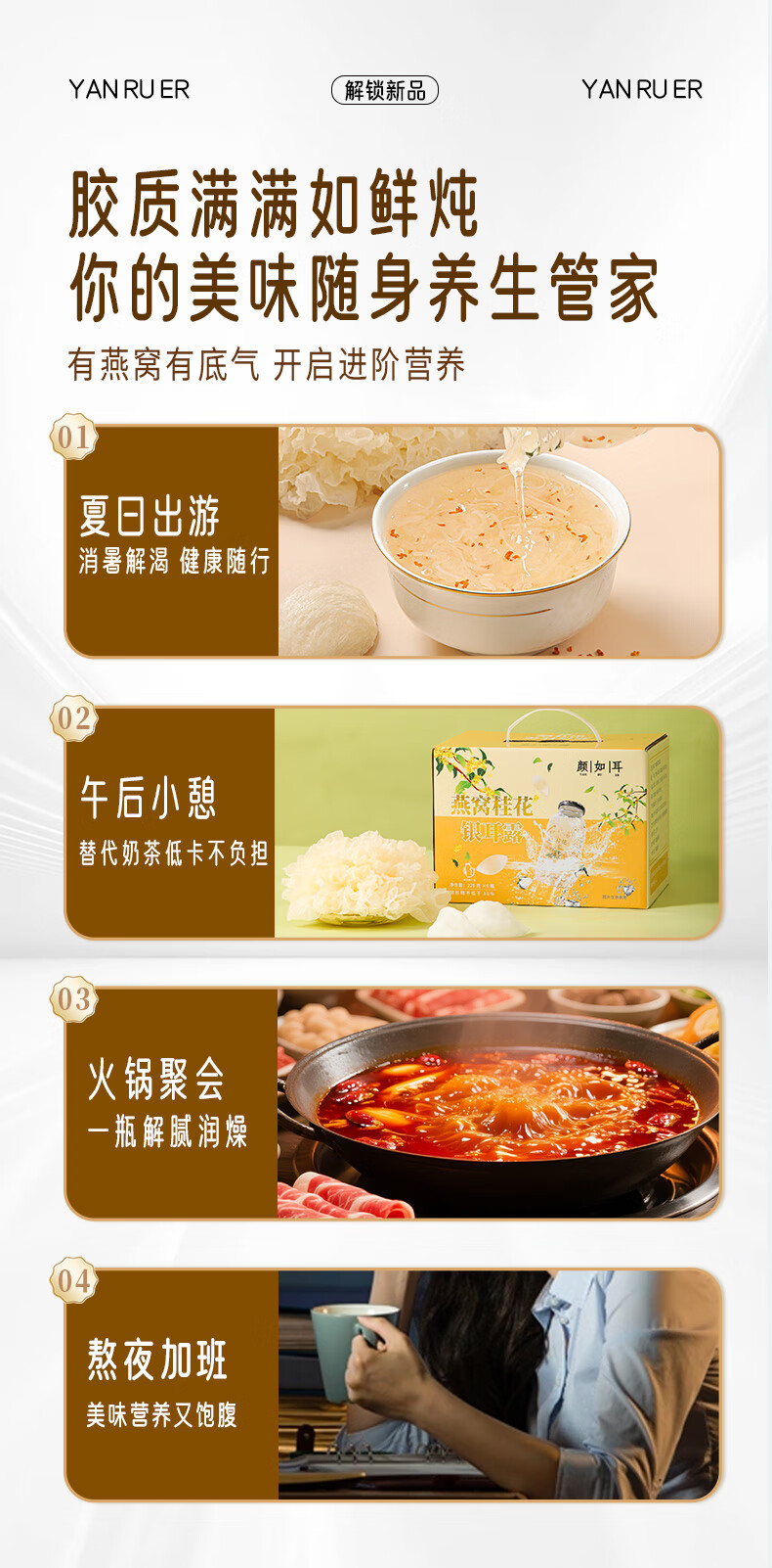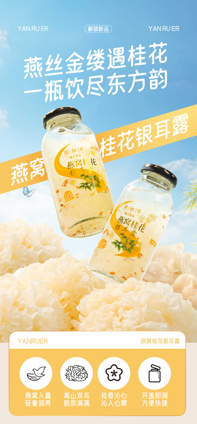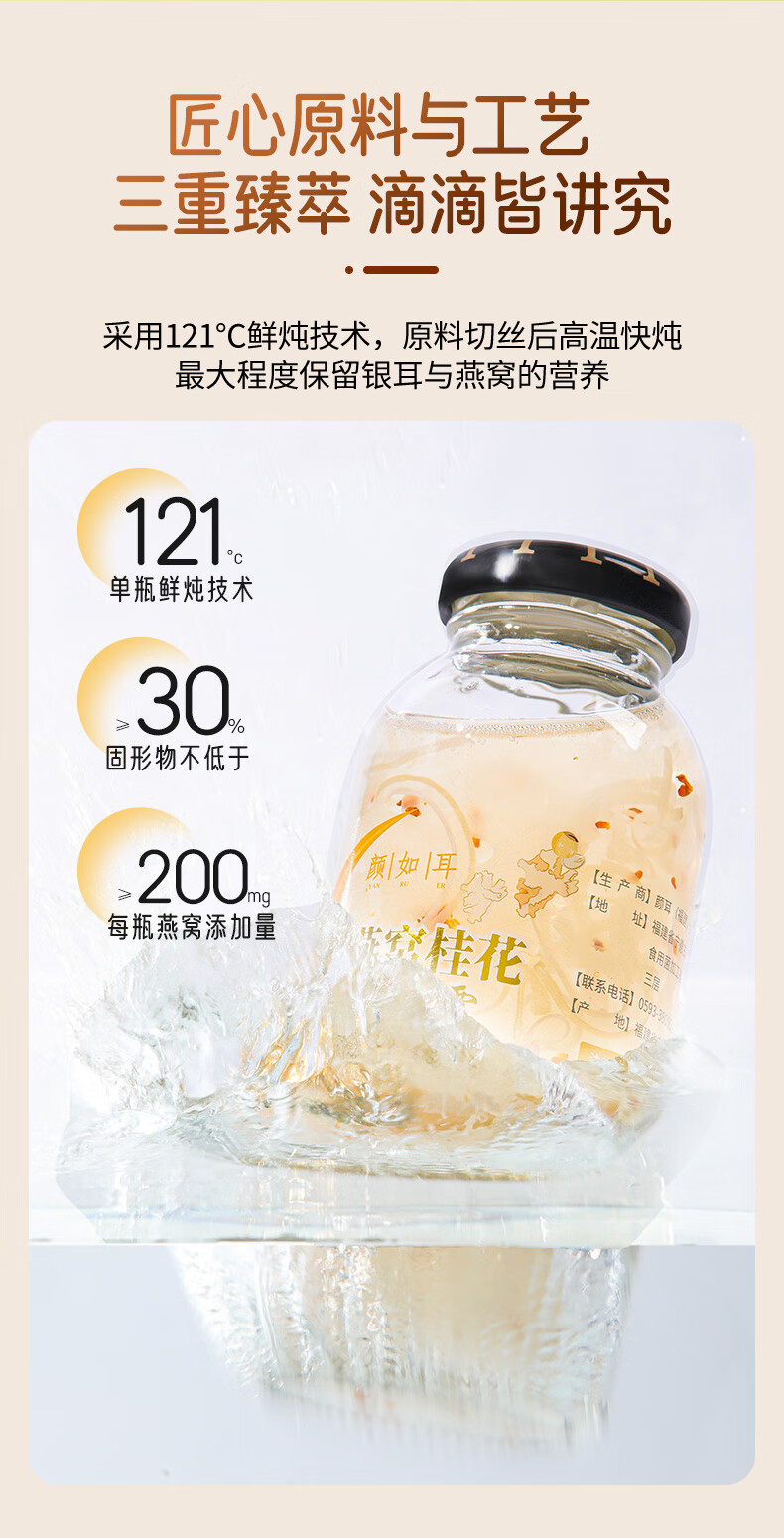 颜如耳燕窝桂花银耳露 夏日饮品 代餐即食 鲜炖即食228g*6瓶 低糖低卡 燕窝桂花银耳露 228g*6瓶2箱【店长强荐】