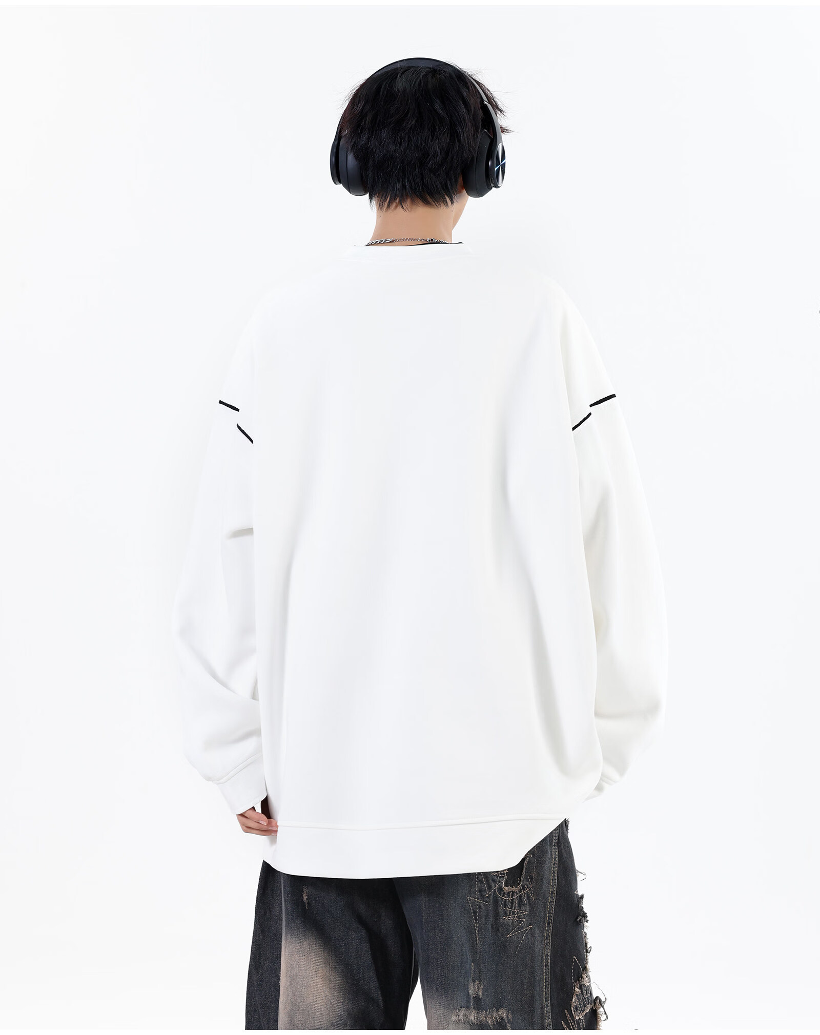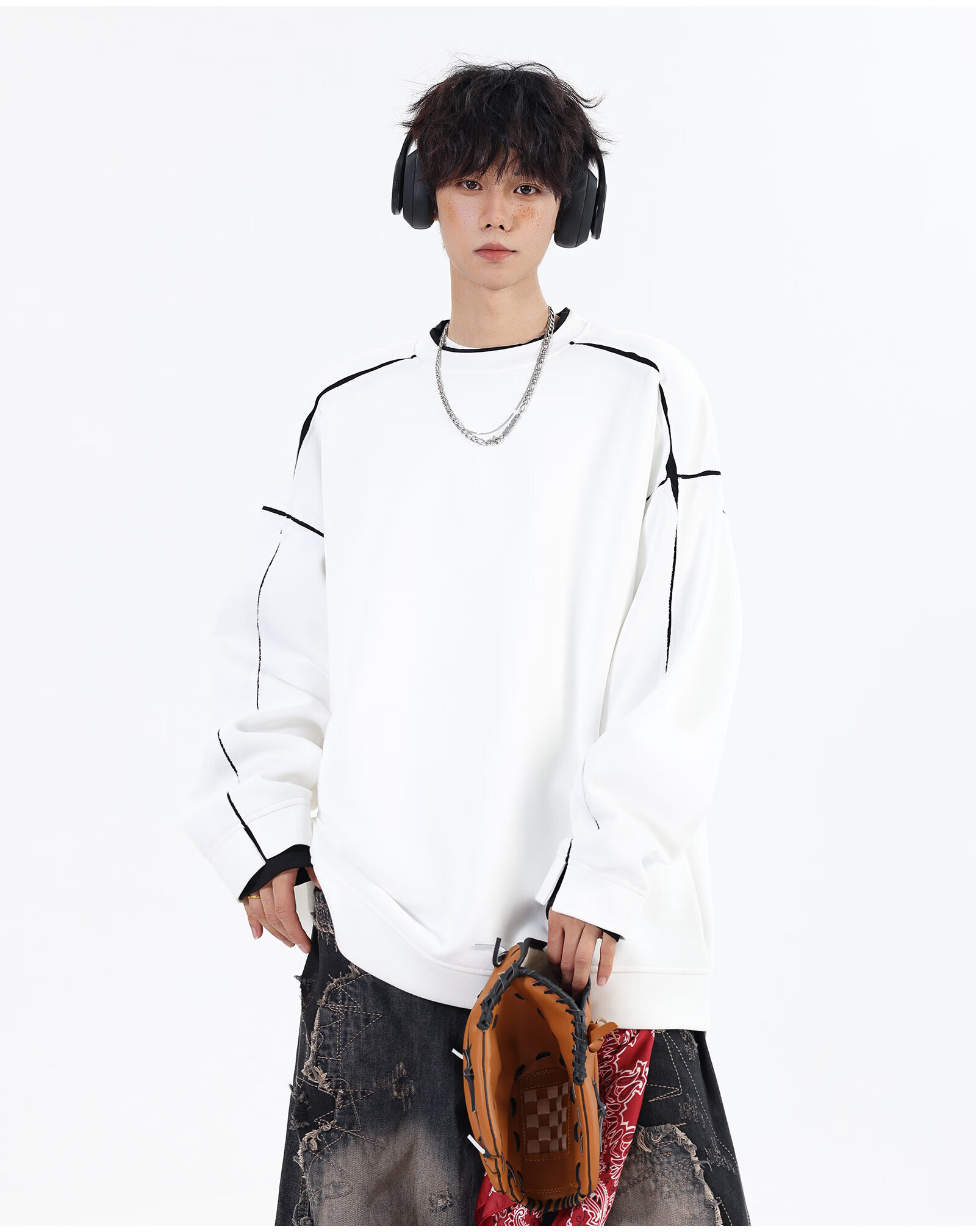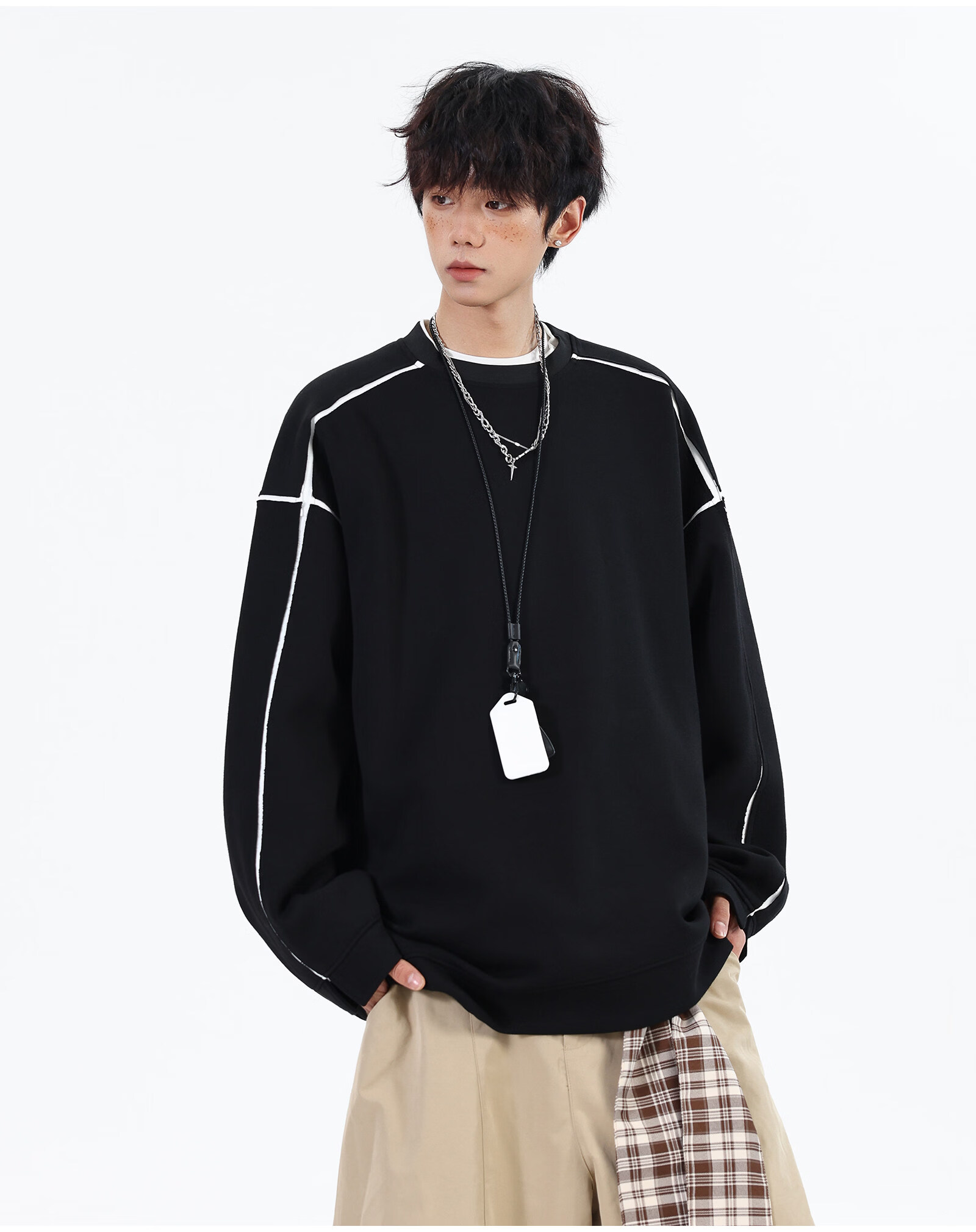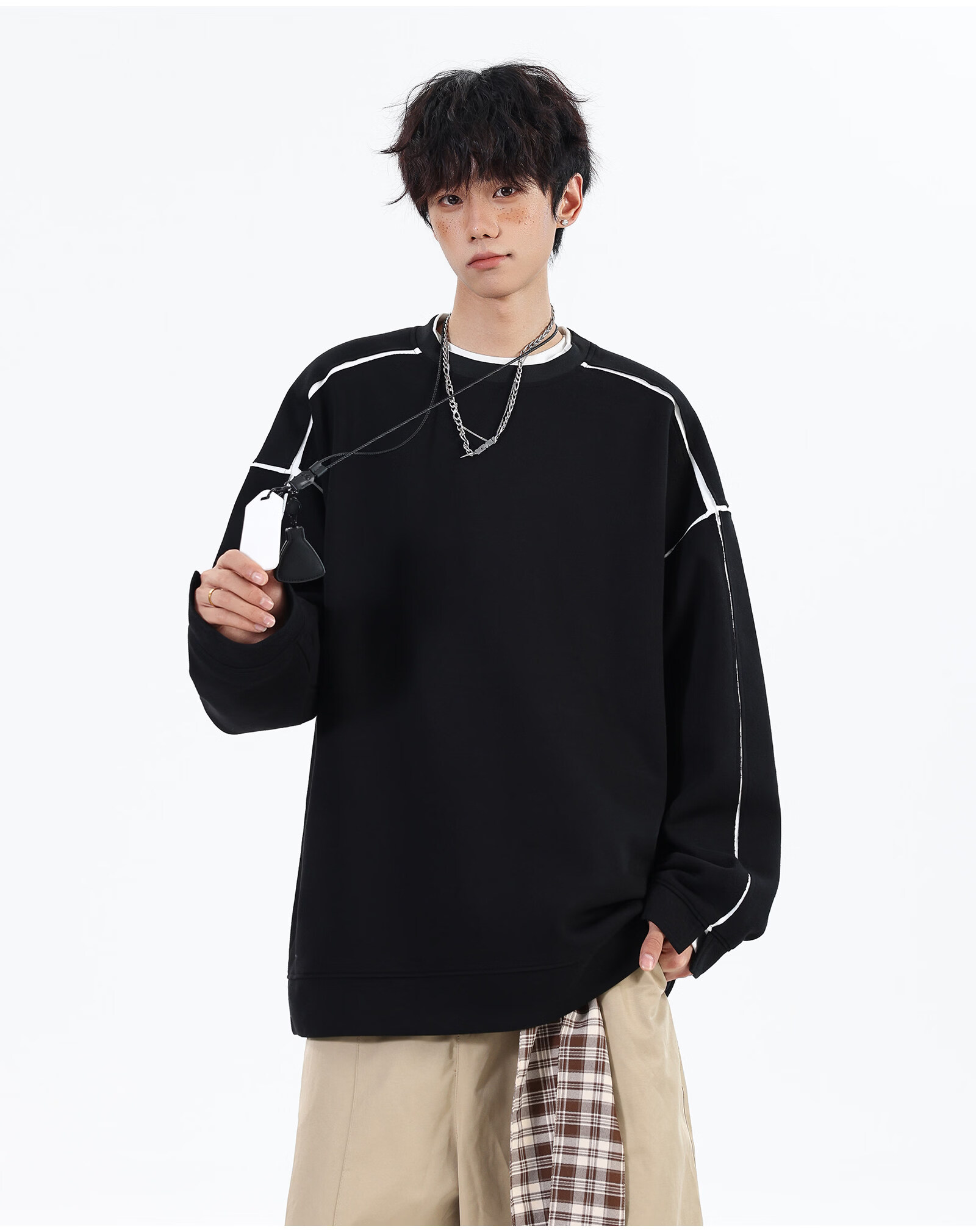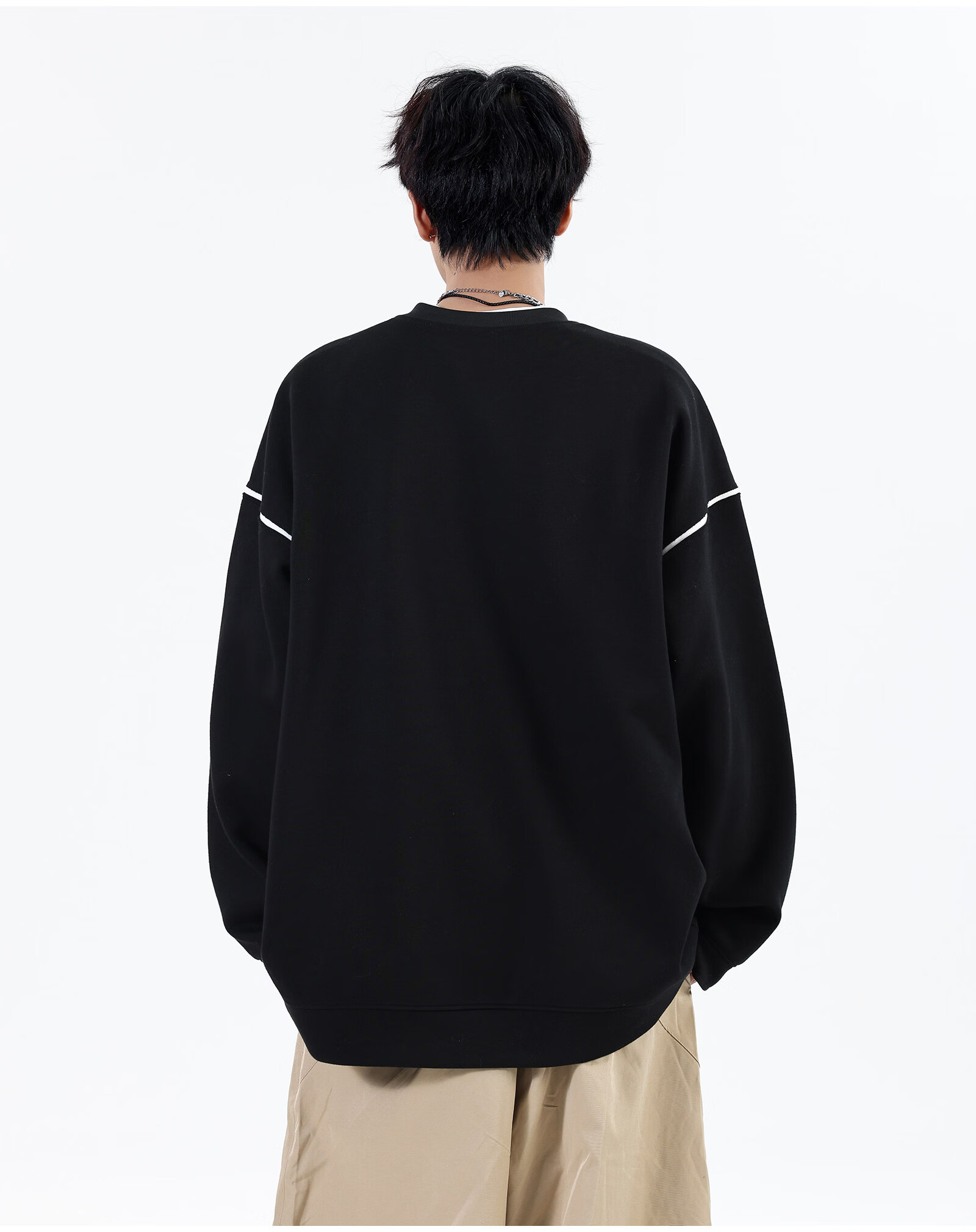 NEW OR MODE假两件切割设计圆领卫衣男春季新款美式潮流痞帅宽松大码上衣外套 黑色【高品质】 M 【建议90-110斤】