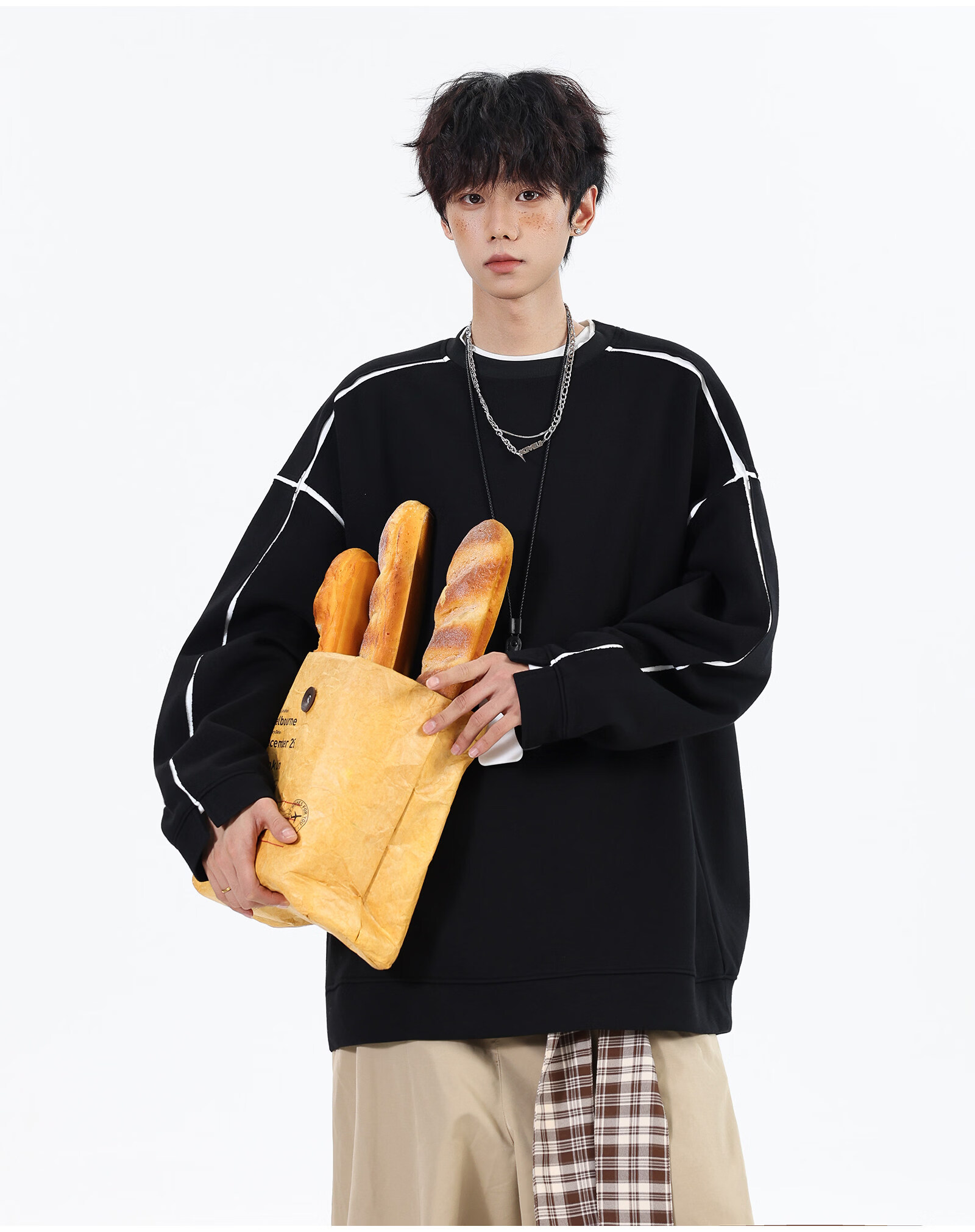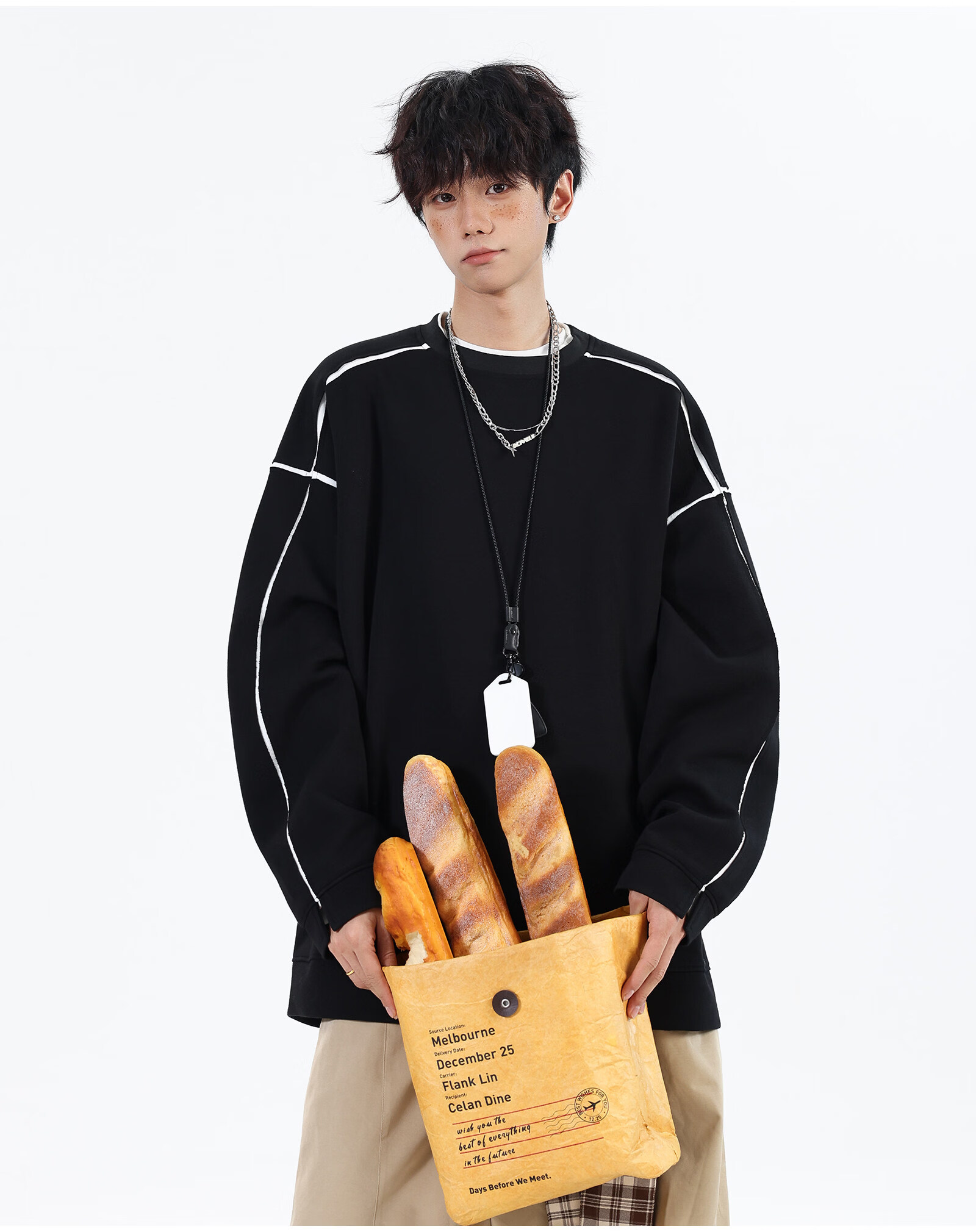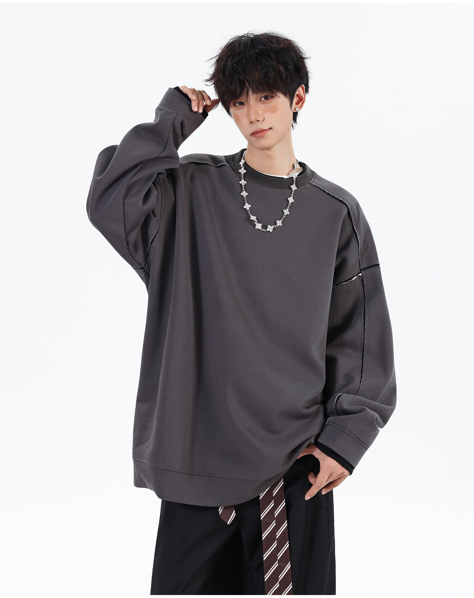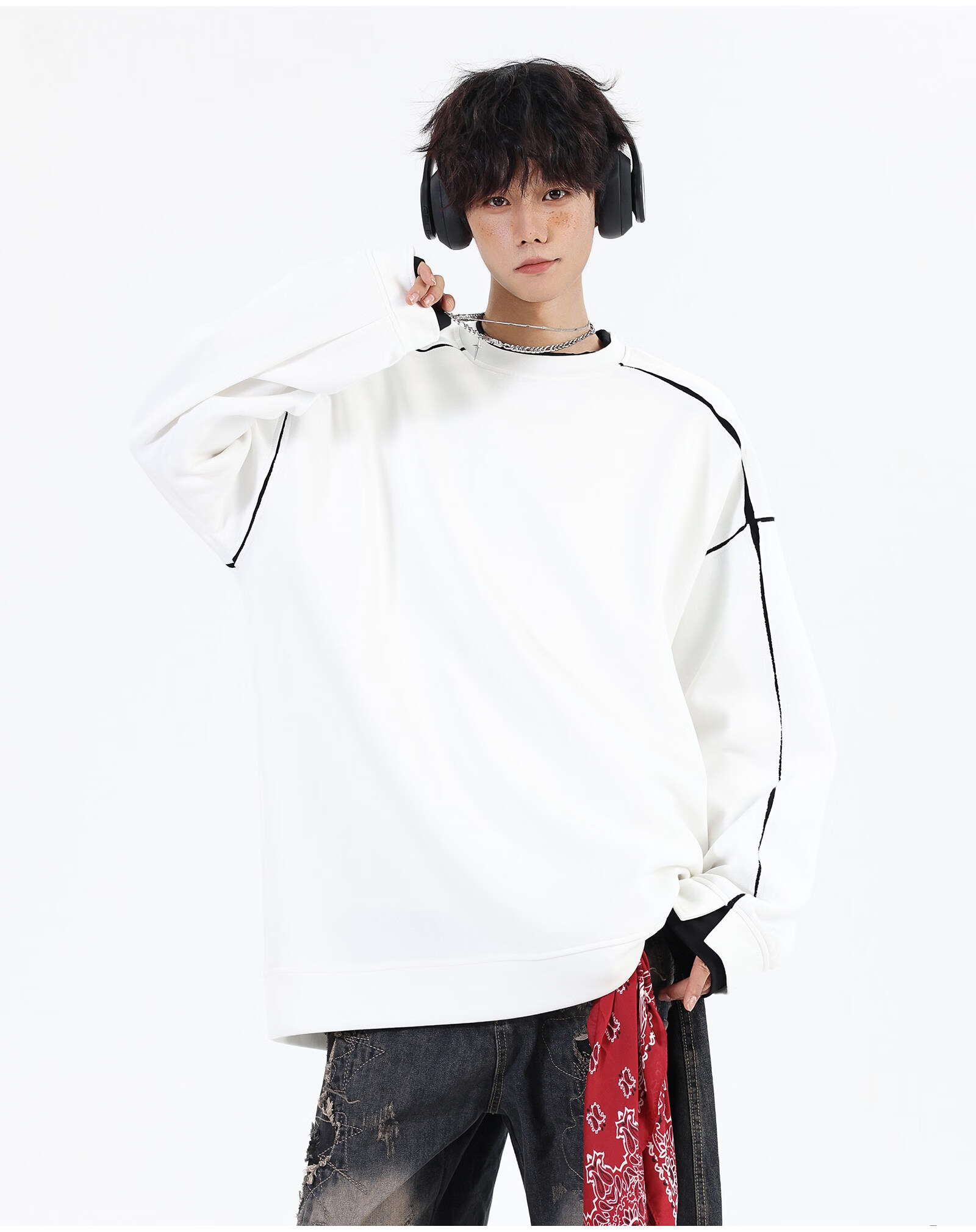 NEW OR MODE假两件切割设计圆领卫衣男春季新款美式潮流痞帅宽松大码上衣外套 黑色【高品质】 M 【建议90-110斤】