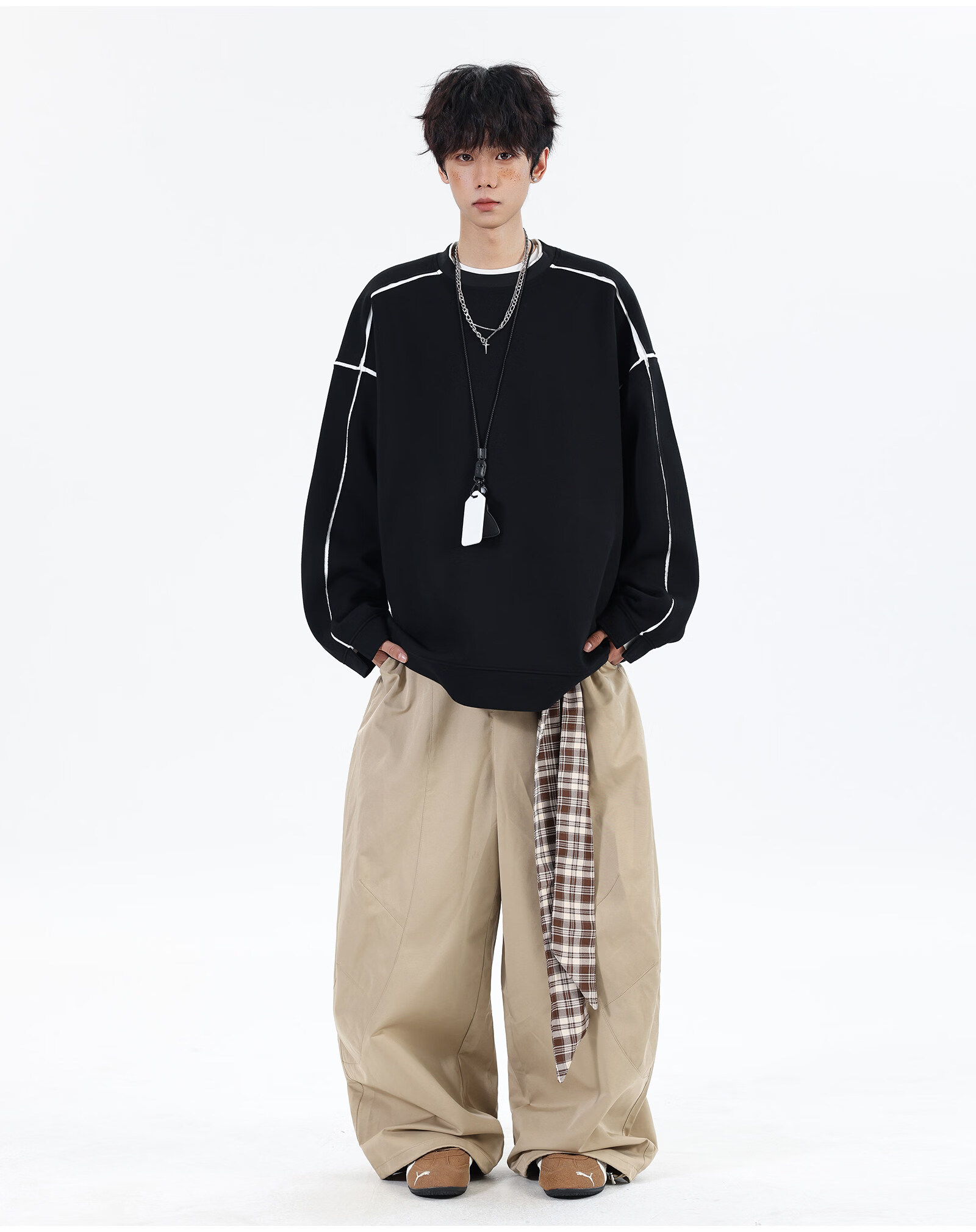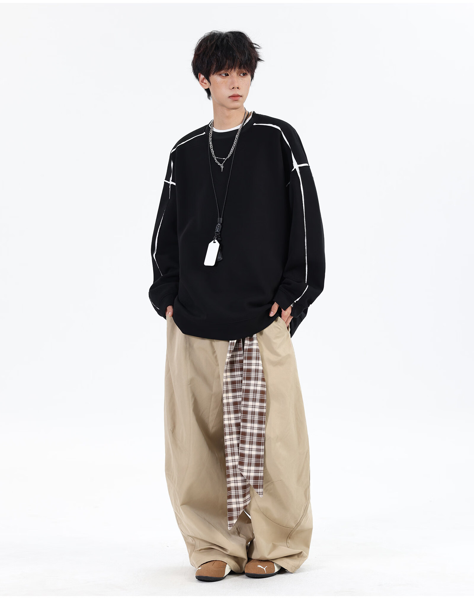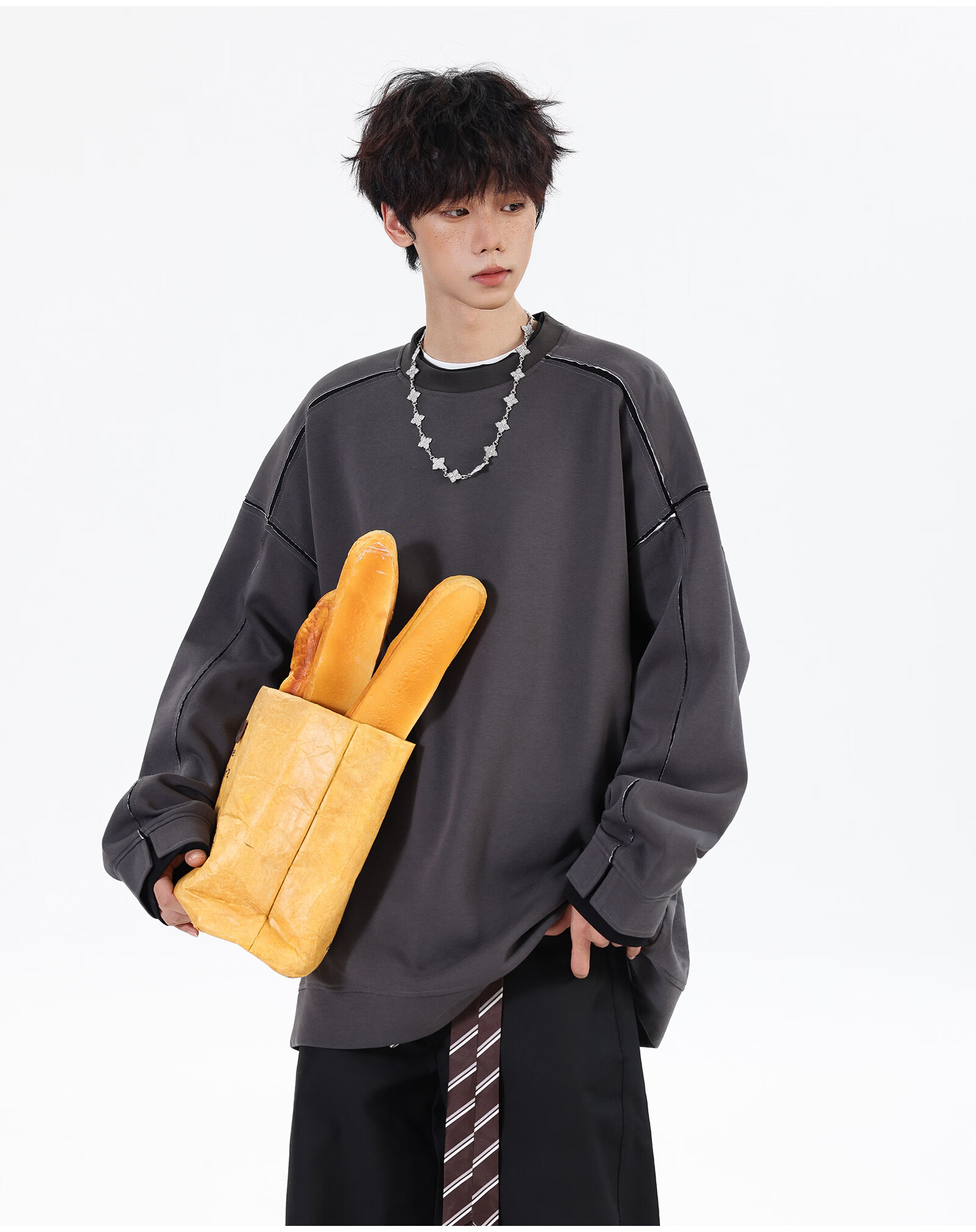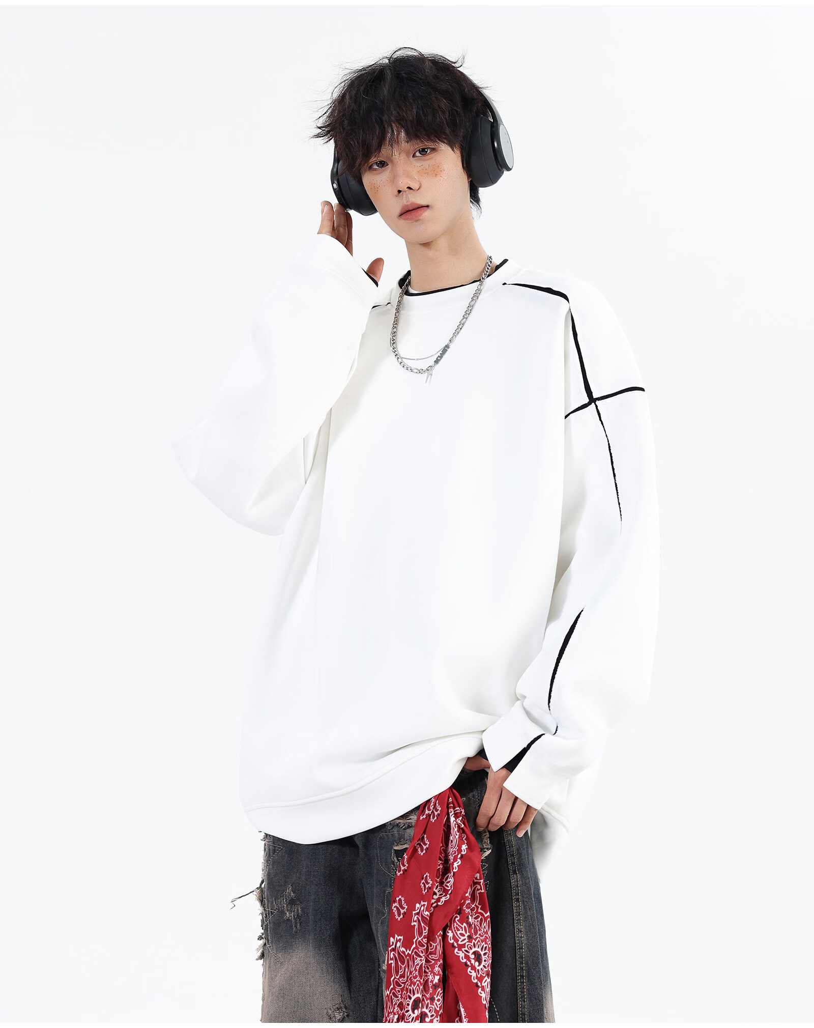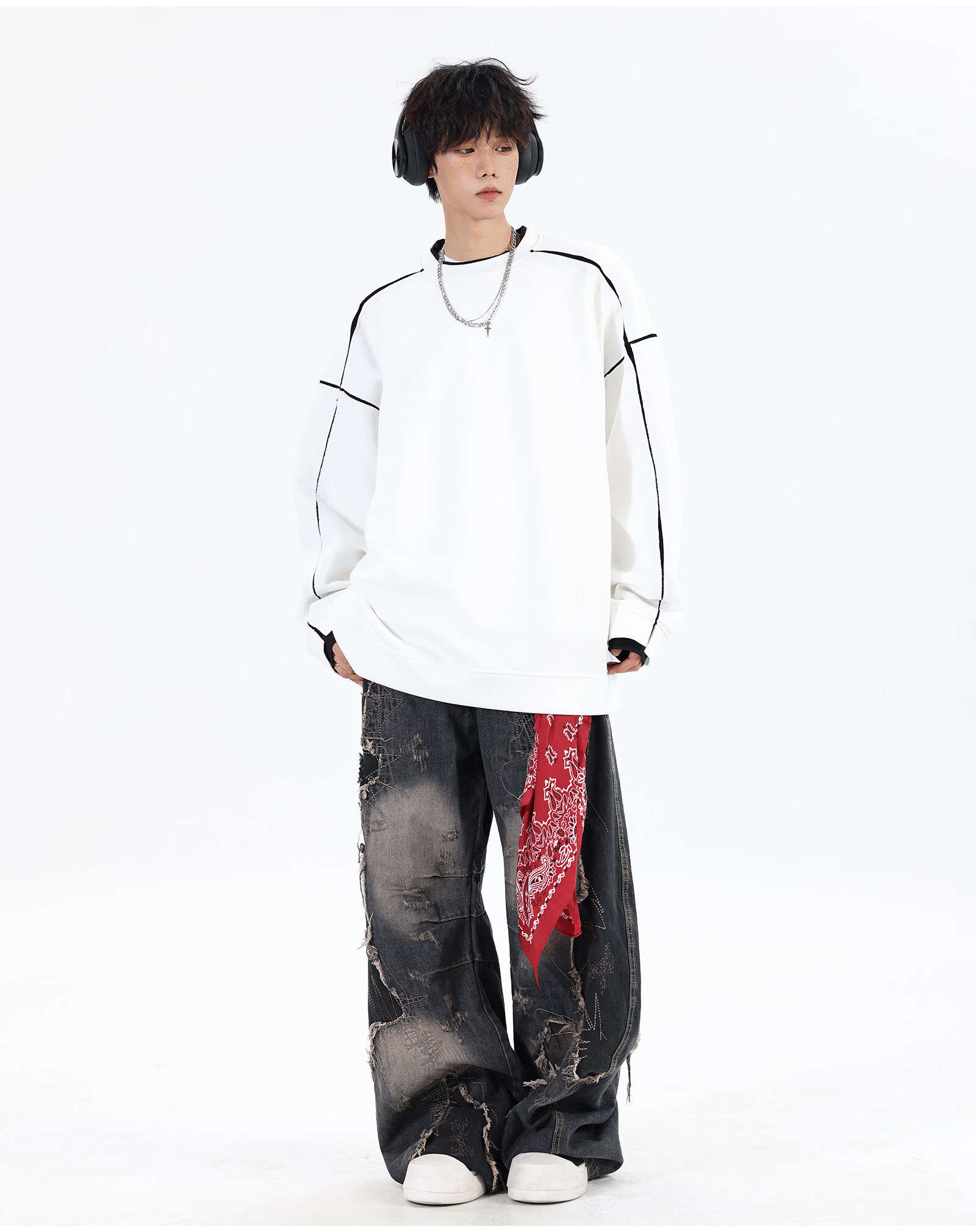 NEW OR MODE假两件切割设计圆领卫衣男春季新款美式潮流痞帅宽松大码上衣外套 黑色【高品质】 M 【建议90-110斤】