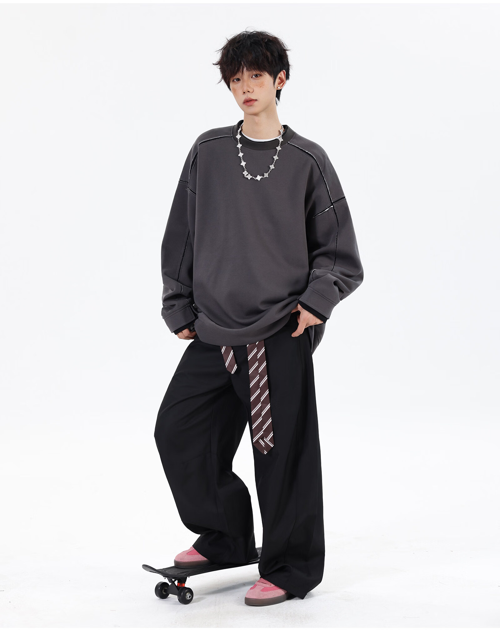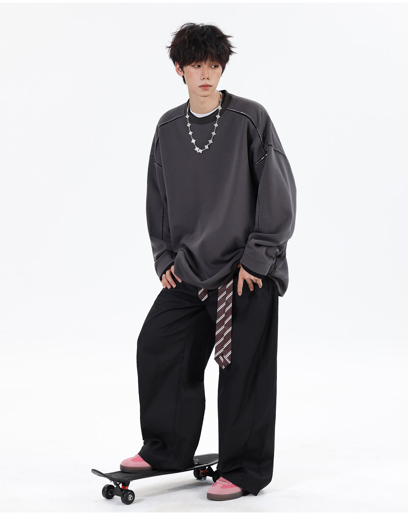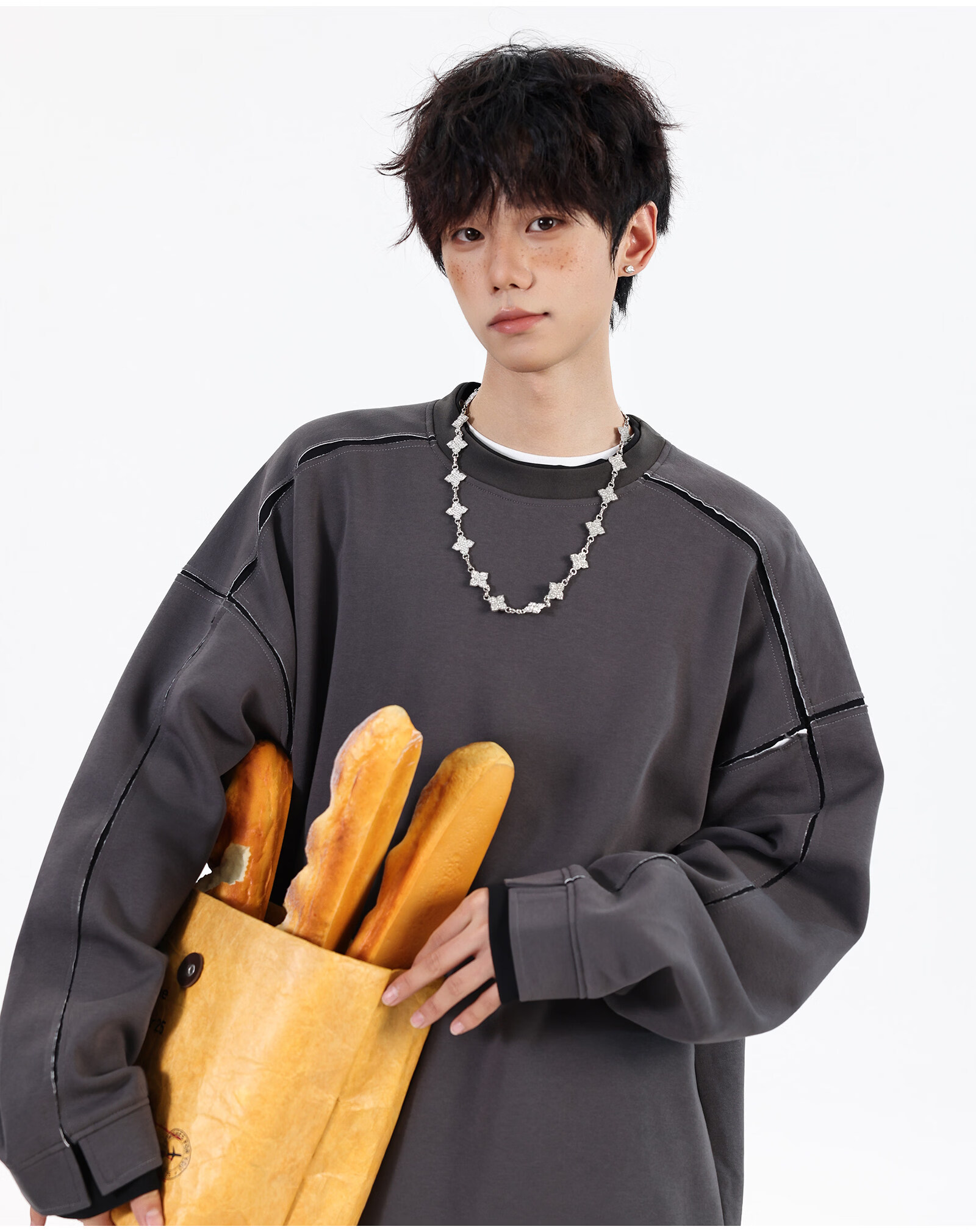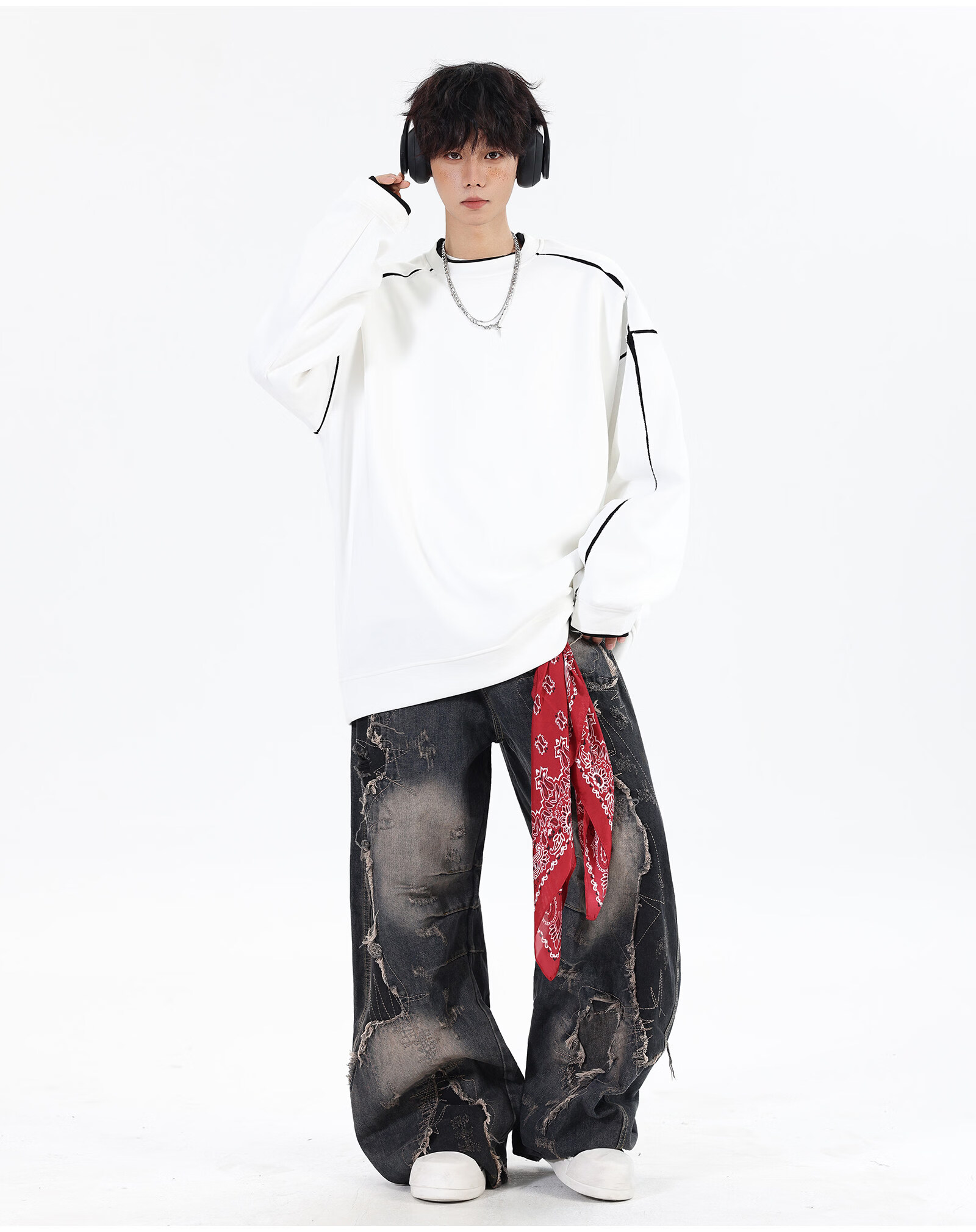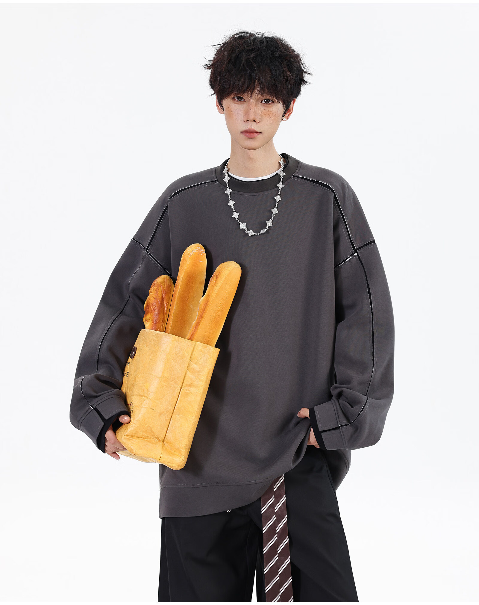 NEW OR MODE假两件切割设计圆领卫衣男春季新款美式潮流痞帅宽松大码上衣外套 黑色【高品质】 M 【建议90-110斤】
