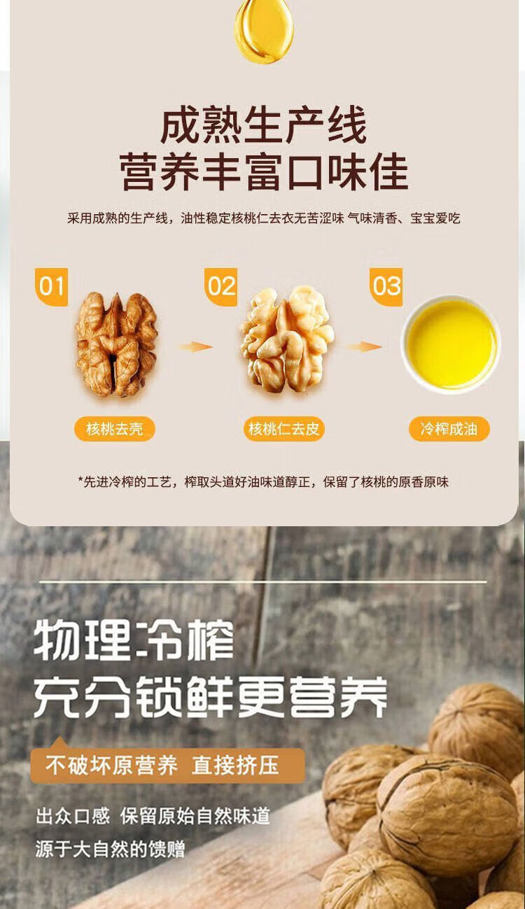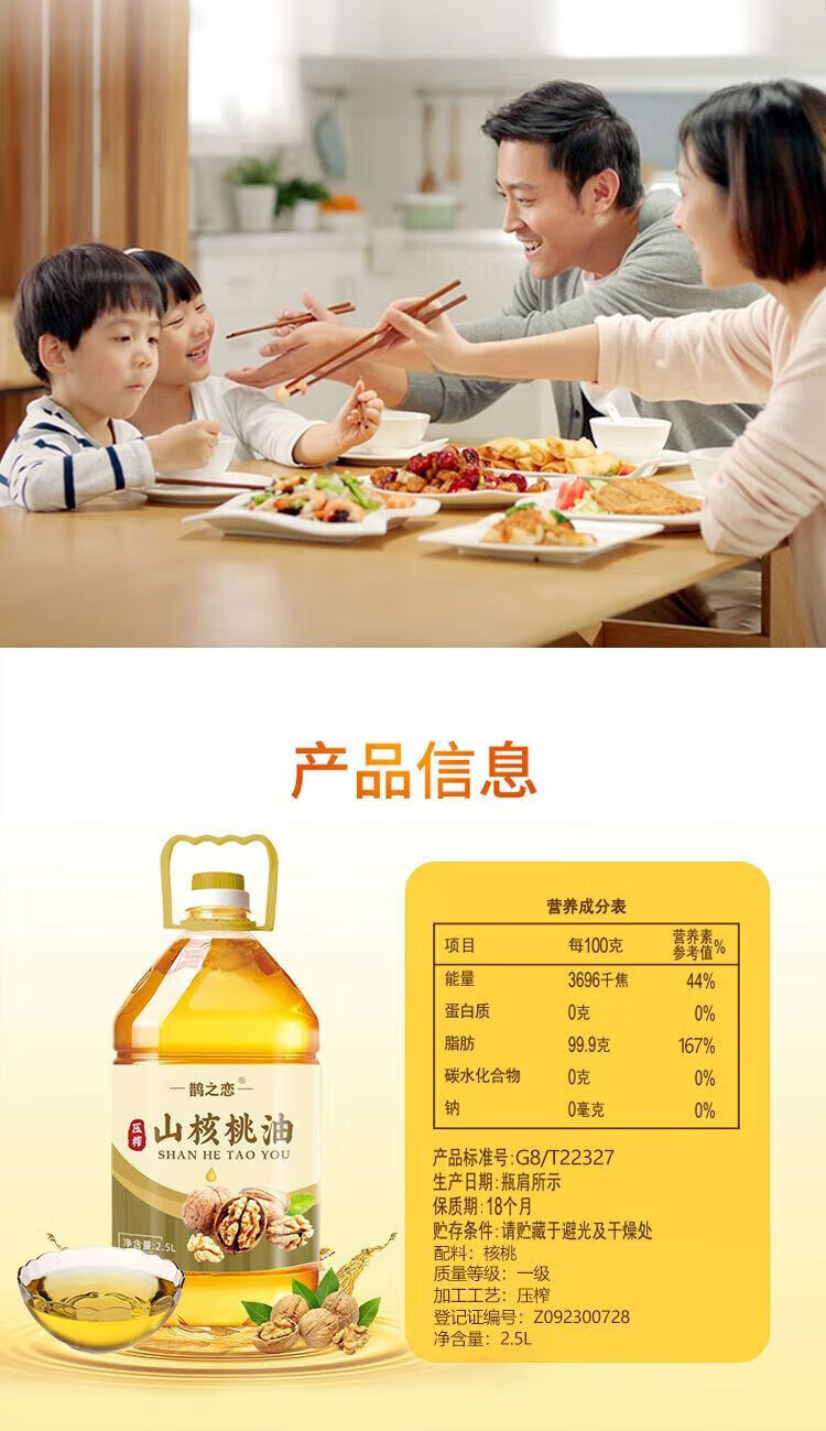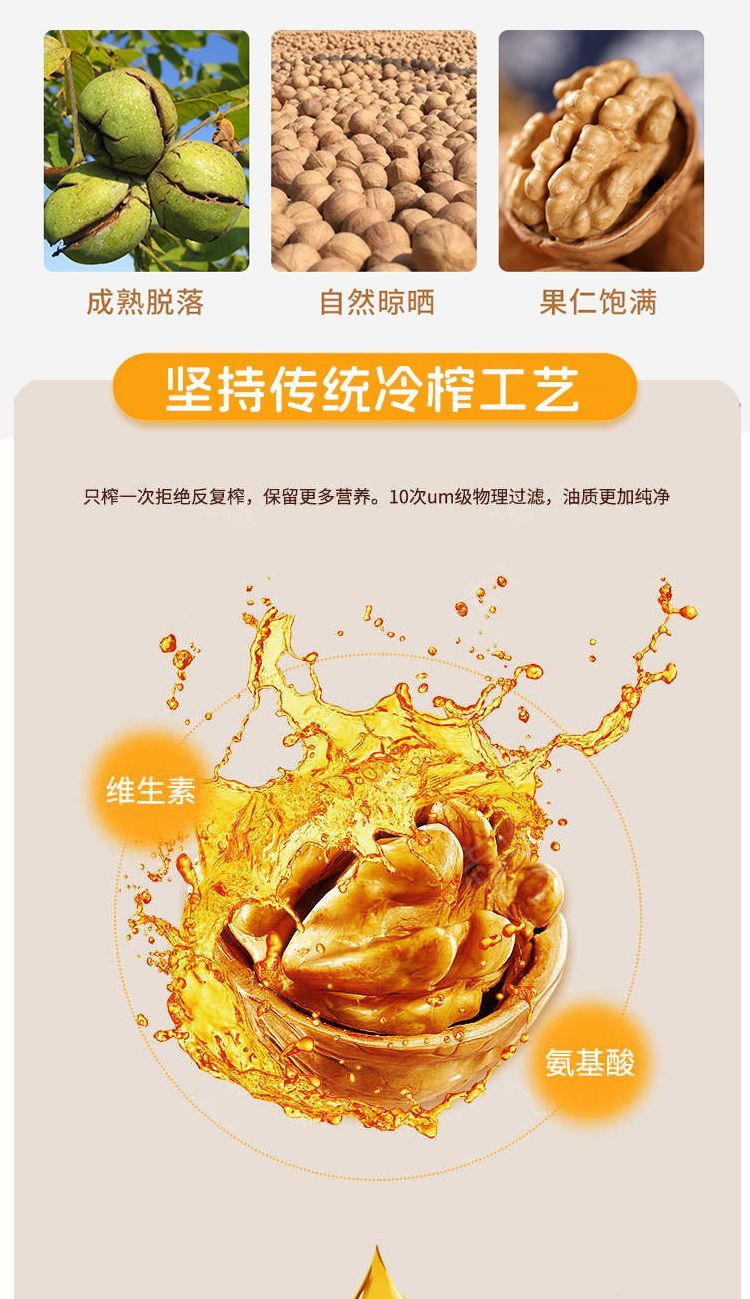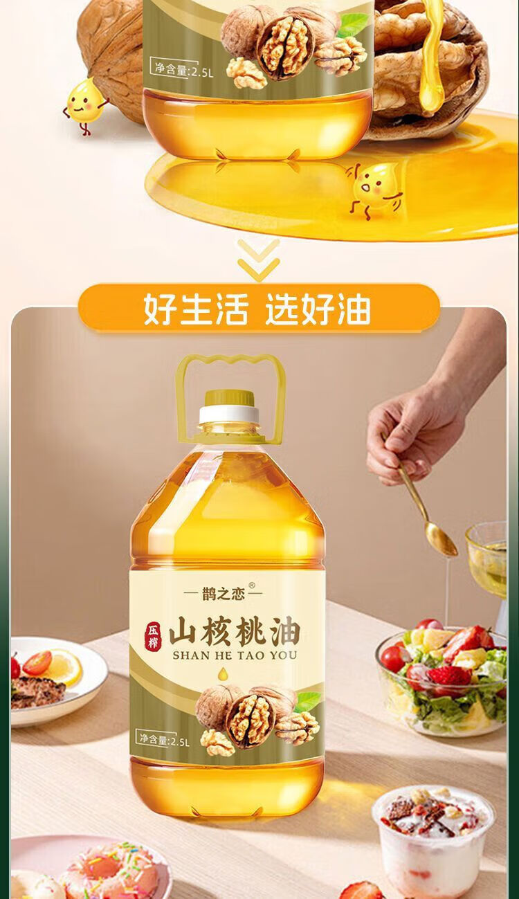 100%无添加纯天然一级压榨山核桃油冷榨热炒凉拌食用油 山核桃油 500ml
