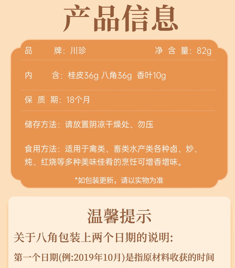 川珍八角桂皮香叶3袋组合装82g卤肉香料烧卤炖肉调味料包大料热门商品