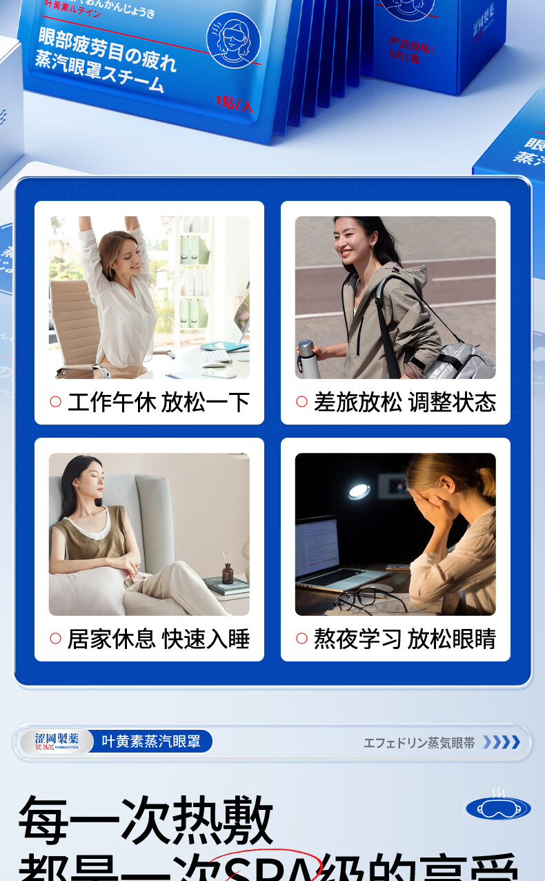 涩冈制薬叶黄素蒸汽眼罩热敷睡眠遮光护眼贴缓解眼睛疲劳眼干眼涩 3盒