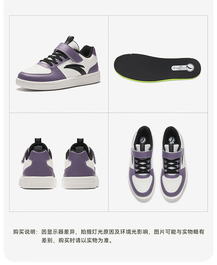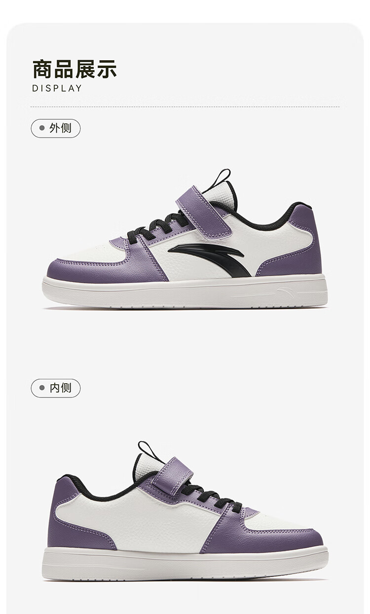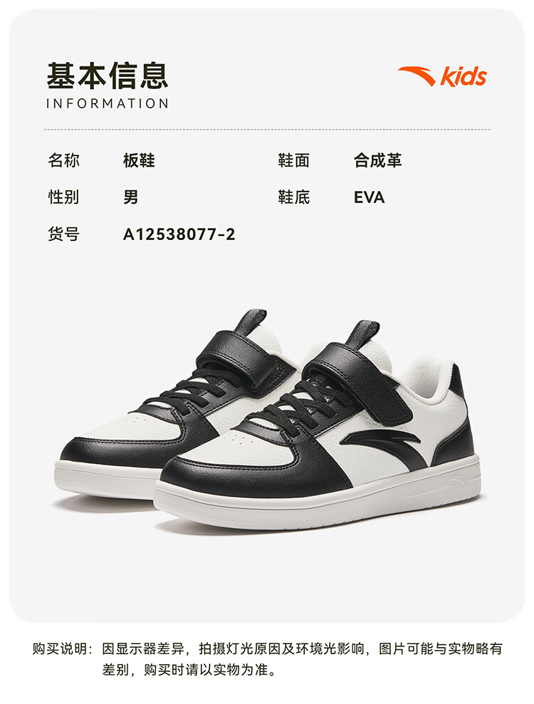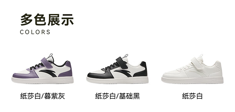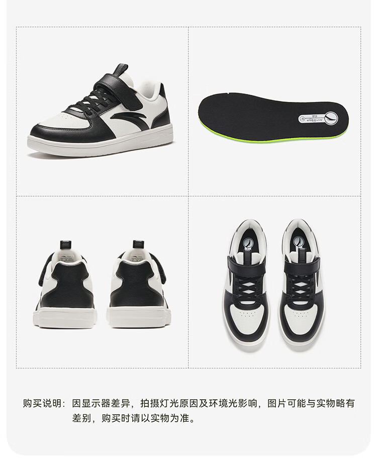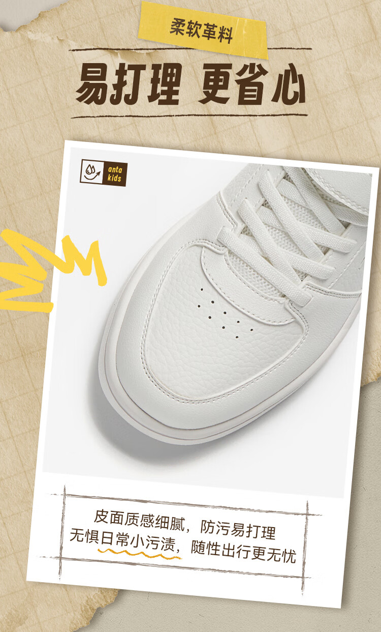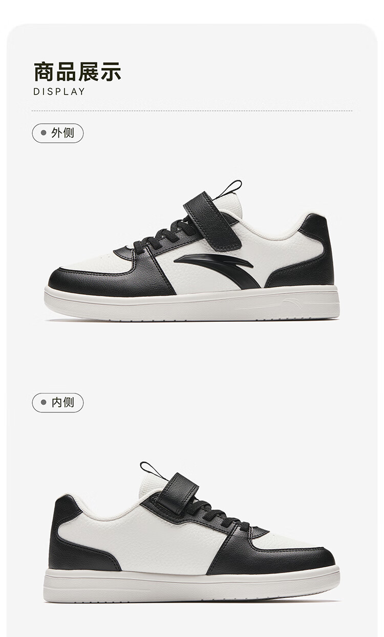 安踏儿童运动鞋男女大童鞋2026春季新款元气百搭魔术贴小白鞋校园板鞋 纸莎白-3 33 鞋内长20.5cm