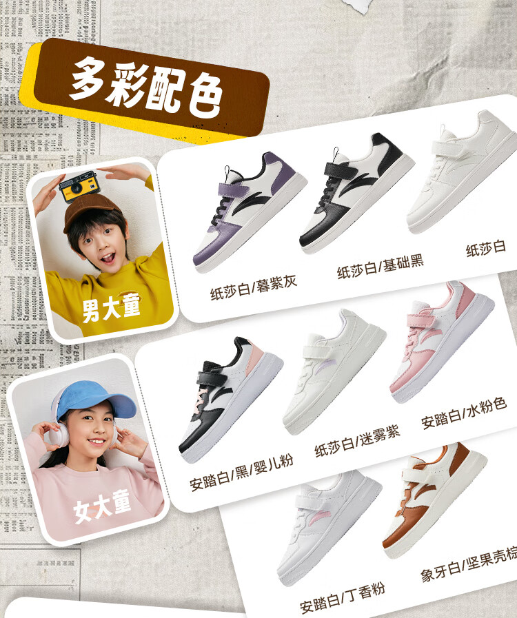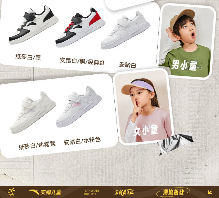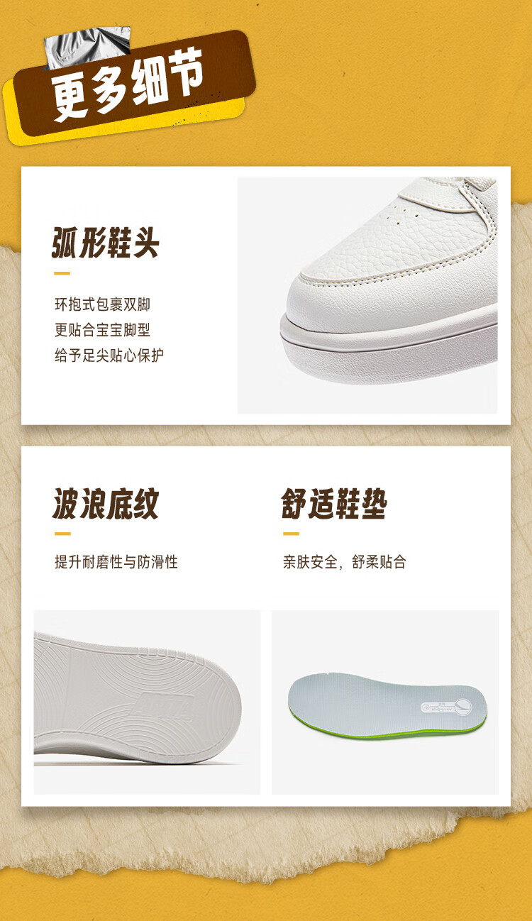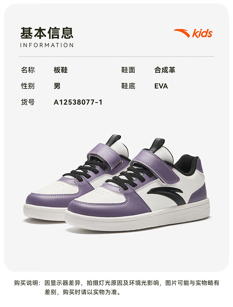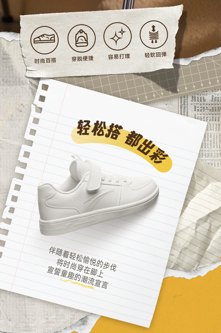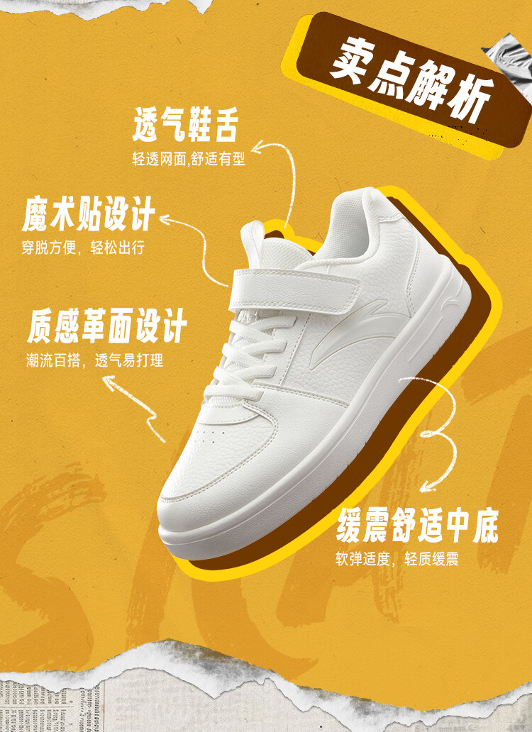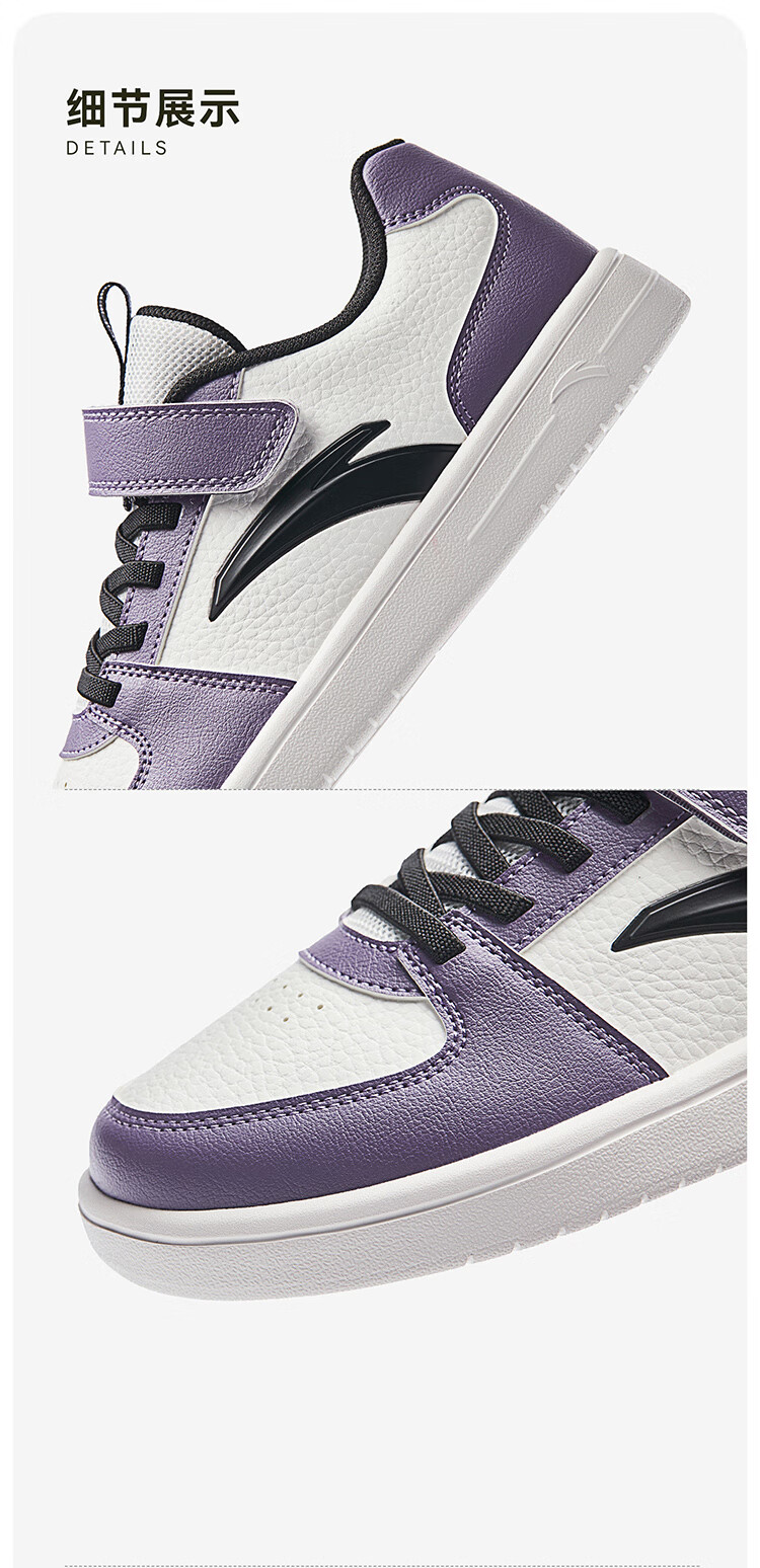 安踏儿童运动鞋男女大童鞋2026春季新款元气百搭魔术贴小白鞋校园板鞋 纸莎白-3 33 鞋内长20.5cm