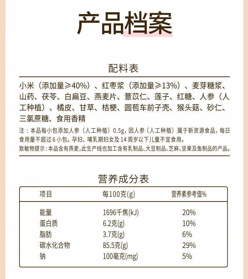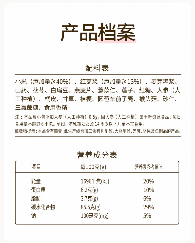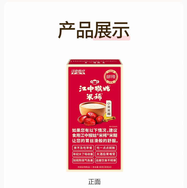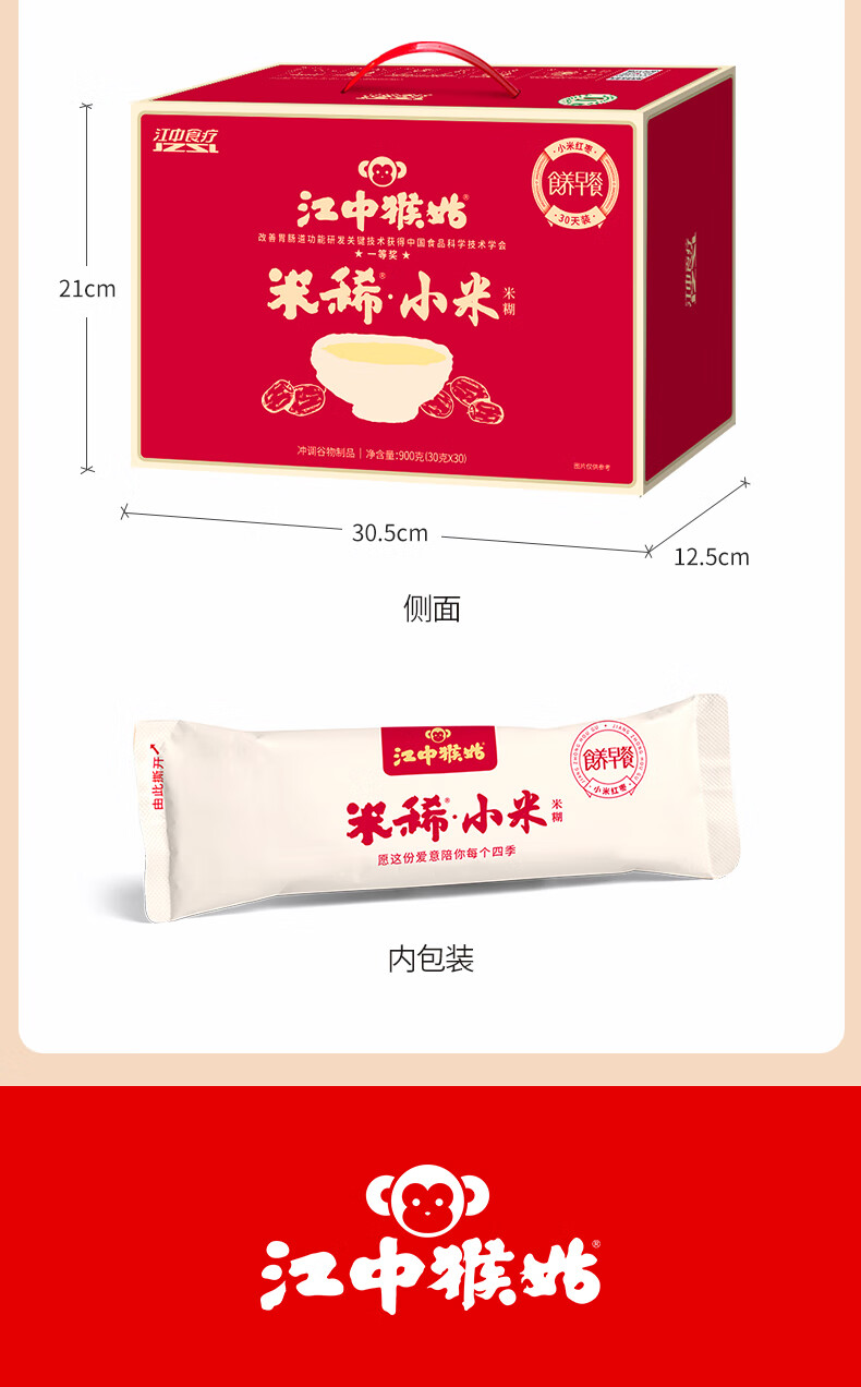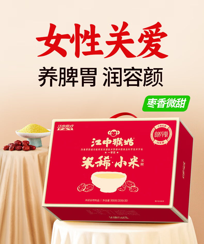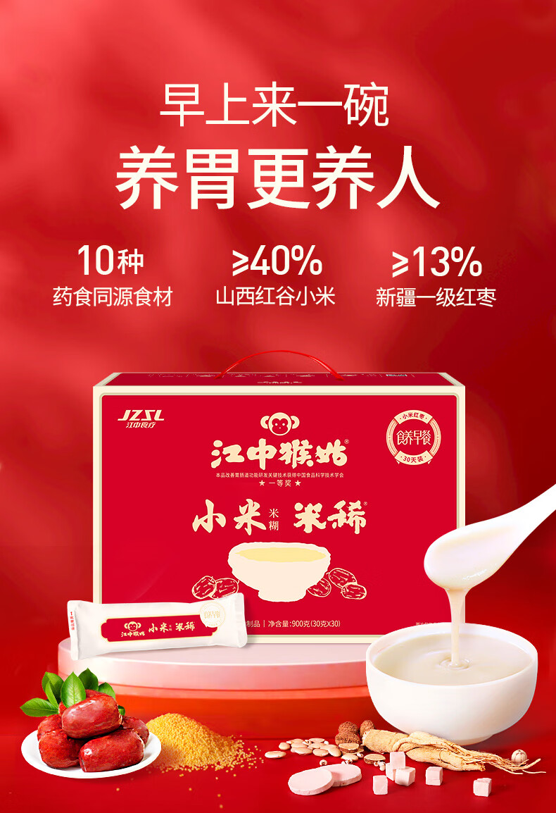 江中含小米红枣米稀米糊900g礼盒装30天装 猴头菇食养早餐代餐送礼品 小米米稀60g