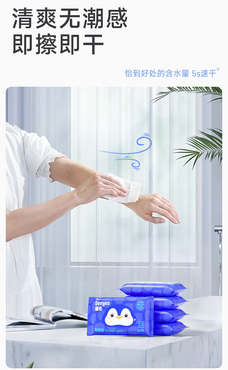 德佑湿厕纸便携小包10抽*10包 湿厕卫生纸湿纸巾厕纸 出行清爽不黏腻