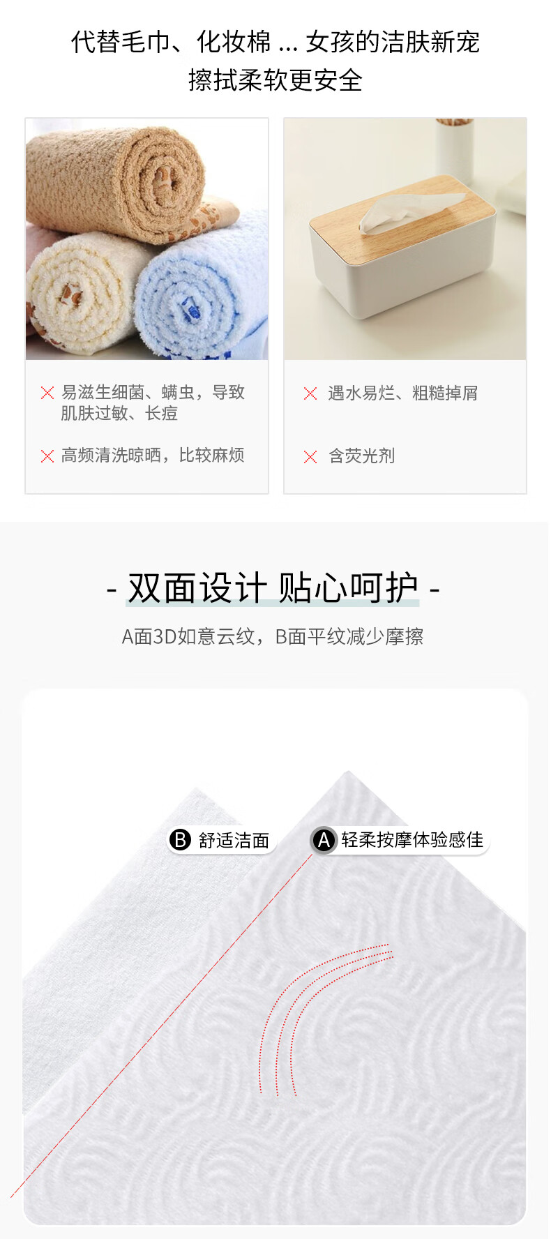 雨森宝宝洗脸巾一次性婴儿干湿两用洁面巾珍珠纹绵柔巾 80抽*4包【爆款热卖】