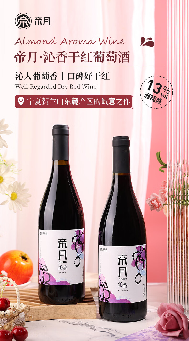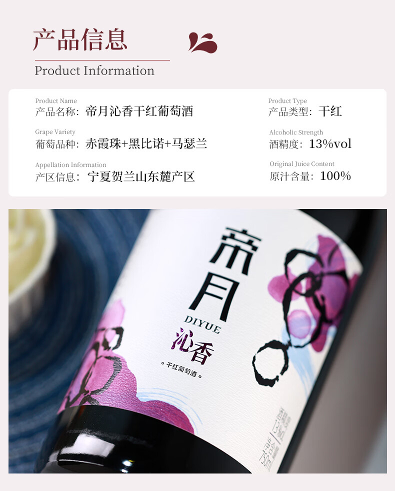 帝月沁香干红葡萄酒宁夏贺兰山黑比诺赤霞珠马瑟兰国产红酒整箱送礼 【6瓶装】沁香750ml*6 (整箱装)