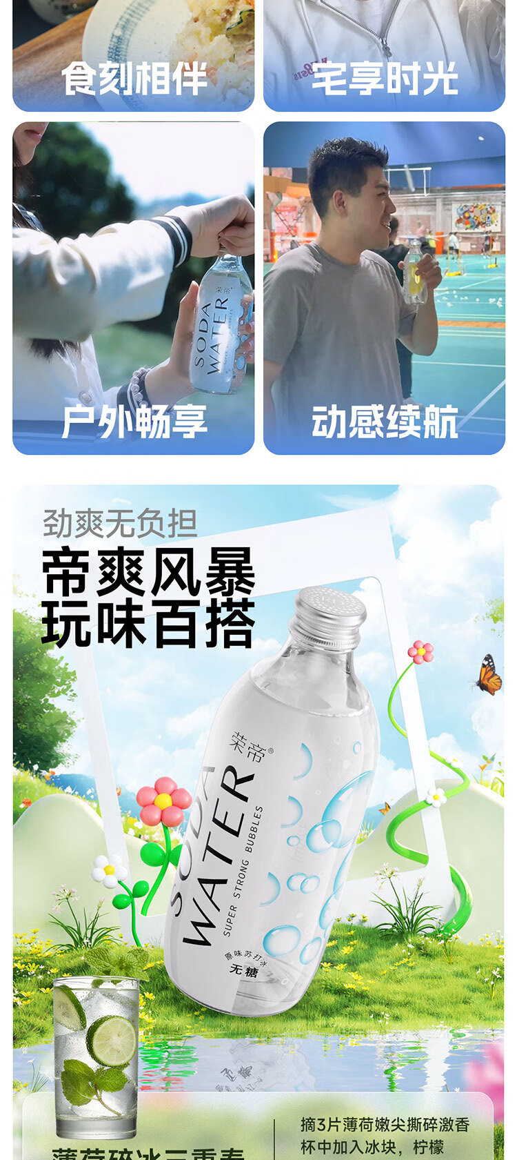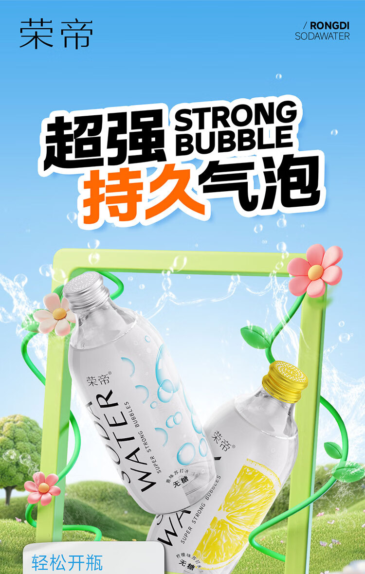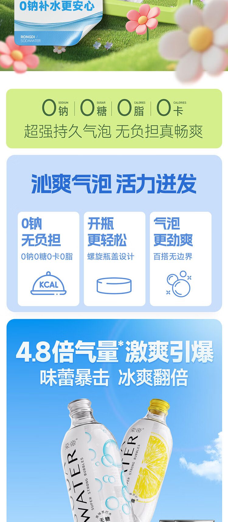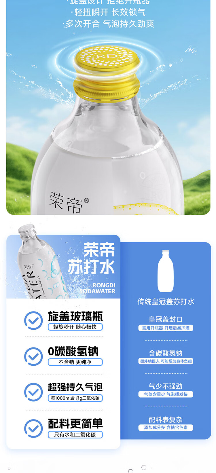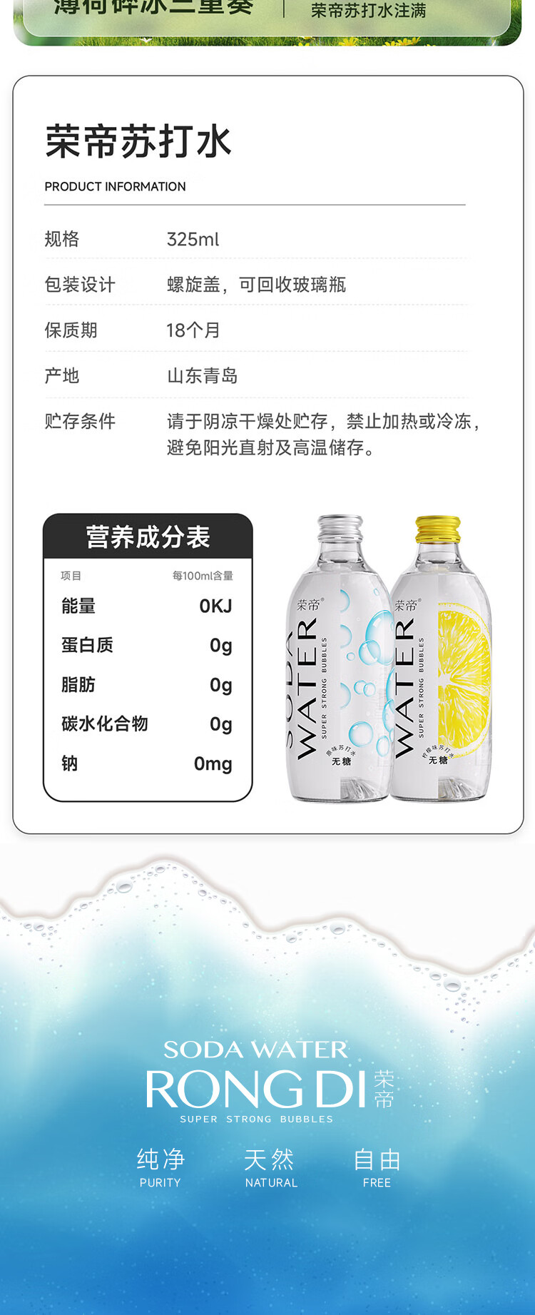 荣帝苏打水无糖气泡水商用汽水夏季解暑解腻饮料0糖0脂0卡送货上门 【原味】325ml*24瓶