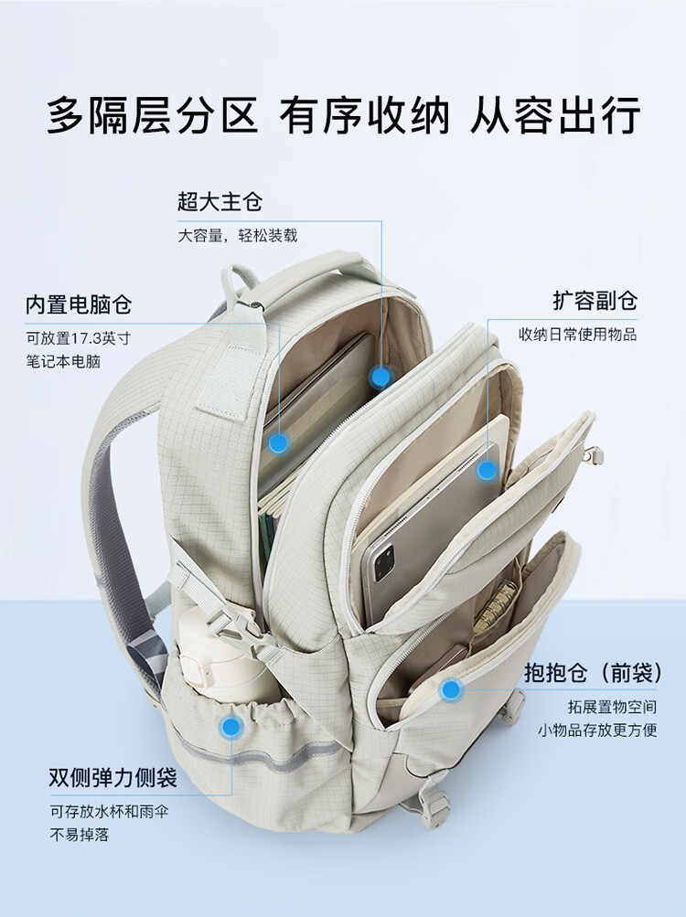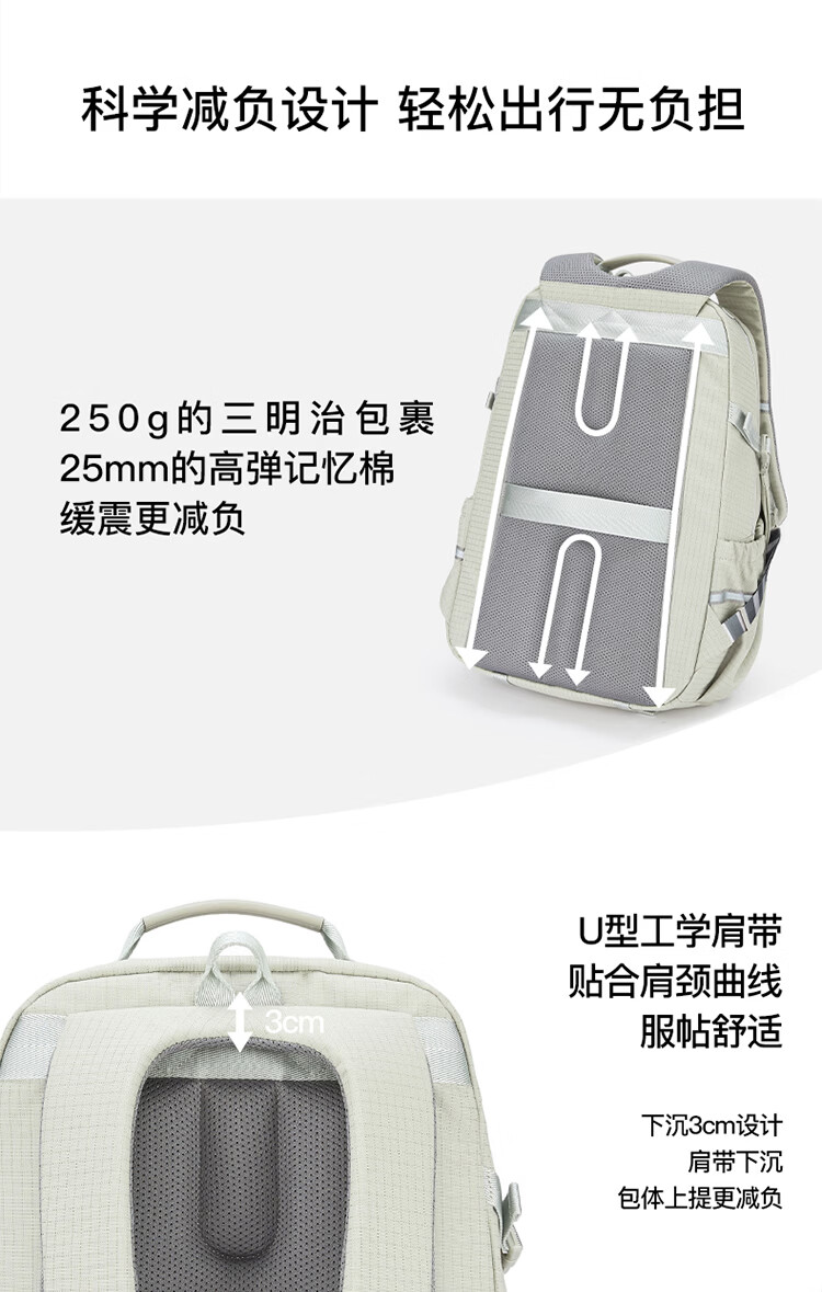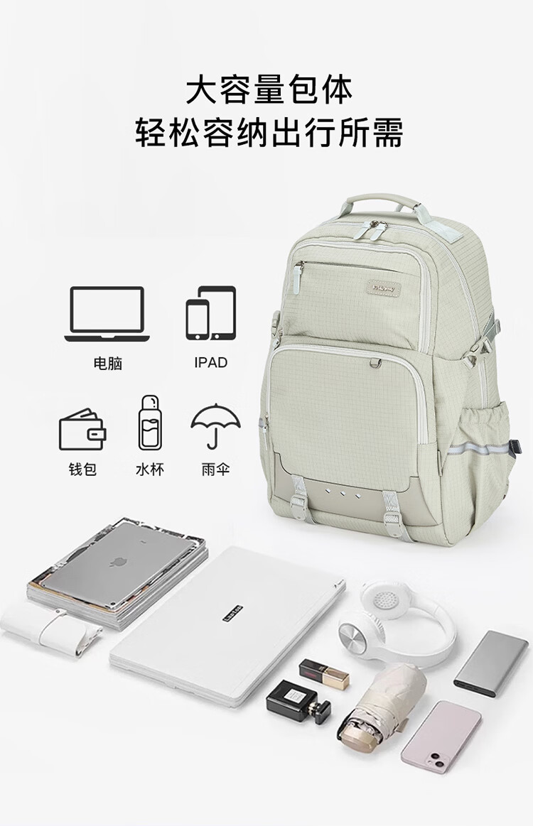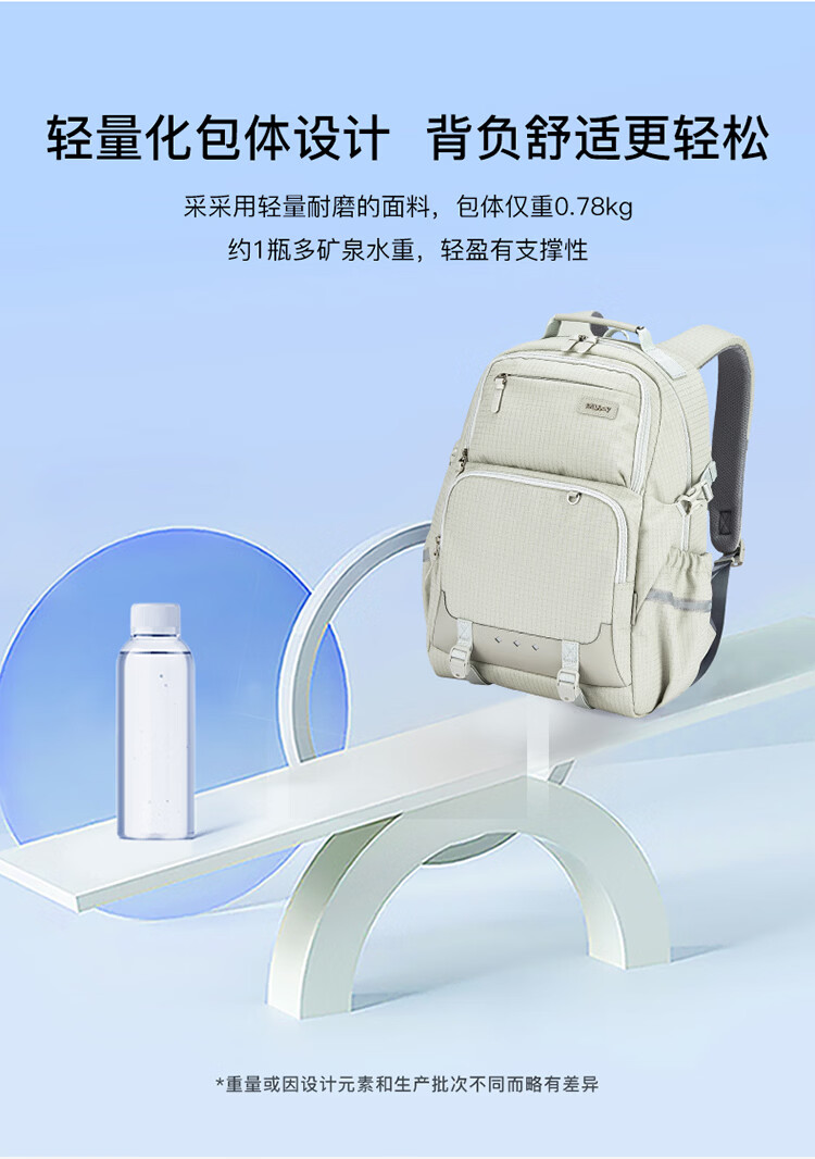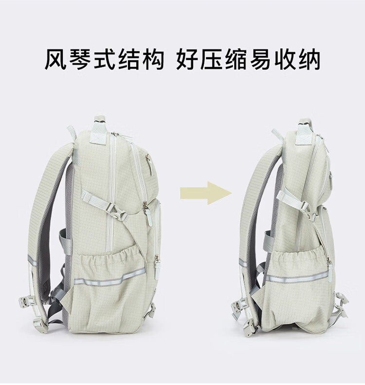 卡拉羊书包初高中生防下坠减负风琴书包中学生大容量高颜值背包CX5569 米白(大容量多隔层) 【L码】初高中生,身高155以上