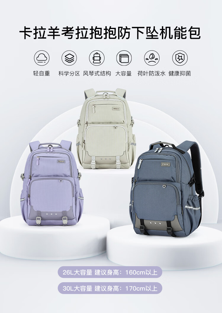 卡拉羊(KALA·Y)【蒋勤勤代言】书包小学生1-4年级游学减负儿童休闲出游双肩背包 小号-薰衣草紫爱丽丝【身高110-150cm】