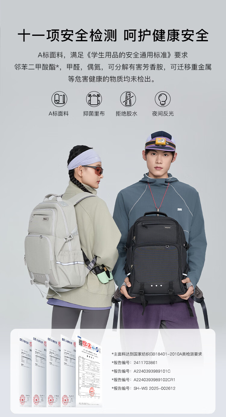 卡拉羊初高中生书包减负护脊背包中学生男女多隔层大容量双肩包 多隔层大容量【幻影灰】 【L码】初高中生,适合身高160cm以上