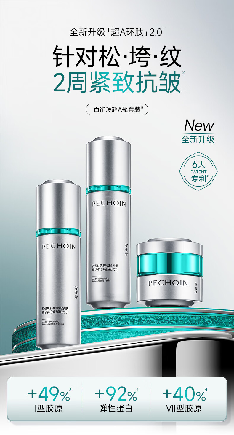 百雀羚(PECHOIN)超A2.0肌初赋能(水乳霜)护肤套装紧致抗皱生日礼物送女友