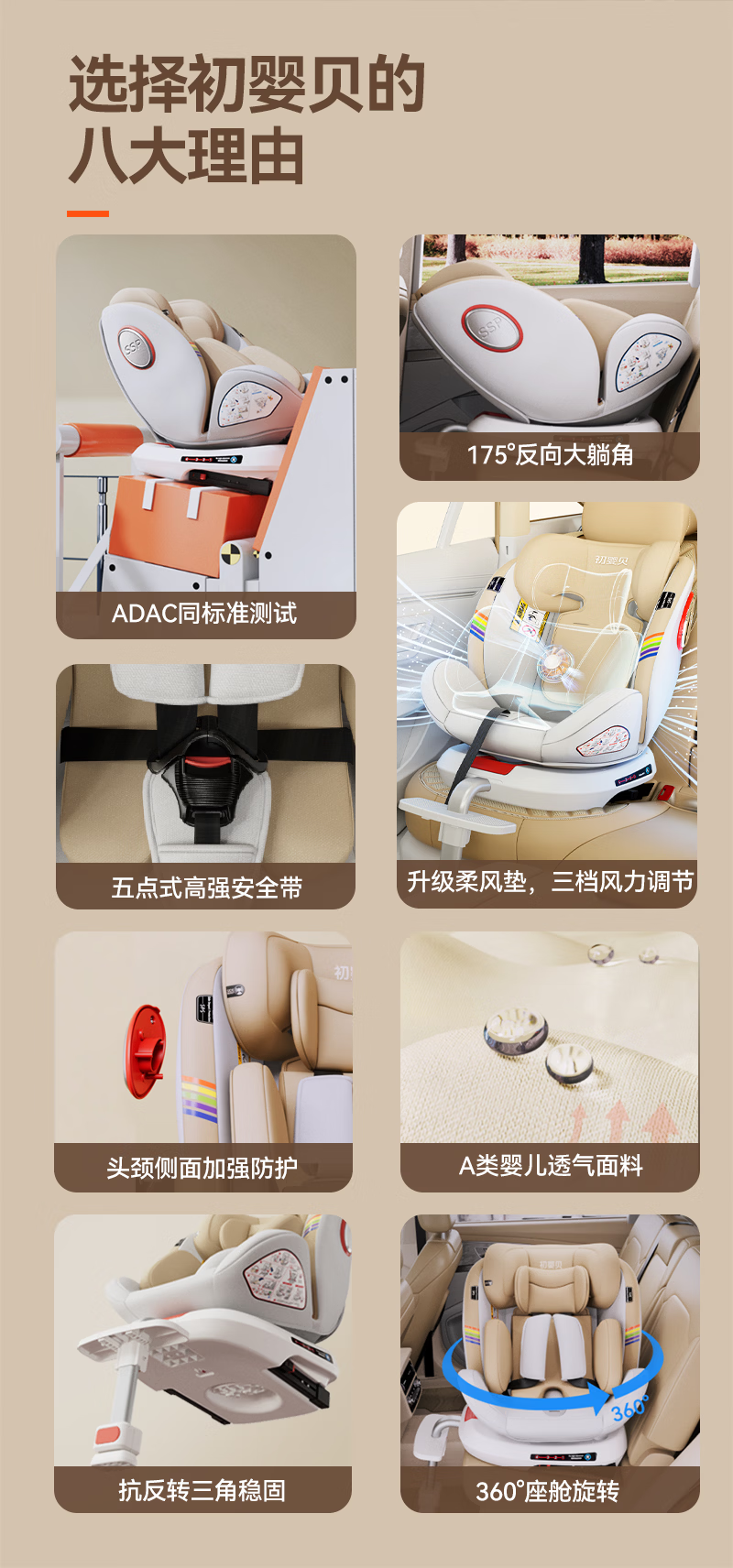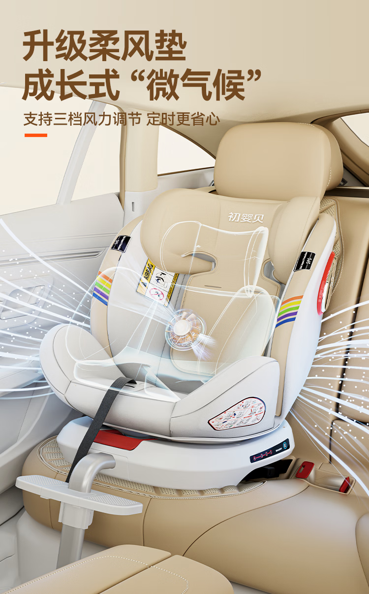 初婴贝儿童安全座椅汽车用0-4-12岁婴儿宝宝车载可坐可躺i-Size通风加热 悦享版金+通风加热+支撑腿+遮阳棚+175°躺
