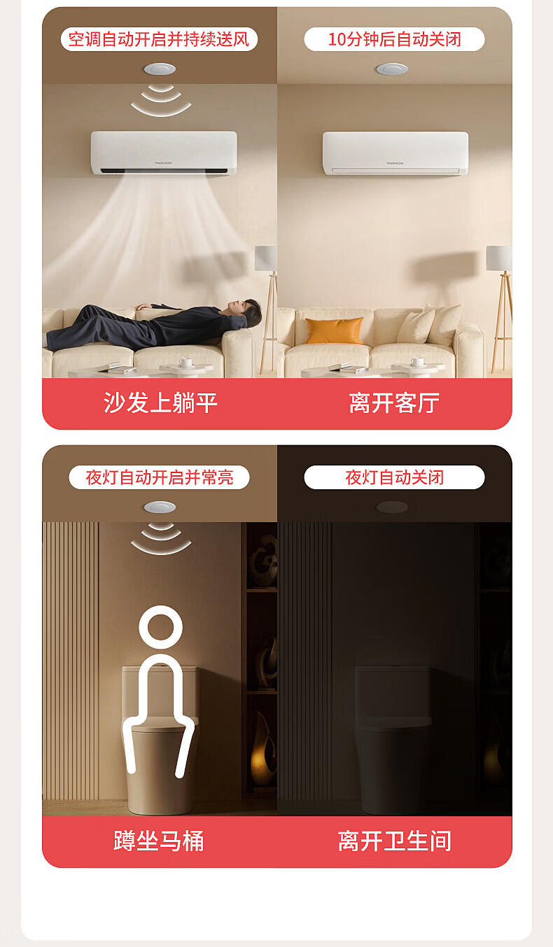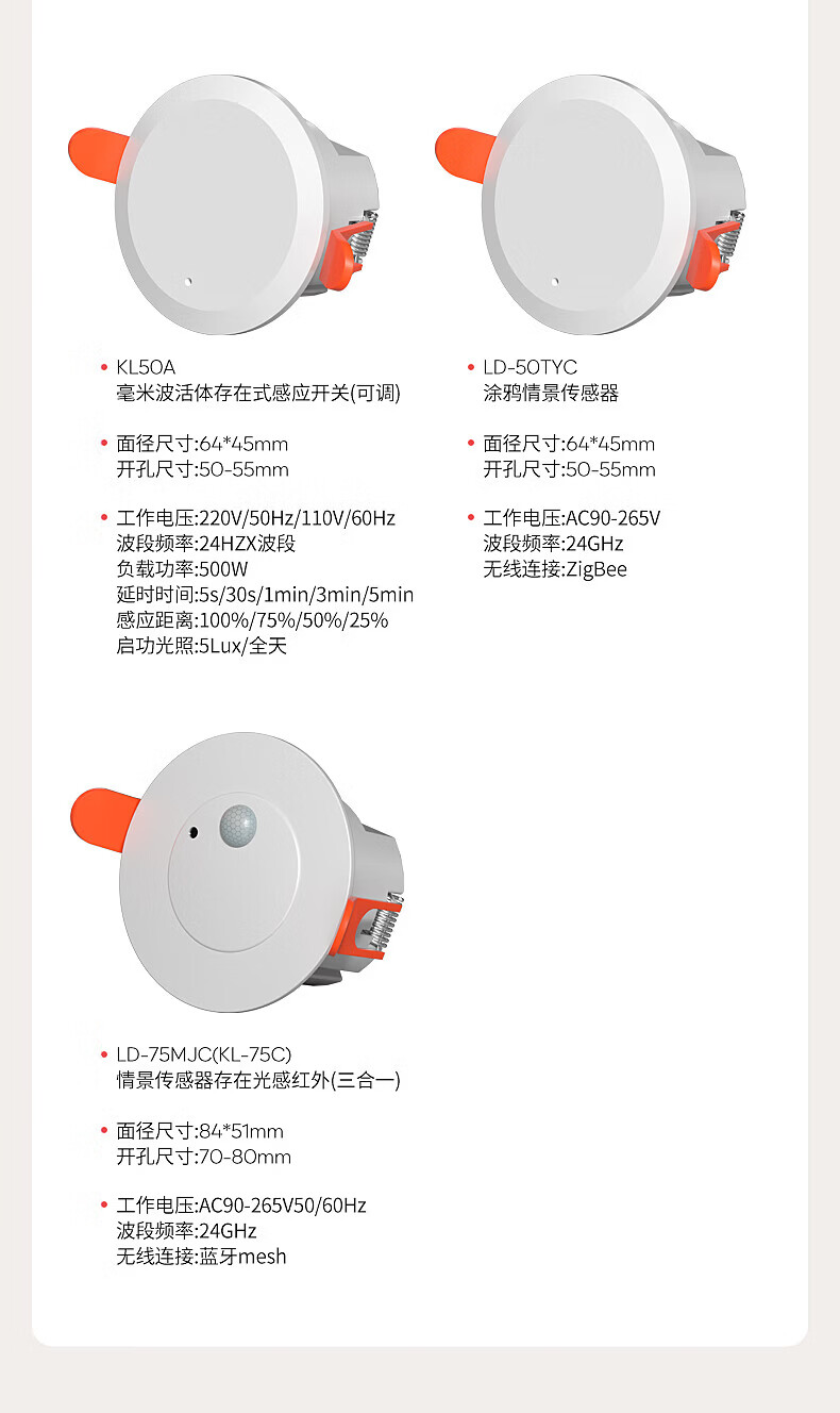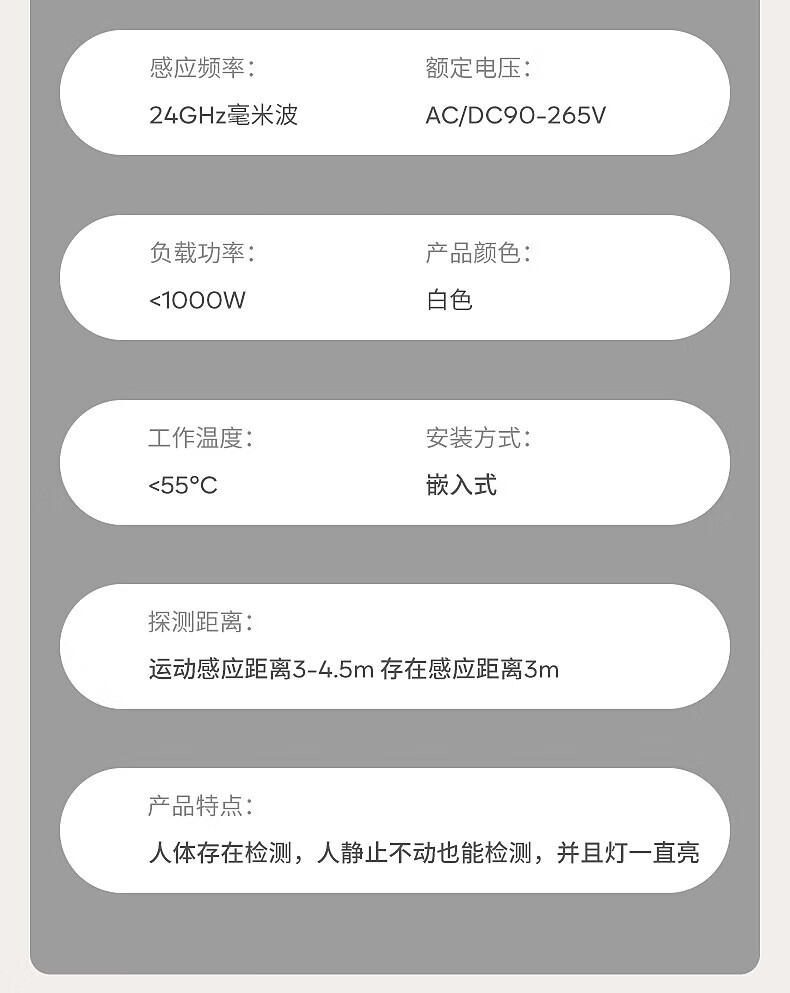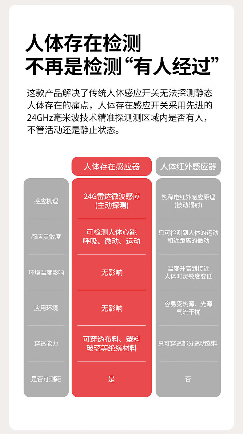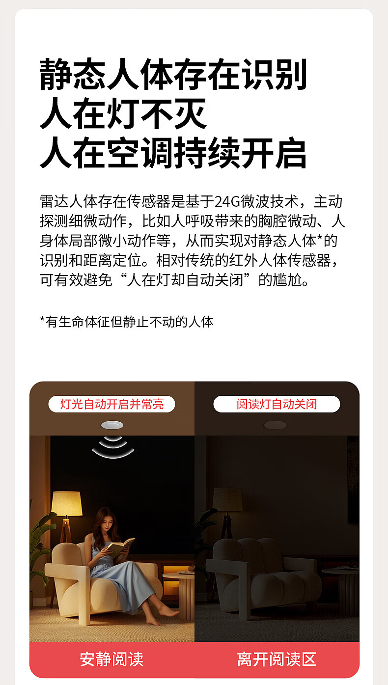 国际电工人体存在感应器办公家用24G毫米波吸顶嵌入传感器人在灯不灭开关 开孔【50-55mm】 16A人体存在感应器(带光敏)