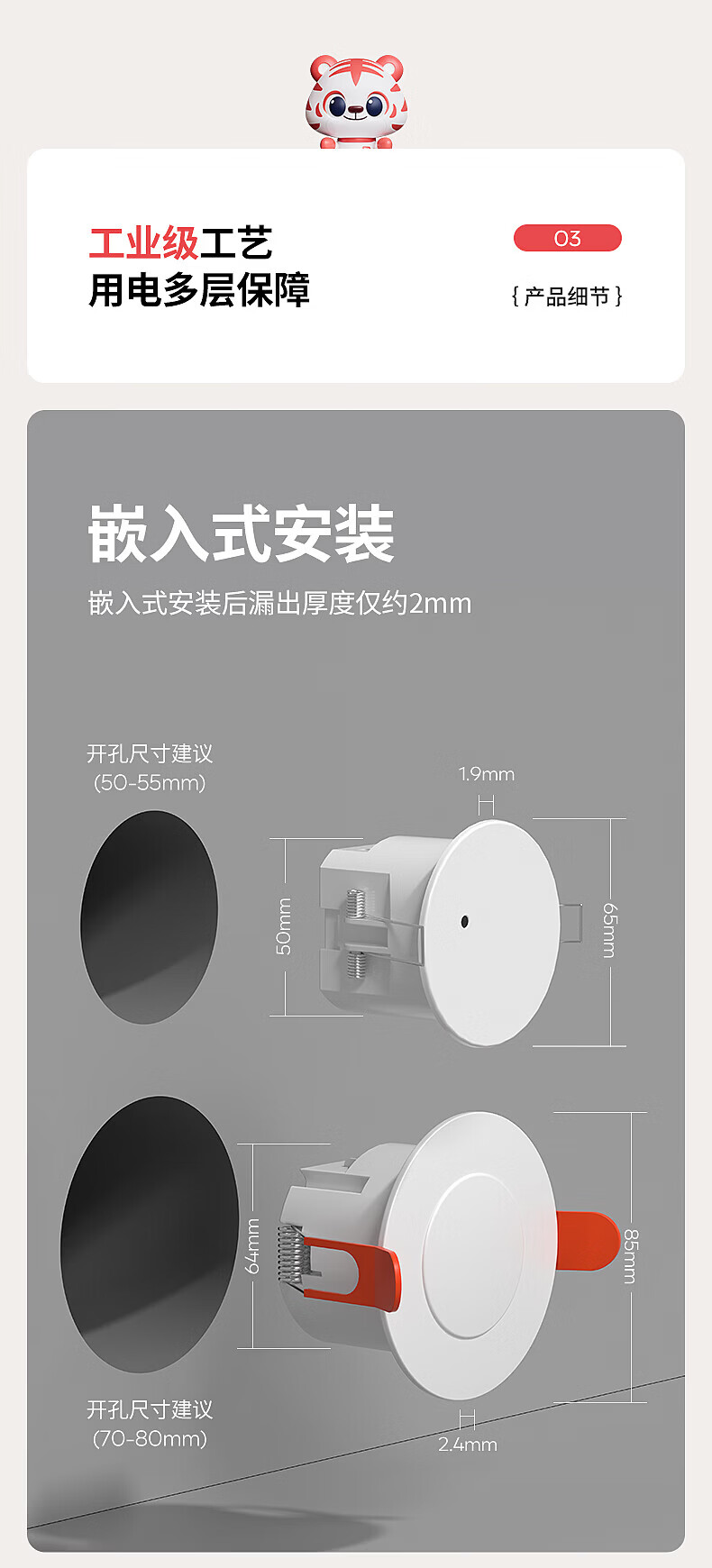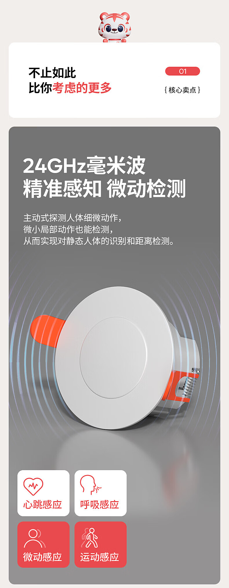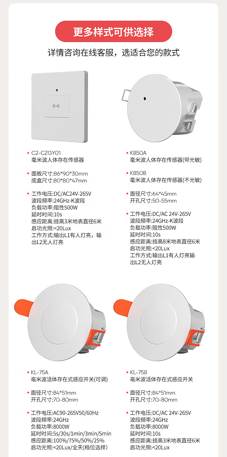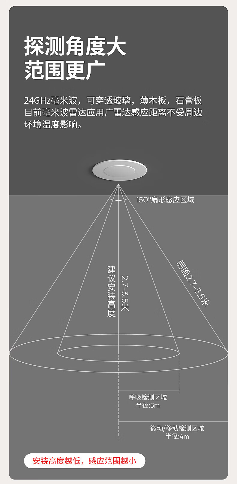国际电工人体存在感应器办公家用24G毫米波吸顶嵌入传感器人在灯不灭开关 开孔【50-55mm】 16A人体存在感应器(带光敏)
