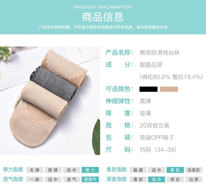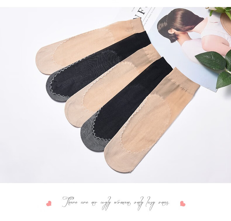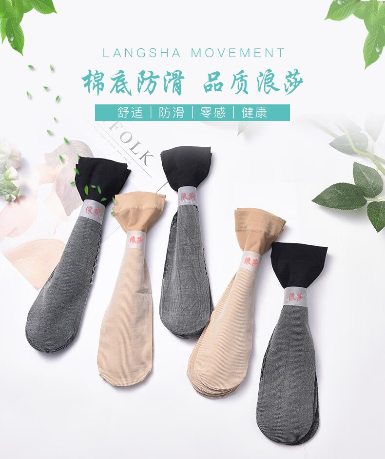 浪莎短丝袜子女防滑吸汗肉色脚底加棉短丝袜薄款透气夏季短丝袜 肤色10双 均码 10双装