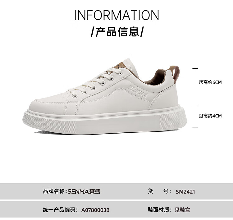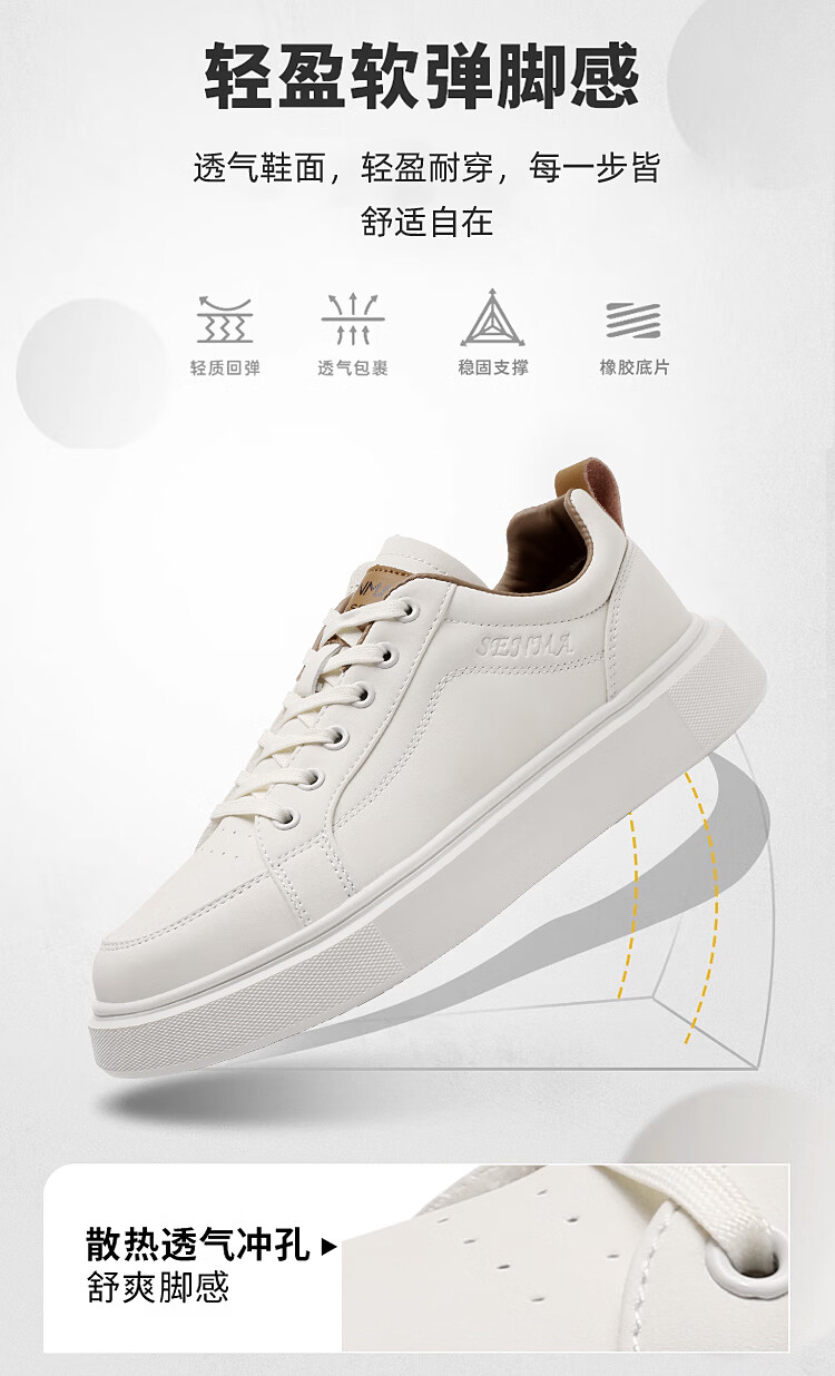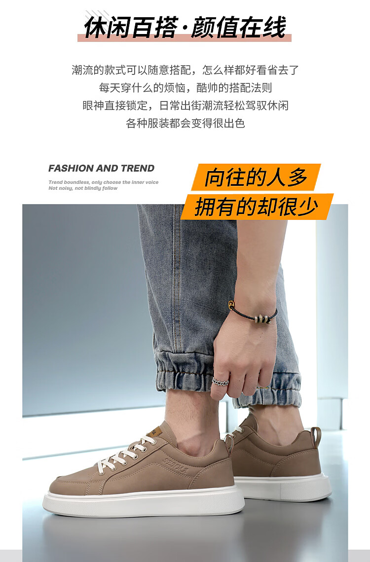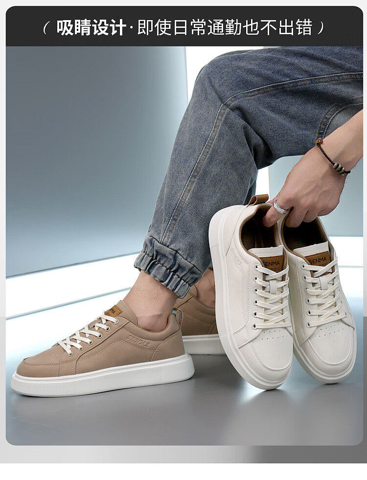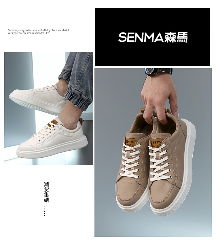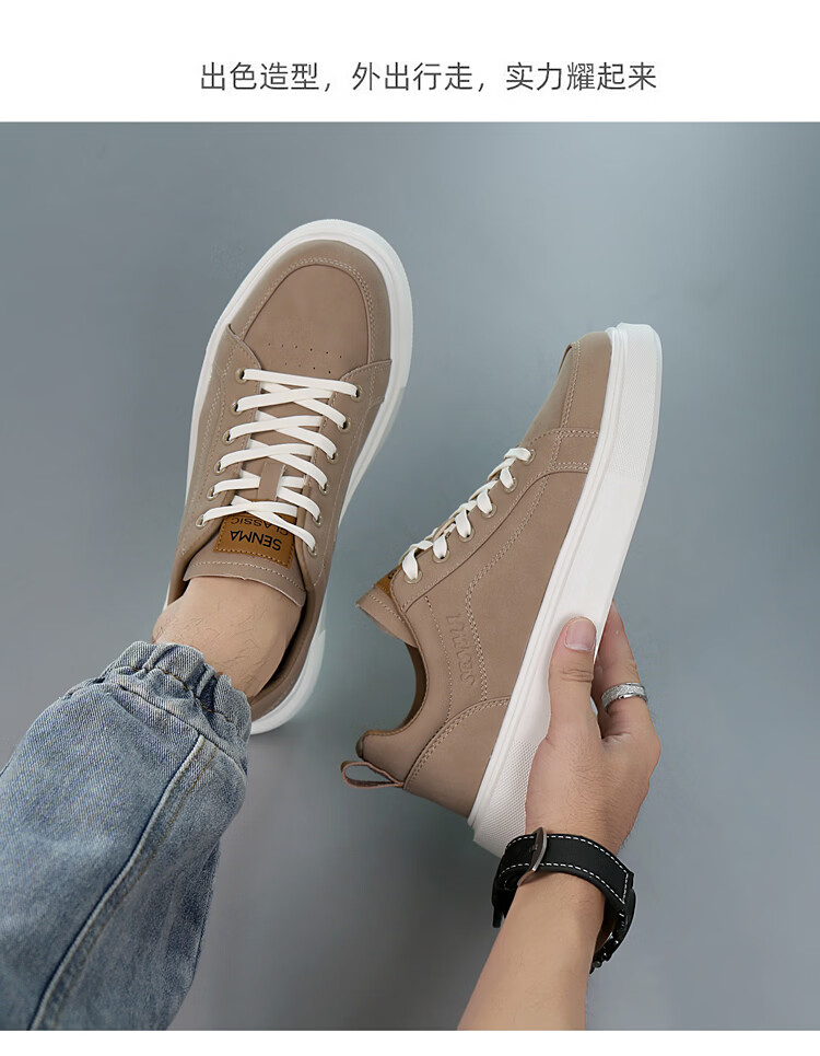 森馬(senma)男士厚底板鞋潮流百搭低帮运动休闲鞋韩版 卡其 39