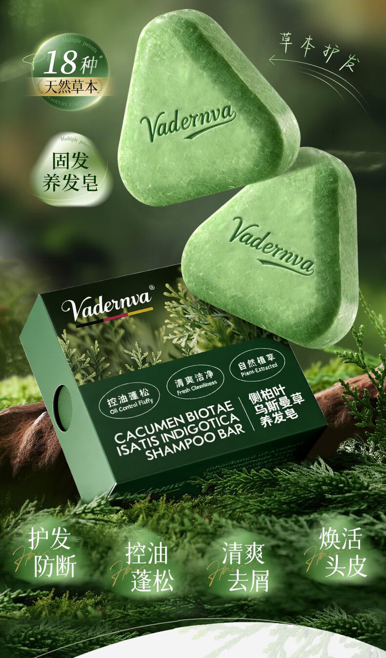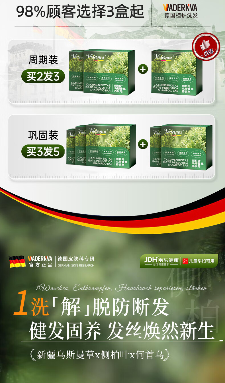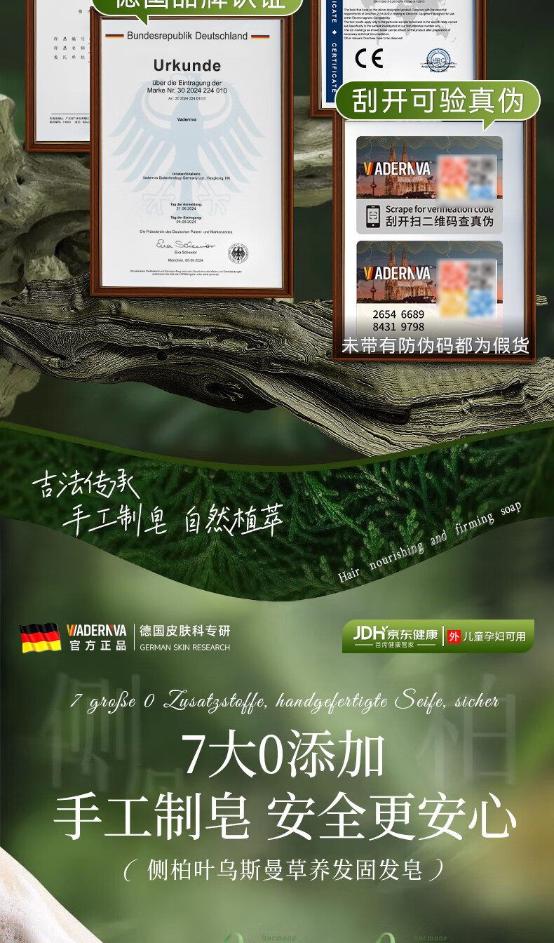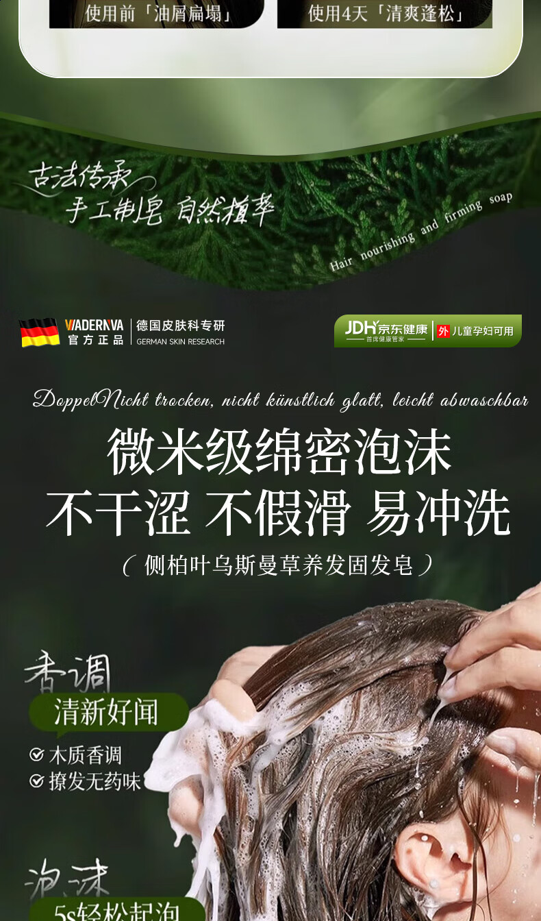 VADERNVA德国侧柏叶洗头发皂新疆乌斯曼草洗头皂何首乌五黑养固发防脱增密 一盒体验装【侧柏叶/乌斯曼洗发皂】