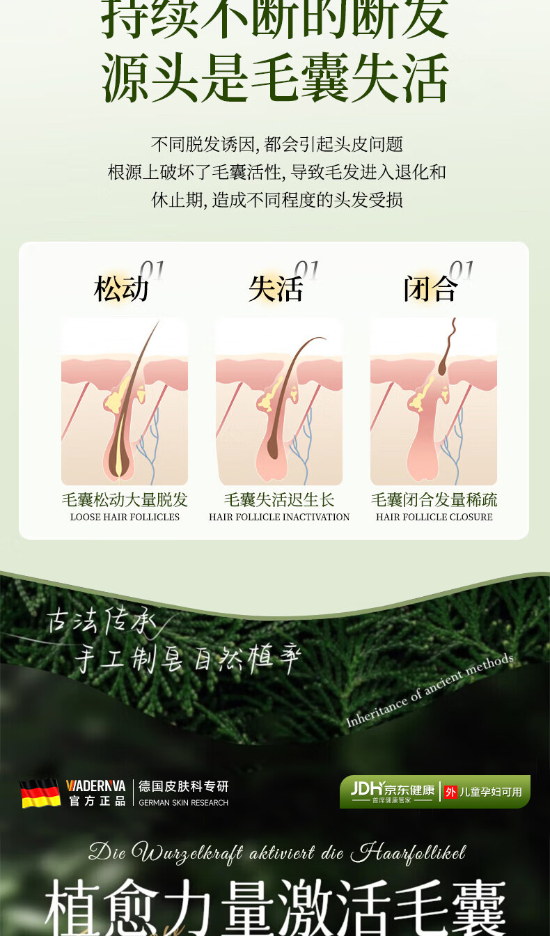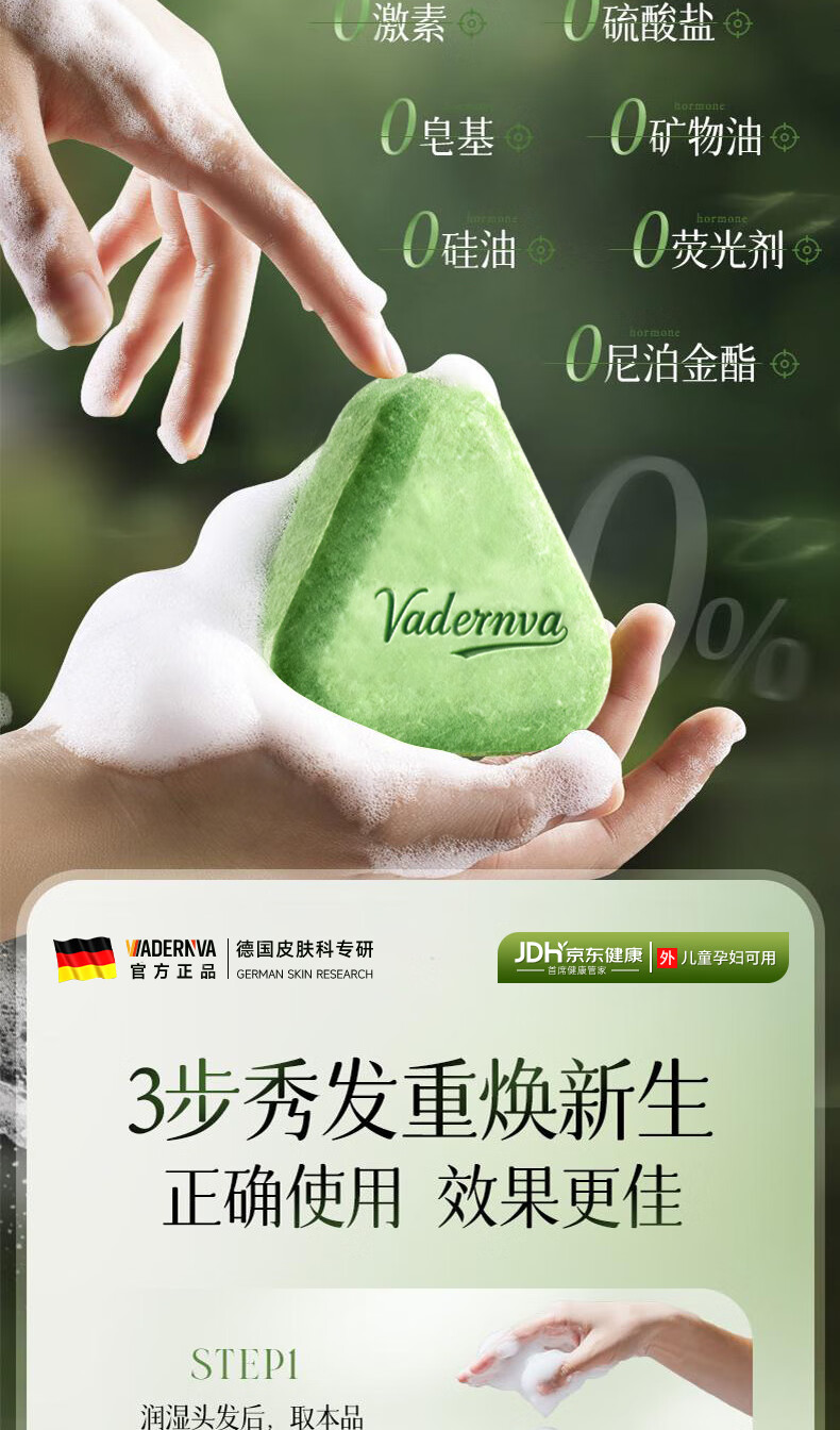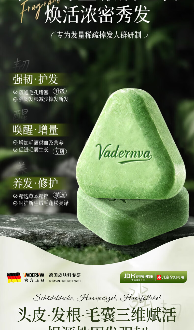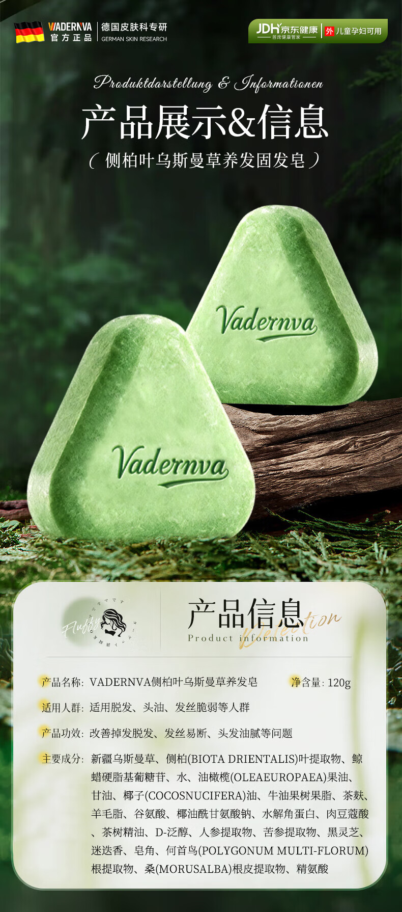 VADERNVA德国侧柏叶洗头发皂新疆乌斯曼草洗头皂何首乌五黑养固发防脱增密 一盒体验装【侧柏叶/乌斯曼洗发皂】