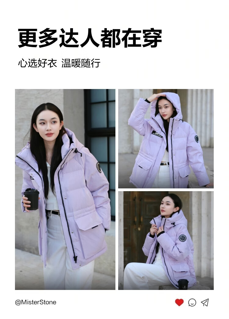 波司登(BOSIDENG)羽绒服女士加厚鹅绒连帽商场同款时尚百搭外套B250242302 【店长推荐】冰穹提花紫9ER2 M 165/88A 体重约110-120斤