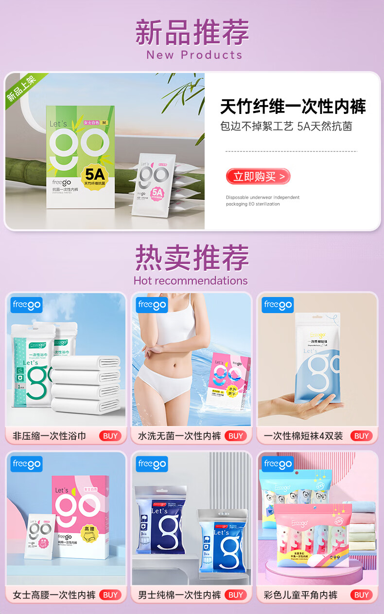 Freego纯棉一次性内裤女纯棉免洗独立装孕妇产妇生理期旅行女粉M5条装