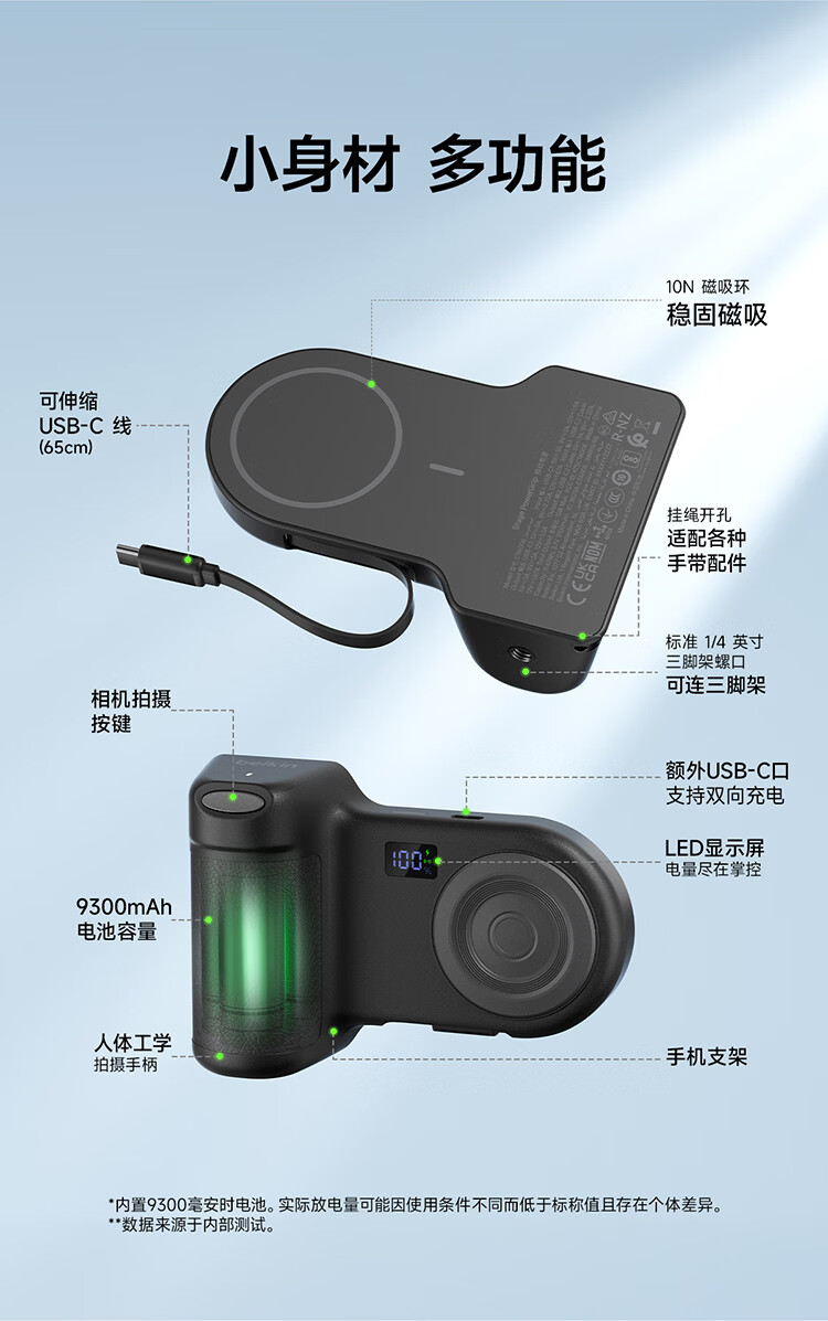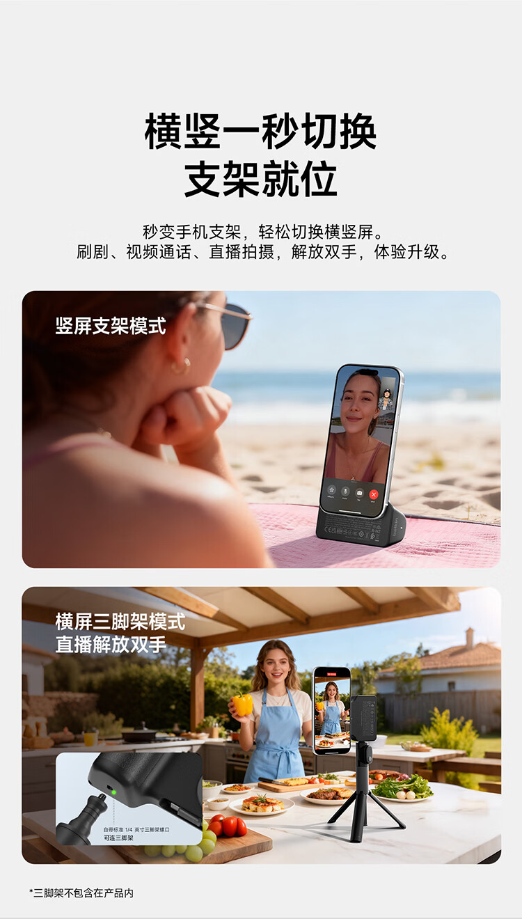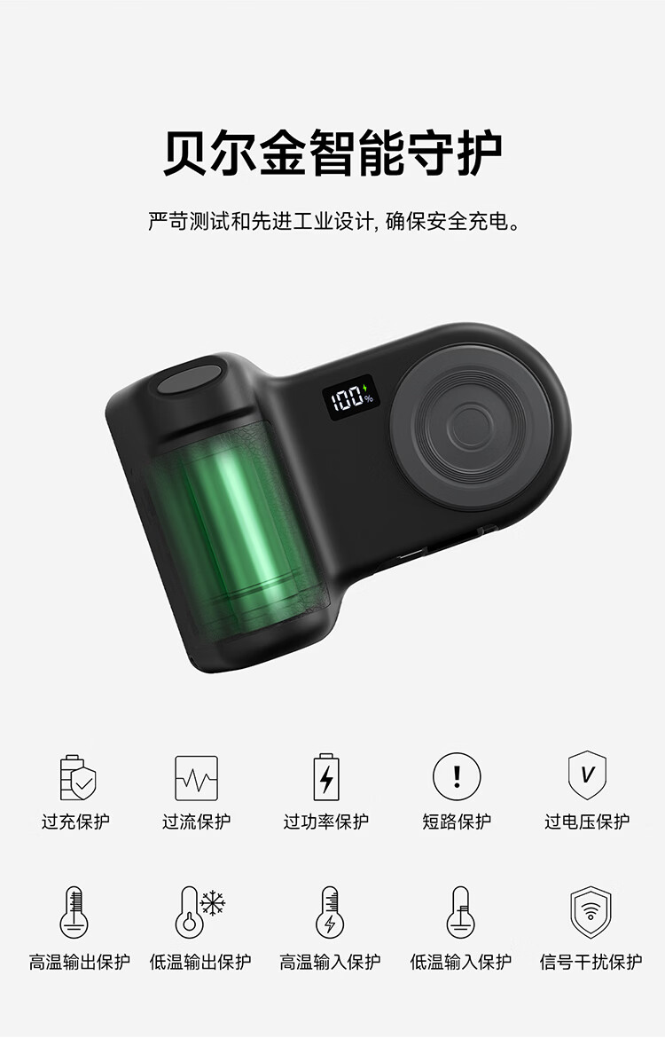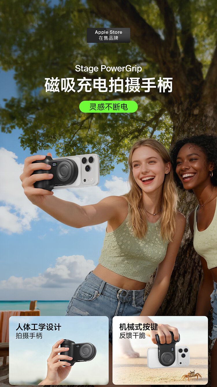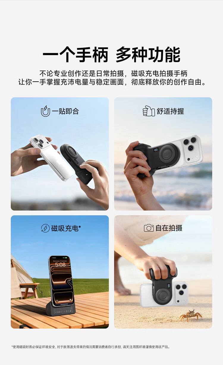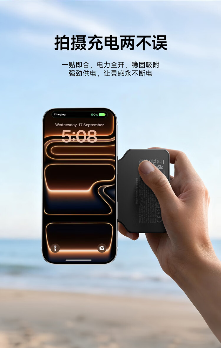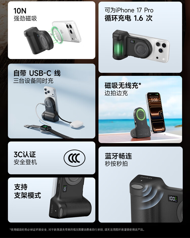 贝尔金(BELKIN)充电宝3C认证可上飞机 磁吸移动电源无线充 iPhone手机快充 小巧便携带拍摄手柄 沙色户外储能电源