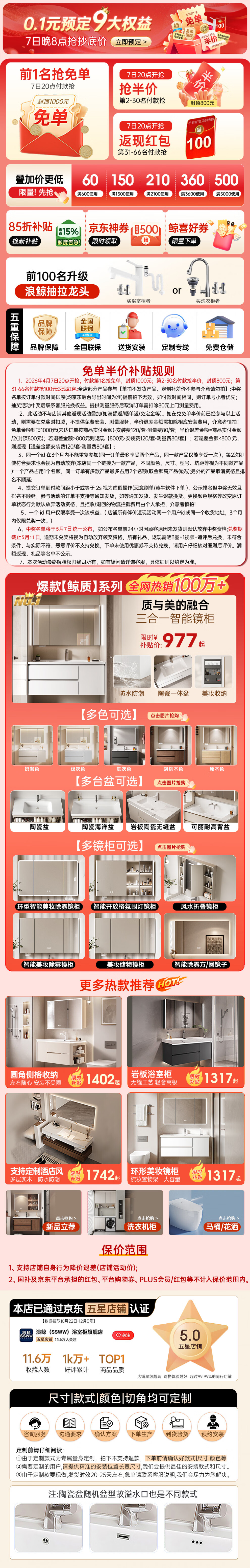浪鲸浴室柜定制链接台面/颜色/配置/切角均可定制 定制C